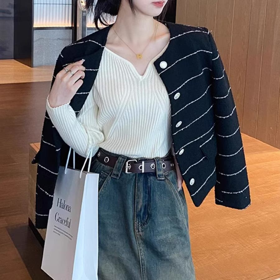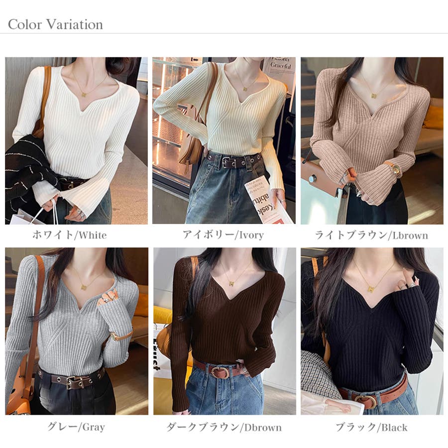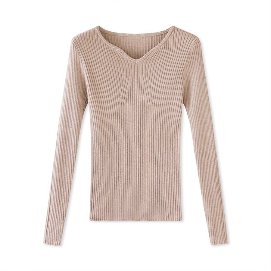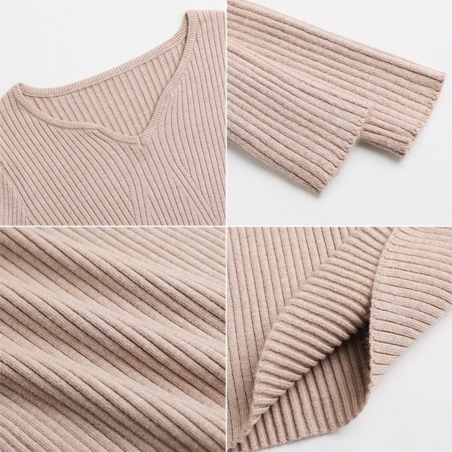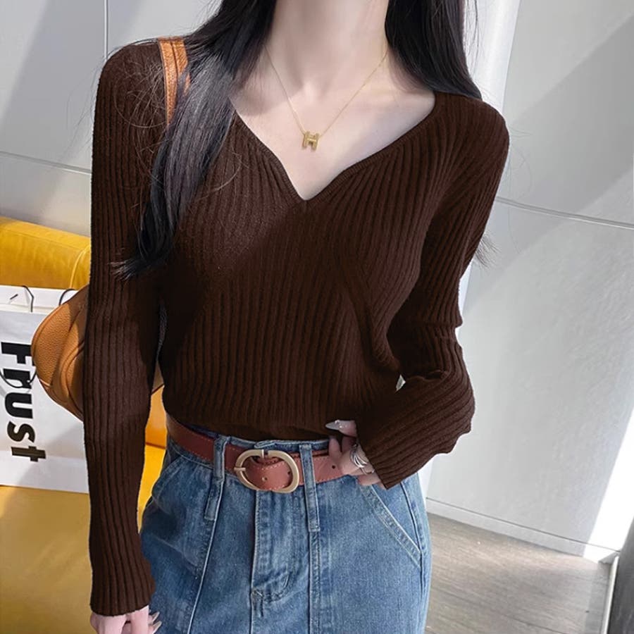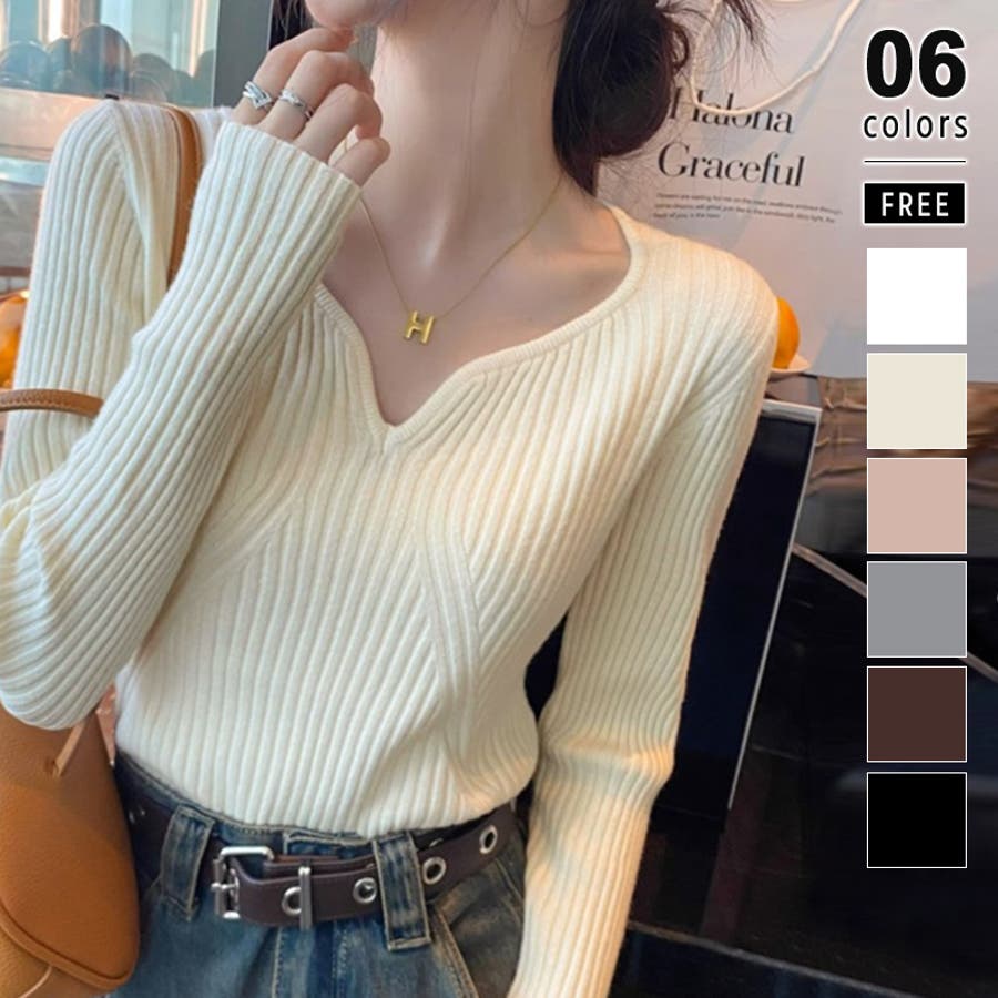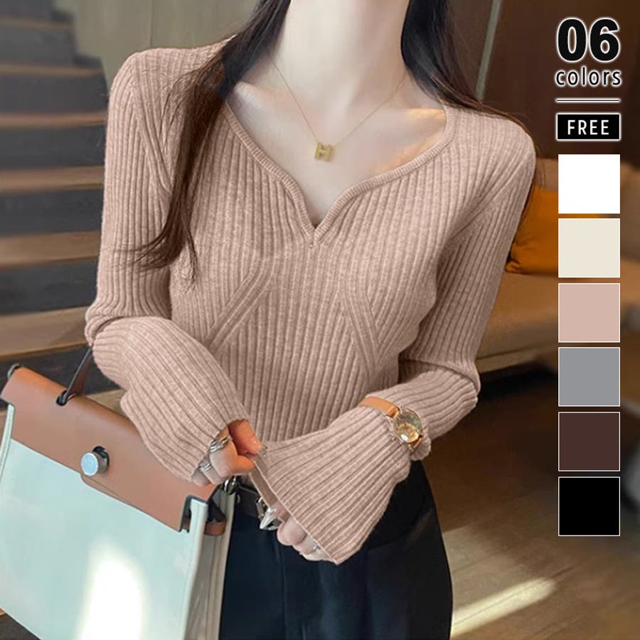 キーネックニット リブニット ニットトップス