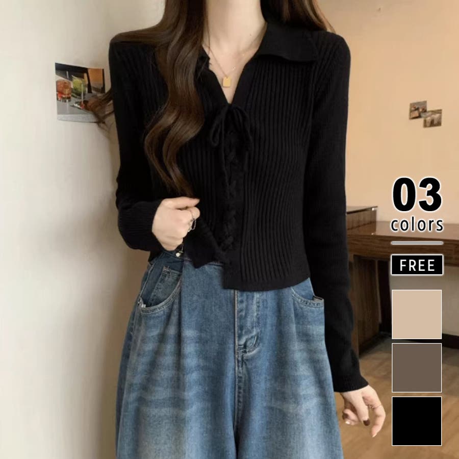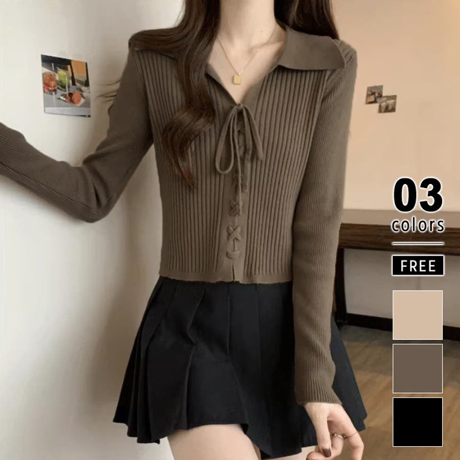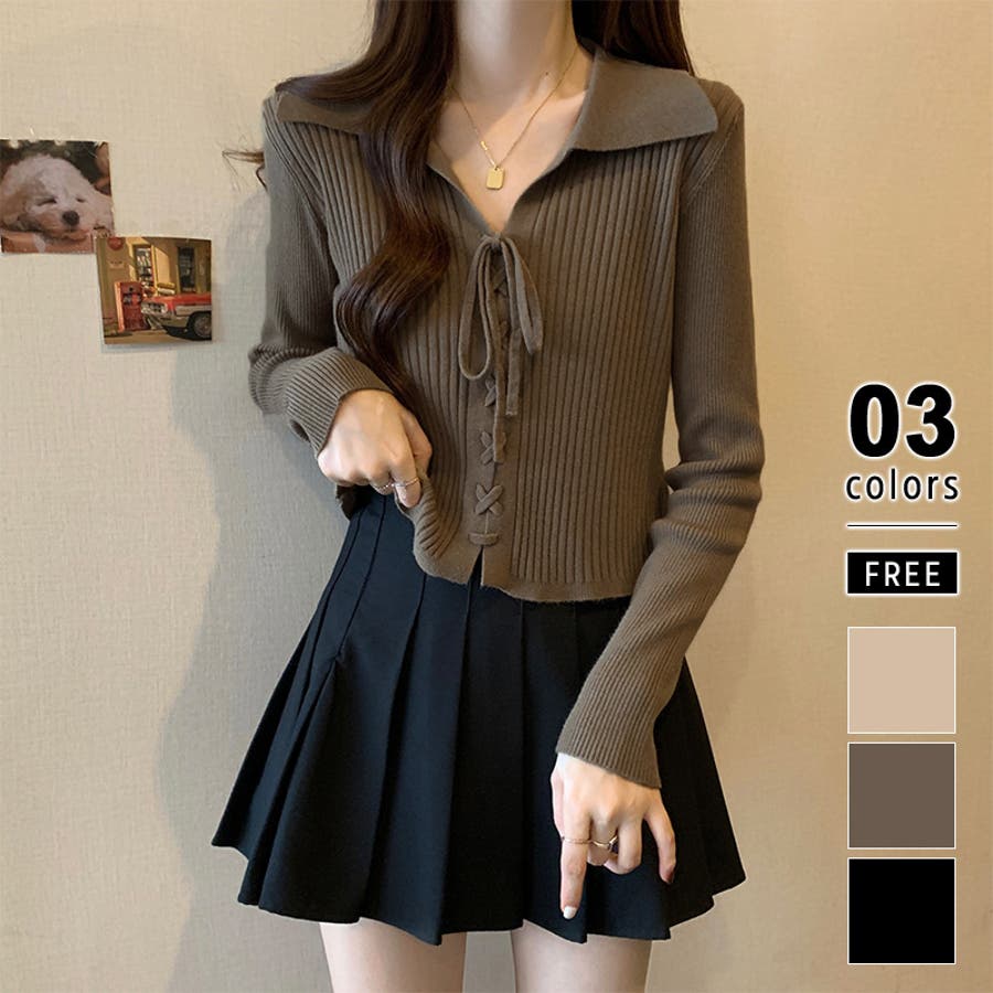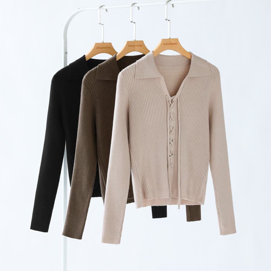 ニット レースアップ スキッパーネック リブニット トップス 長袖 レディース 襟付き リブ フィット 編み上げ リボン プルオーバー レースアップトップス リボンニット 襟付きニット ショート丈 クロップド丈 ショート クロップド シンプル 無地 スキッパー ポロ ニットセーター セーター おしゃれ v vネック Vネック ニットトップス 長袖ニット タイト 襟 付き tops 着回し 伸縮性 ストレッチ 細見え 華奢見え ニットレディース アクリル アクリル100% 柔らかい やわらかい やわらか ソフトな肌触り ソフトな肌触り チクチクしにくい チクチクしない 洗濯できる ヤク風 ヤク風ニット 1枚で決まる 洗える 洗濯機で洗える ノーアイロン あたたかい あったか 暖かい 暖か 韓国風 韓国コーデ バレエコア フェミニン ガーリー カジュアル 大人 オトナ かわいい 可愛い 大人可愛い きれい め きれいめ キレイめ オシャレ 女性 母 ママ ママコーデ プチプラ 高見え トレンド デザイン コーデ ヒット 商品 おすすめ 服 衣料 ファッション フリーサイズ フリー サイズ ライトブラウン 茶色 ダークブラウン ブラック 黒 カラー 秋色 秋物レディース 秋物 冬物 新作 春秋 秋冬 春 秋 冬 春服 秋服 冬服 韓国 韓国ファッション 10代 20代 30代 40代 50代 cocomomo ココモモ
