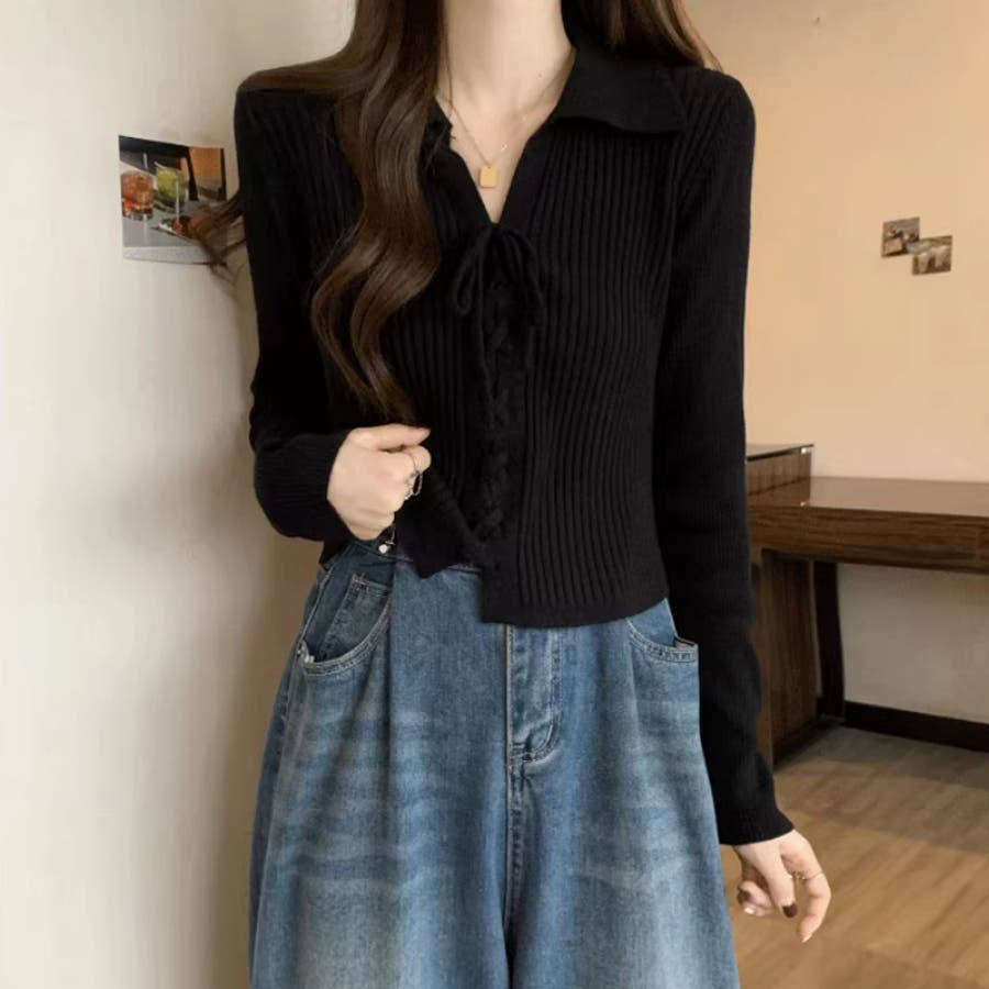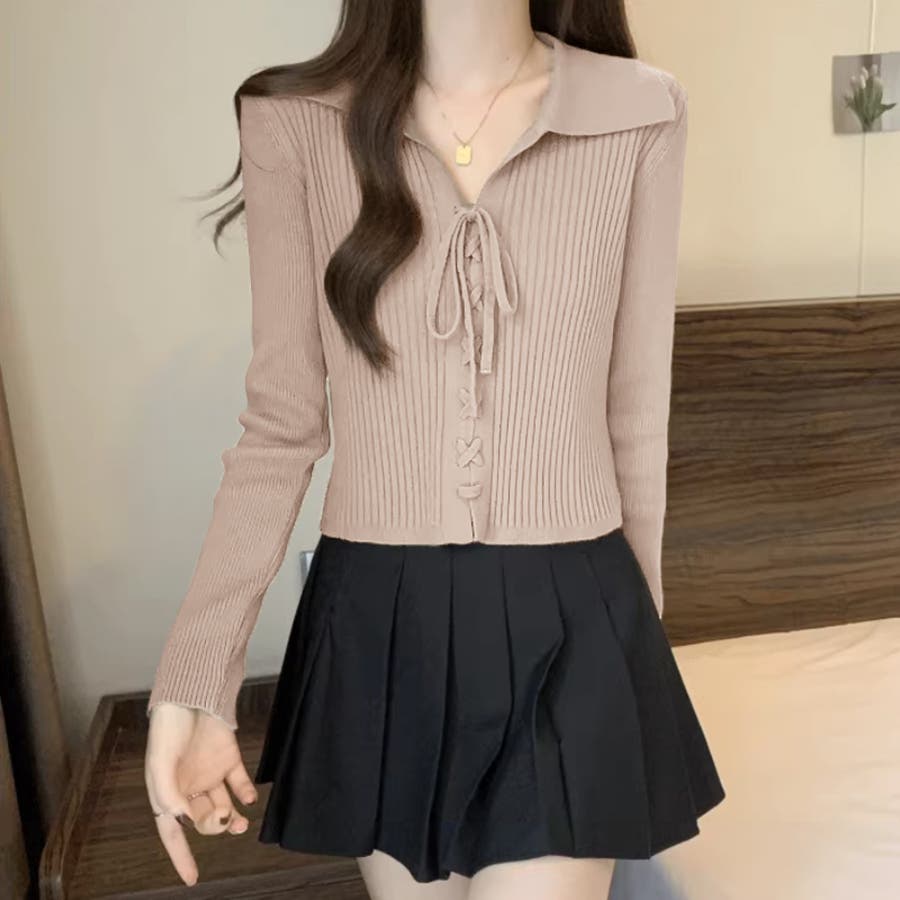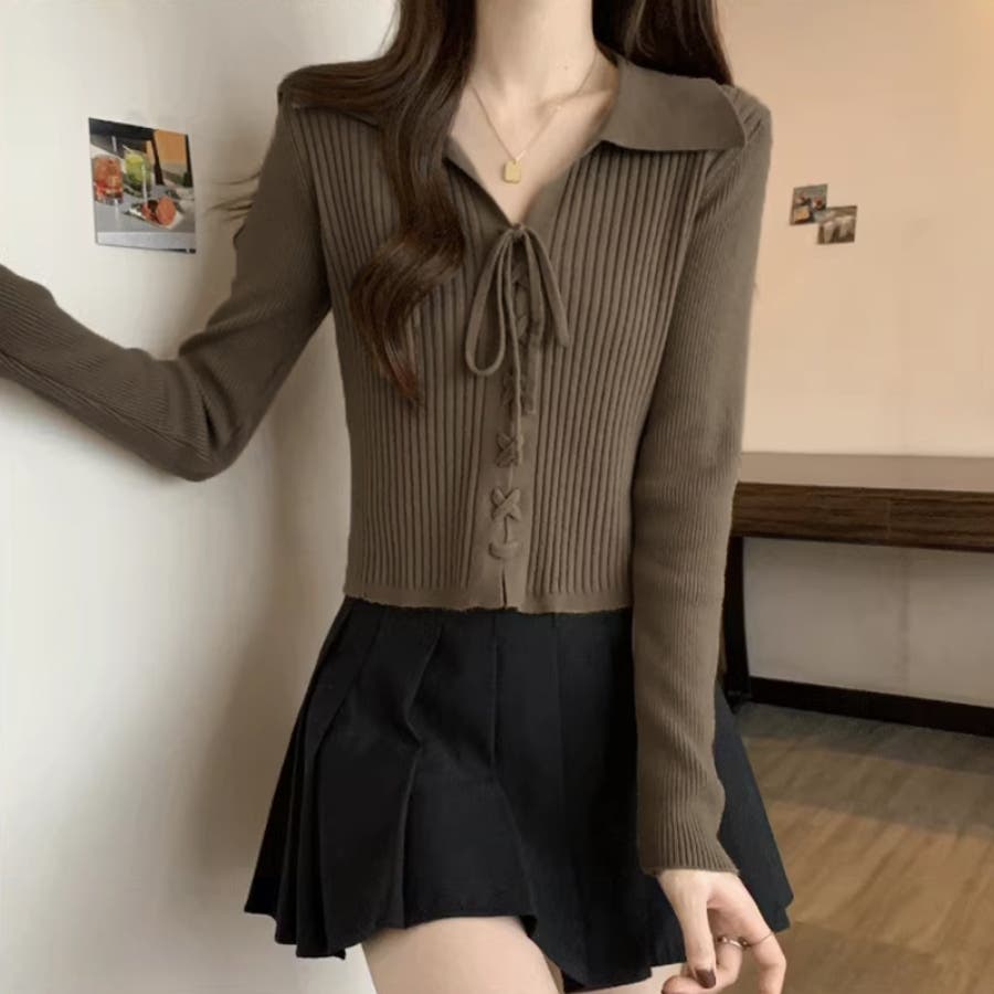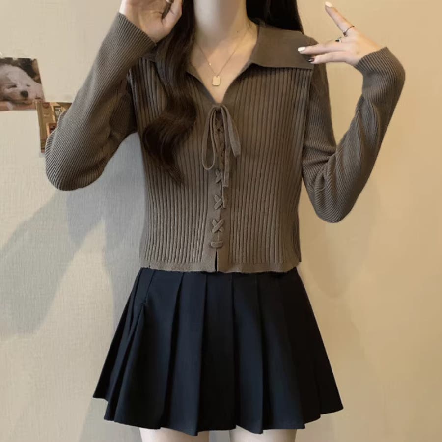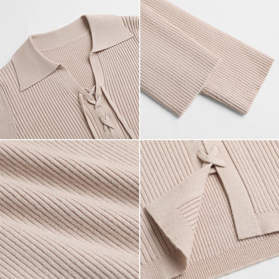 ニット レースアップ スキッパーネック リブニット トップス 長袖 レディース 襟付き リブ フィット 編み上げ リボン プルオーバー レースアップトップス リボンニット 襟付きニット ショート丈 クロップド丈 ショート クロップド シンプル 無地 スキッパー ポロ ニットセーター セーター おしゃれ v vネック Vネック ニットトップス 長袖ニット タイト 襟 付き tops 着回し 伸縮性 ストレッチ 細見え 華奢見え ニットレディース アクリル アクリル100% 柔らかい やわらかい やわらか ソフトな肌触り ソフトな肌触り チクチクしにくい チクチクしない 洗濯できる ヤク風 ヤク風ニット 1枚で決まる 洗える 洗濯機で洗える ノーアイロン あたたかい あったか 暖かい 暖か 韓国風 韓国コーデ バレエコア フェミニン ガーリー カジュアル 大人 オトナ かわいい 可愛い 大人可愛い きれい め きれいめ キレイめ オシャレ 女性 母 ママ ママコーデ プチプラ 高見え トレンド デザイン コーデ ヒット 商品 おすすめ 服 衣料 ファッション フリーサイズ フリー サイズ ライトブラウン 茶色 ダークブラウン ブラック 黒 カラー 秋色 秋物レディース 秋物 冬物 新作 春秋 秋冬 春 秋 冬 春服 秋服 冬服 韓国 韓国ファッション 10代 20代 30代 40代 50代 cocomomo ココモモ