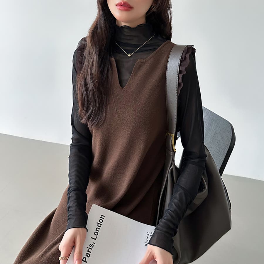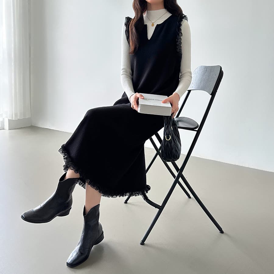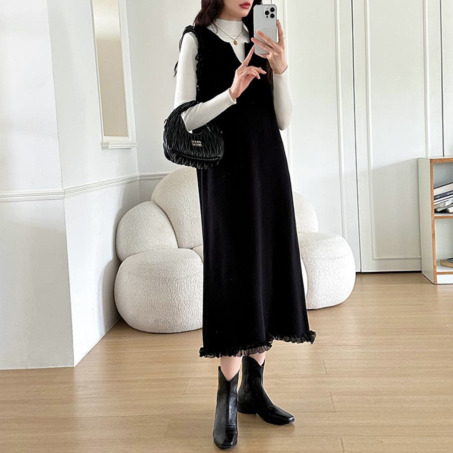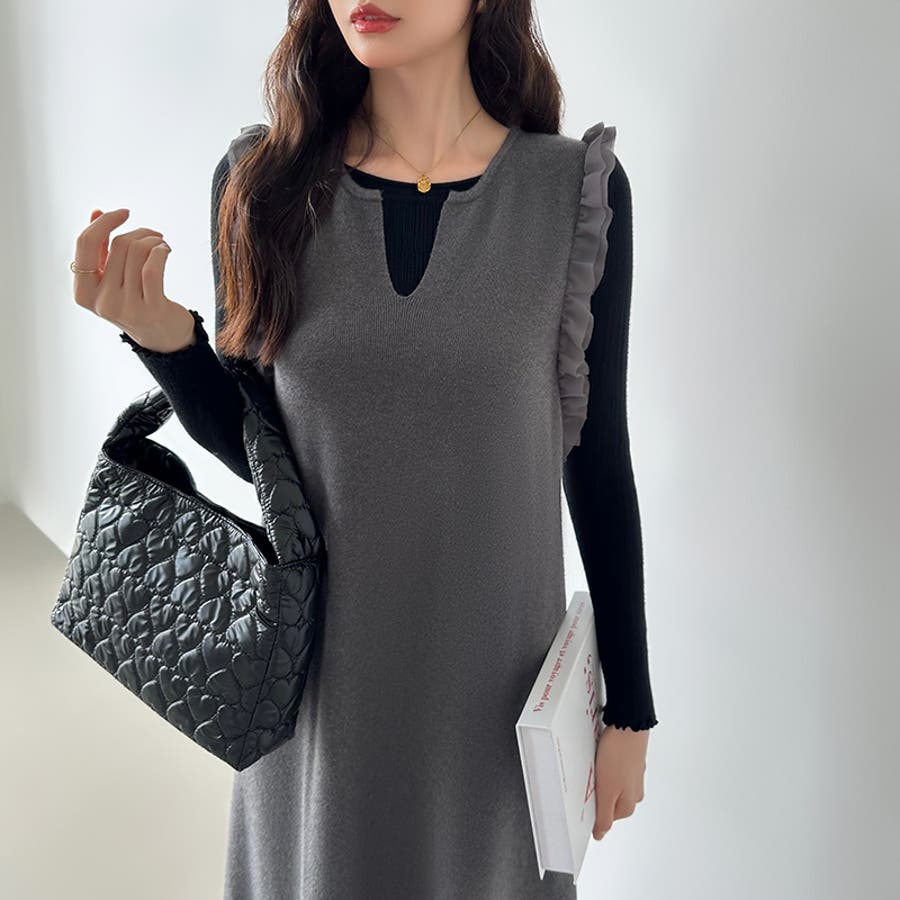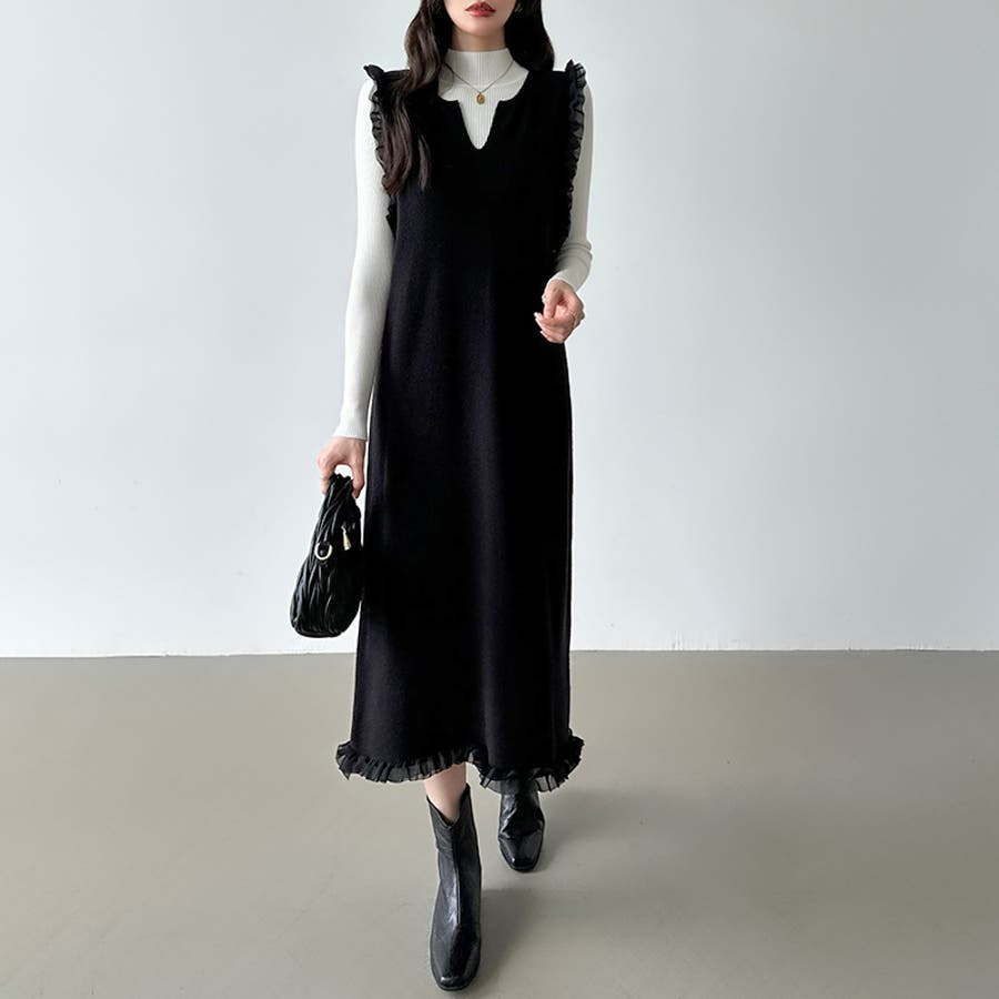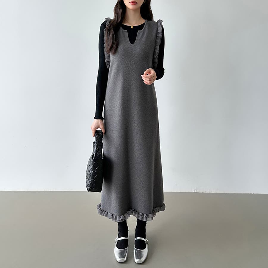 ジャンパースカート ショルダーフリル ワンピース ニット レディース フリル チュール vネック 大人 ニットワンピース ノースリーブ 肩フリル ロング ジャンスカ 裾フリル aライン 大人可愛い フリルワンピース 肩 肩フリルワンピース ショルダーフリルワンピース チュールフリル フリルチュール 裾 着痩せ ノースリーブワンピース おしゃれ ワンピ 膝下 ひざ下 ミモレ ミモレ丈 丈 ロング丈 袖なし 袖無し Aライン V Vネック キーネック vネックワンピース ジャンスカワンピース ロングワンピース ミディアム丈 フレアワンピース 重ね 重ね着 レイヤード 細見え らくちん 楽ちん シンプル 伸縮性 ストレッチ お出かけ おでかけ 旅行 デート プチプラ 高見え フェミニン ガーリー バレエコア カジュアル きれいめ きれい きれい め キレイめ かわいい 可愛い 大人っぽい オトナ女子 おしゃれ オシャレ 女性 女子 ママ ママコーデ 母 フリー サイズ フリーサイズ ブラウン 茶色 グレー 灰色 ブラック 黒 カラー きれいめワンピース ワンピース秋 大人可愛いワンピース ワンピース秋冬 新作 秋冬 秋 冬 秋服 冬服 秋物 冬物 韓国 韓国ファッション 10代 20代 30代 40代 50代 cocomomo ココモモ