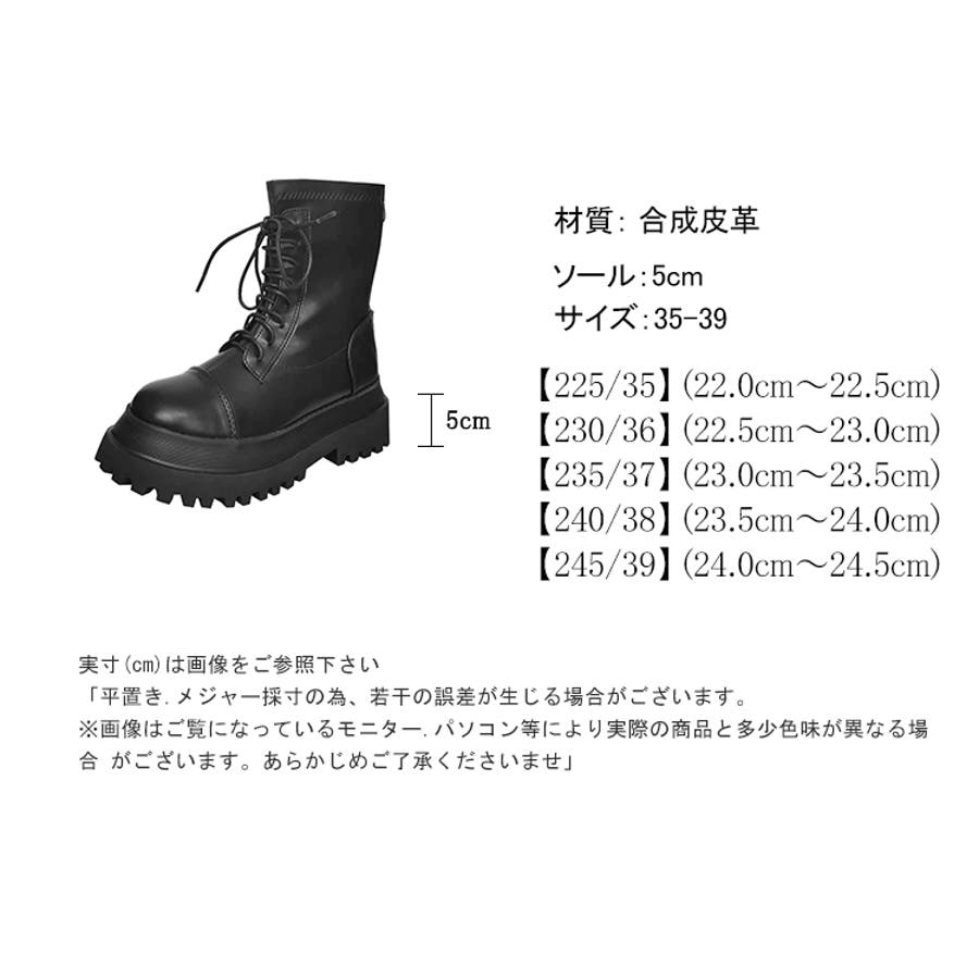 | サイズ | ソール: 5cm 高さ(ソール含む):約20cm 履き口周り:約24cm サイズ: 35-39 [225/35] 22.0~22.5cm [230/36] 22.5~23.0cm [235/37] 23.0~23.5cm [240/38] 23.5~24.0cm [245/39] 24.0~24.5cm | サイズ: 35-39