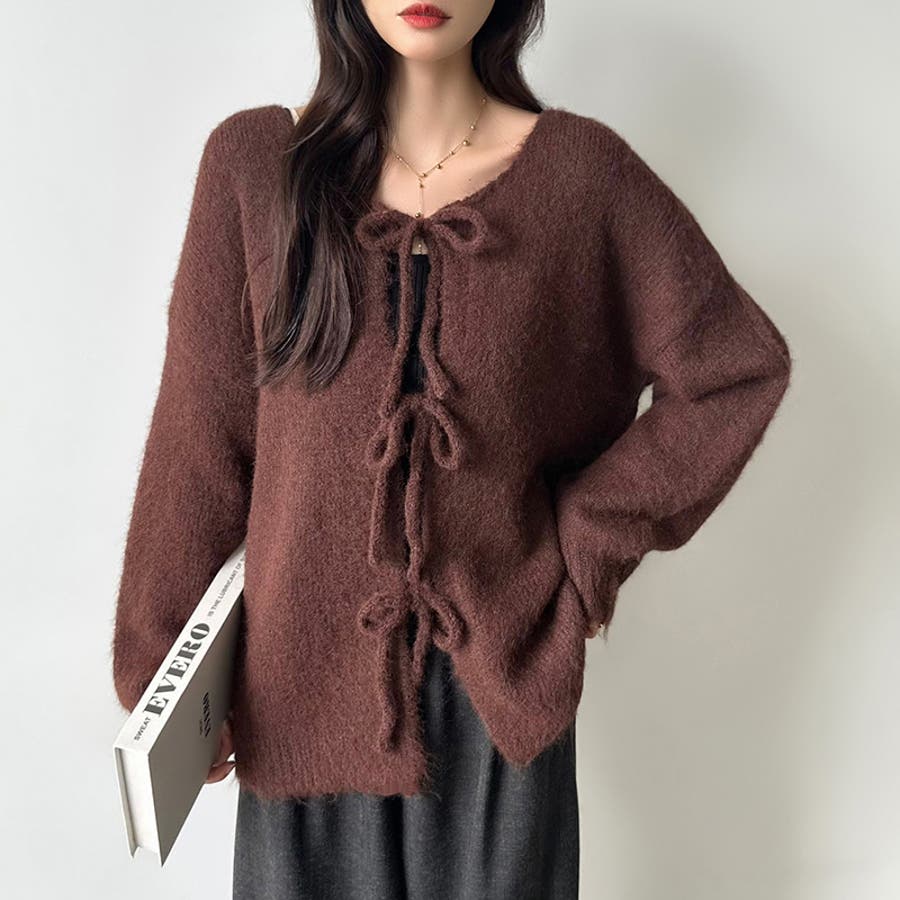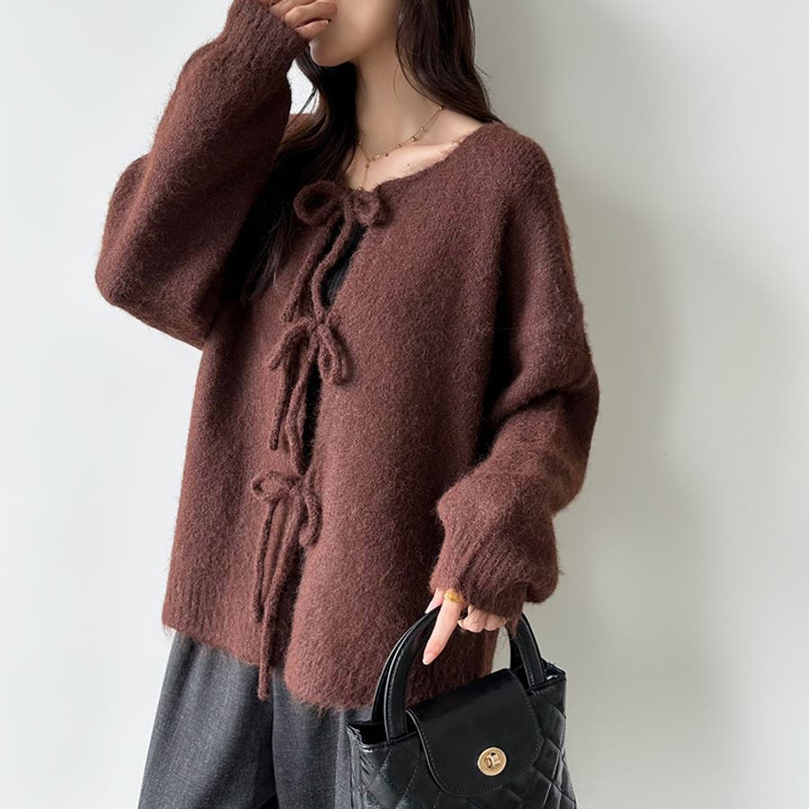 カーディガン リボン 前後2way ニット レディース ニットカーディガン ドロップショルダー ゆったり 2way ラウンドネック ニットカーディガン ボリューム袖 トップス 長袖 ボレロ 羽織り 前開き ドロップショルダーカーディガン 前後 フロントリボン ゆったりカーディガン 大きい 大きめ 袖長め 袖 長め 袖リブ リブ袖 リブ ボリュームスリーブ ぽわん ぽわん袖 クルーネックカーディガン ゆるニット アウター 上着 羽織もの 羽織 前あき ニットトップス ニットセーター ニットレディース シンプル 無地 ゆる tops 着回し 伸縮性 ストレッチ モヘアタッチ ふわふわ ふんわり 柔らかい やわらかい やわらか アクリル アクリル100% ヤク ヤク風 チクチクしない 暖か 暖かい あたたか フェミニン ガーリー バレエコア カジュアル 大人 オトナ かわいい 可愛い 大人可愛い きれいめ きれい め おしゃれ オシャレ プチプラ 高見え フリーサイズ トレンド ヒット 商品 おすすめ 服 ファッション コーデ アイボリー ライトブラウン 茶色 レッドブラウン グレー 灰色 秋色 新作 秋冬 春 秋 冬 春服 秋服 冬服 韓国 韓国ファッション 10代 20代 30代 40代 50代 cocomomo ココモモ