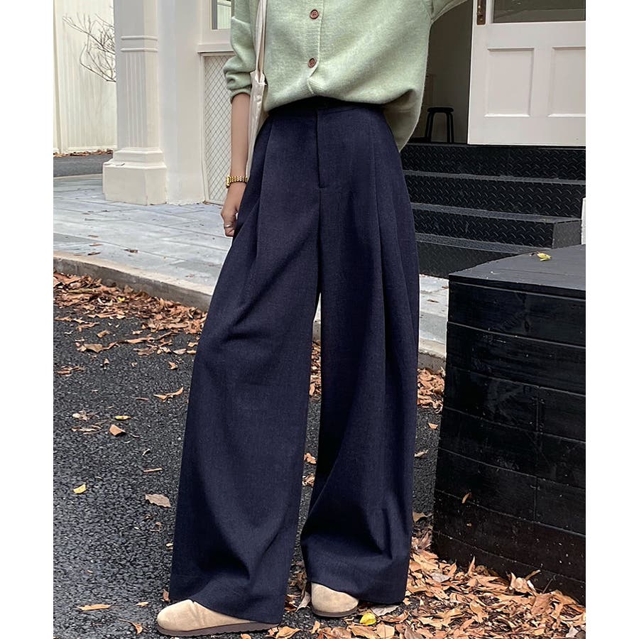 タックワイドパンツ。
