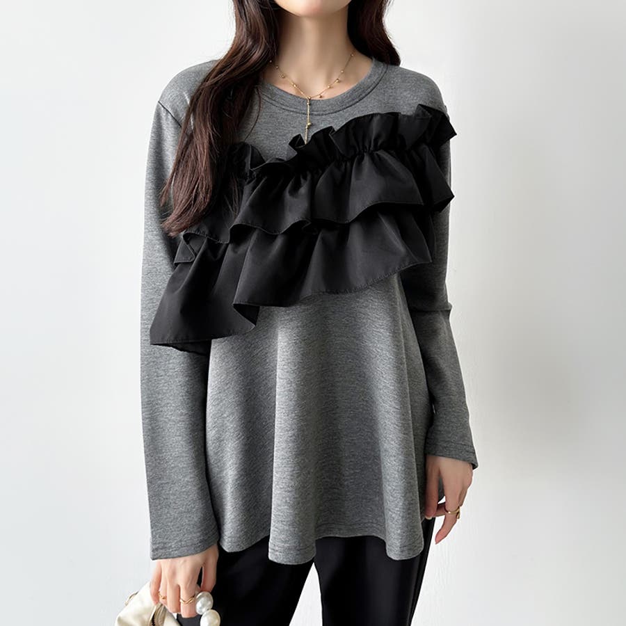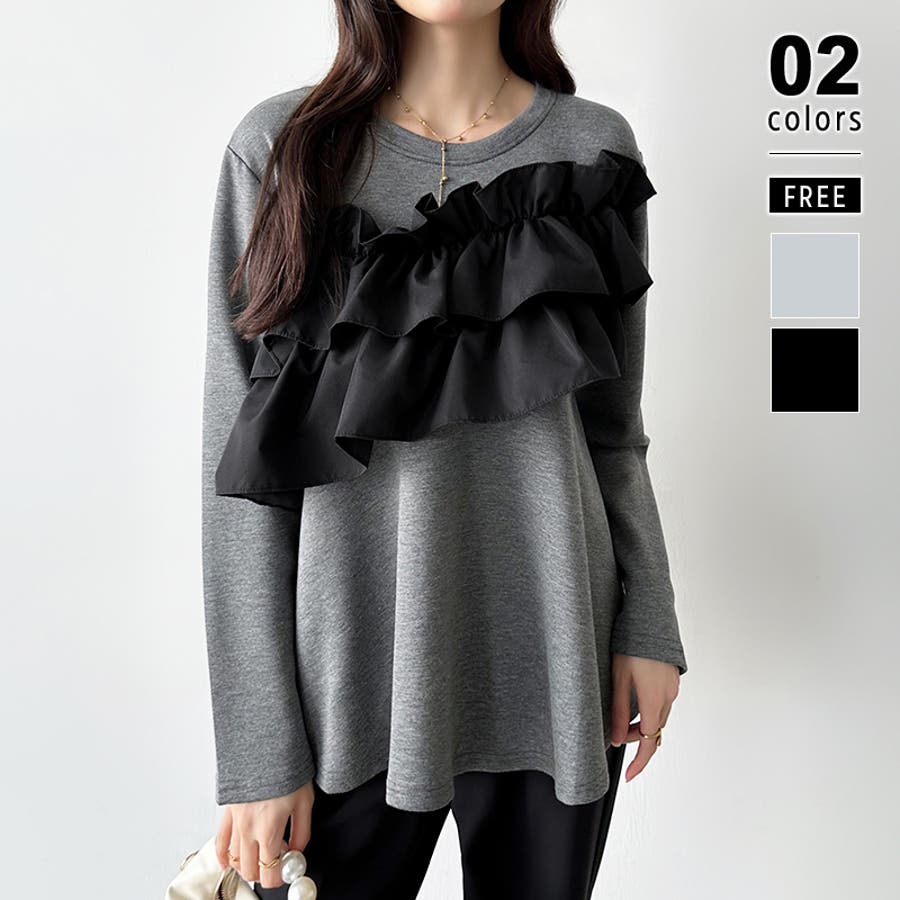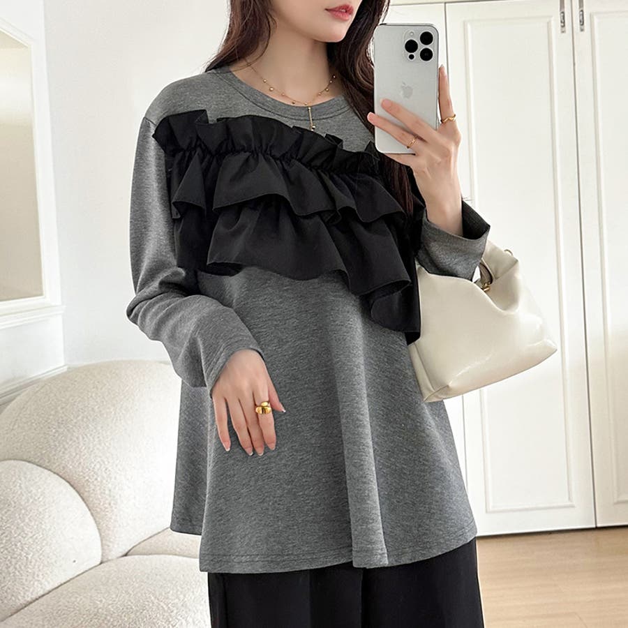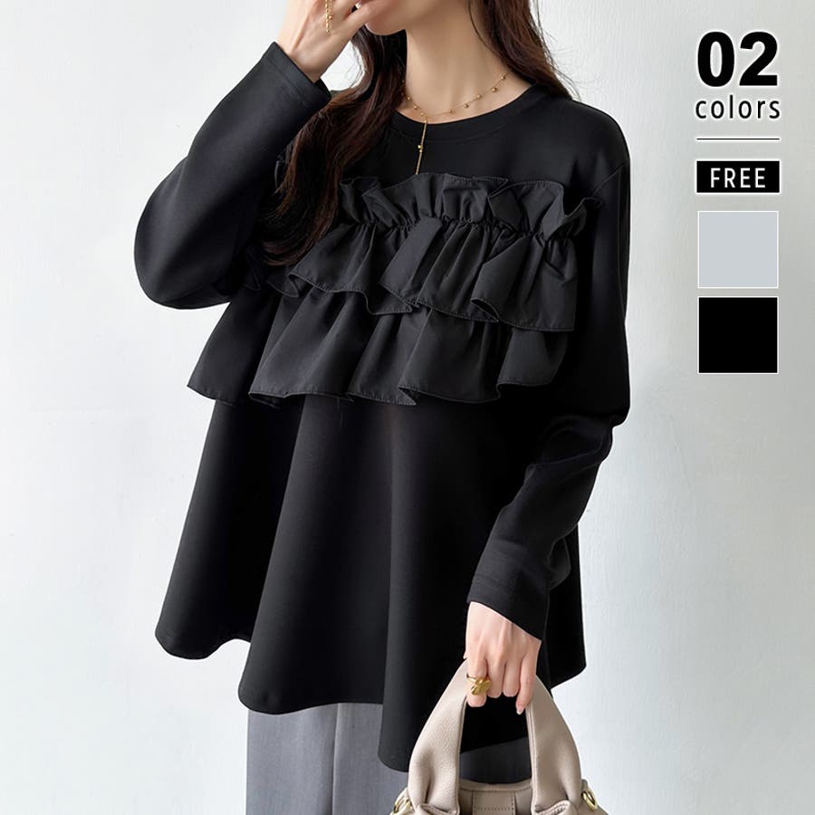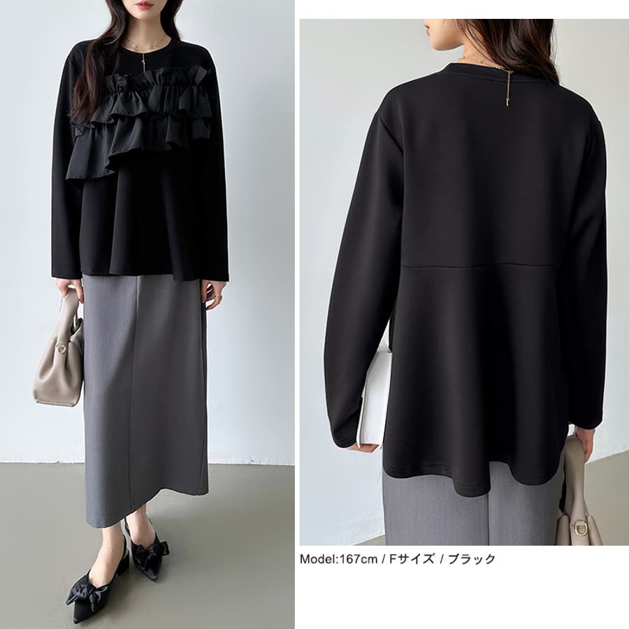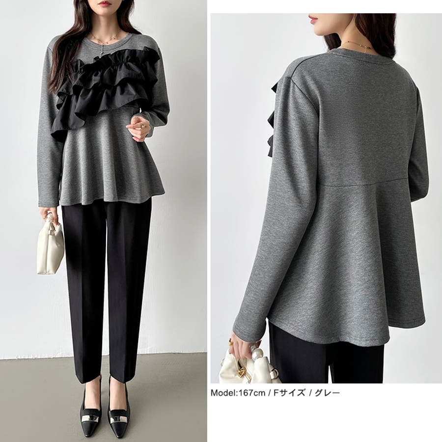 フリル トップス 長袖 カットソー ペプラム ロンT レディース 胸元 フリルトップス フリルTシャツ きれいめ tシャツ おしゃれ 長袖tシャツ かわいい クルーネック ペプラムトップス ドッキング 異素材 切り替え 異素材切り替え ギャザー ロンt フリルカットソー クルーネック 長袖カットソー かっとそー ロングtシャツ ロングTシャツ Tシャツ ロングティーシャツ ロングT ろんT クルーネックtシャツ プルオーバー 丸首 ネック ラウンドネック ブラウス見え ゆったり フリル付き 付き 体型カバー 着回し 着まわし 無地 ポリエステル 綿 コットン 伸縮性 ストレッチ お出かけ おでかけ 旅行 オフィス オフィスカジュアル オフィスカジュアル秋冬 エレガント フェミニン 華やか 綺麗 キレイめ きれい め 上品 大人 オトナ 可愛い 大人可愛い オトナ女子 オシャレ 女性 母 母親 女 ママ ママコーデ プチプラ 高見え 高級感 レンド ヒット 商品 おすすめ 服 ファッション コーデ フリー サイズ フリーサイズ グレー 灰色 ブラック 黒 レディース春 レディース秋冬 レディース秋物 レディース秋冬トップス レディース冬 春トップス 秋トップス 冬トップス 長袖レディース 新作 秋冬 春 秋 冬 春服 秋服 冬服 韓国 韓国ファッション 10代 20代 30代 40代 50代 cocomomo ココモモ