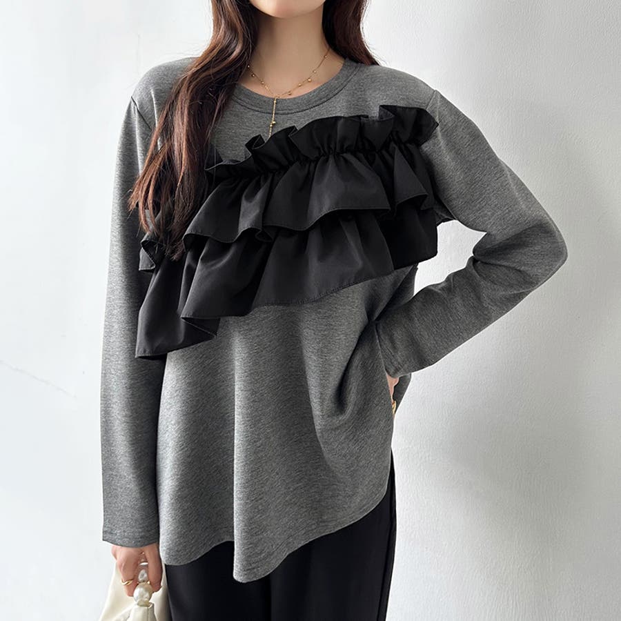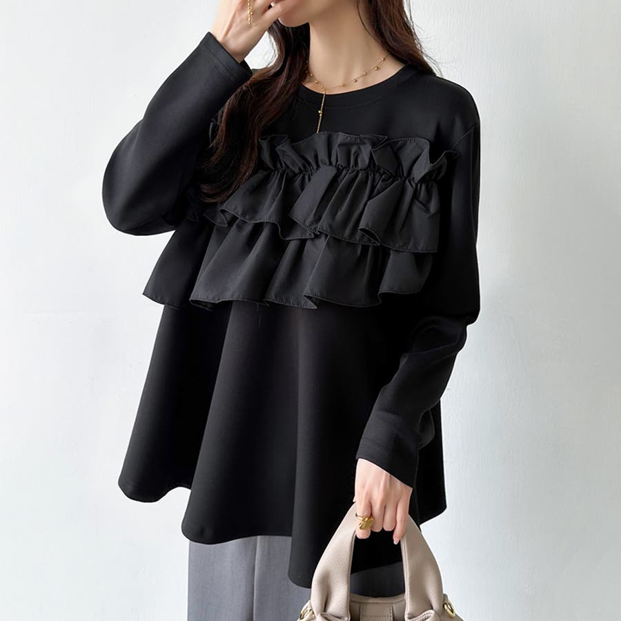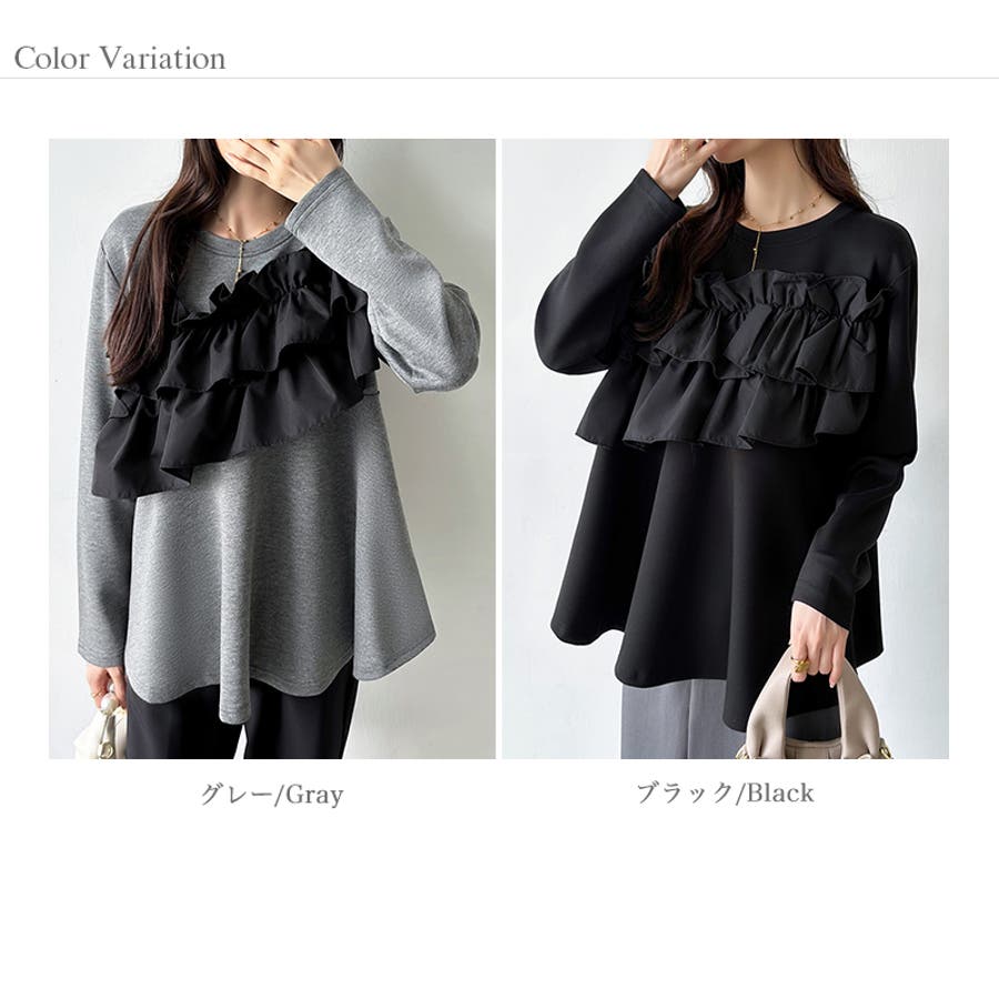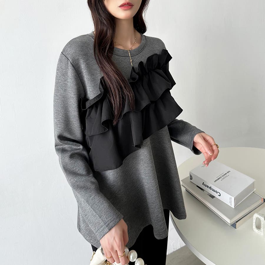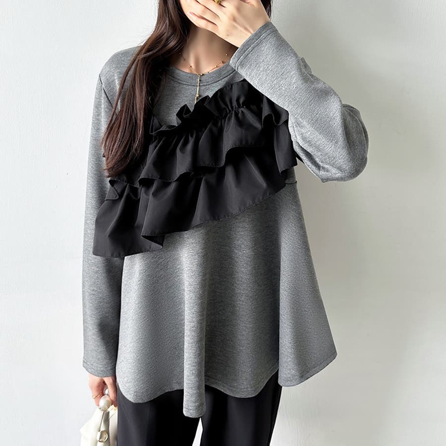 フリル トップス 長袖 カットソー ペプラム ロンT レディース 胸元 フリルトップス フリルTシャツ きれいめ tシャツ おしゃれ 長袖tシャツ かわいい クルーネック ペプラムトップス ドッキング 異素材 切り替え 異素材切り替え ギャザー ロンt フリルカットソー クルーネック 長袖カットソー かっとそー ロングtシャツ ロングTシャツ Tシャツ ロングティーシャツ ロングT ろんT クルーネックtシャツ プルオーバー 丸首 ネック ラウンドネック ブラウス見え ゆったり フリル付き 付き 体型カバー 着回し 着まわし 無地 ポリエステル 綿 コットン 伸縮性 ストレッチ お出かけ おでかけ 旅行 オフィス オフィスカジュアル オフィスカジュアル秋冬 エレガント フェミニン 華やか 綺麗 キレイめ きれい め 上品 大人 オトナ 可愛い 大人可愛い オトナ女子 オシャレ 女性 母 母親 女 ママ ママコーデ プチプラ 高見え 高級感 レンド ヒット 商品 おすすめ 服 ファッション コーデ フリー サイズ フリーサイズ グレー 灰色 ブラック 黒 レディース春 レディース秋冬 レディース秋物 レディース秋冬トップス レディース冬 春トップス 秋トップス 冬トップス 長袖レディース 新作 秋冬 春 秋 冬 春服 秋服 冬服 韓国 韓国ファッション 10代 20代 30代 40代 50代 cocomomo ココモモ