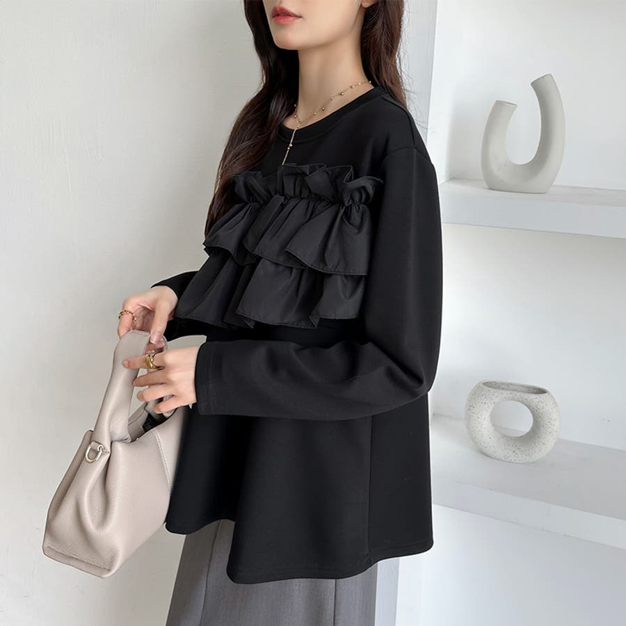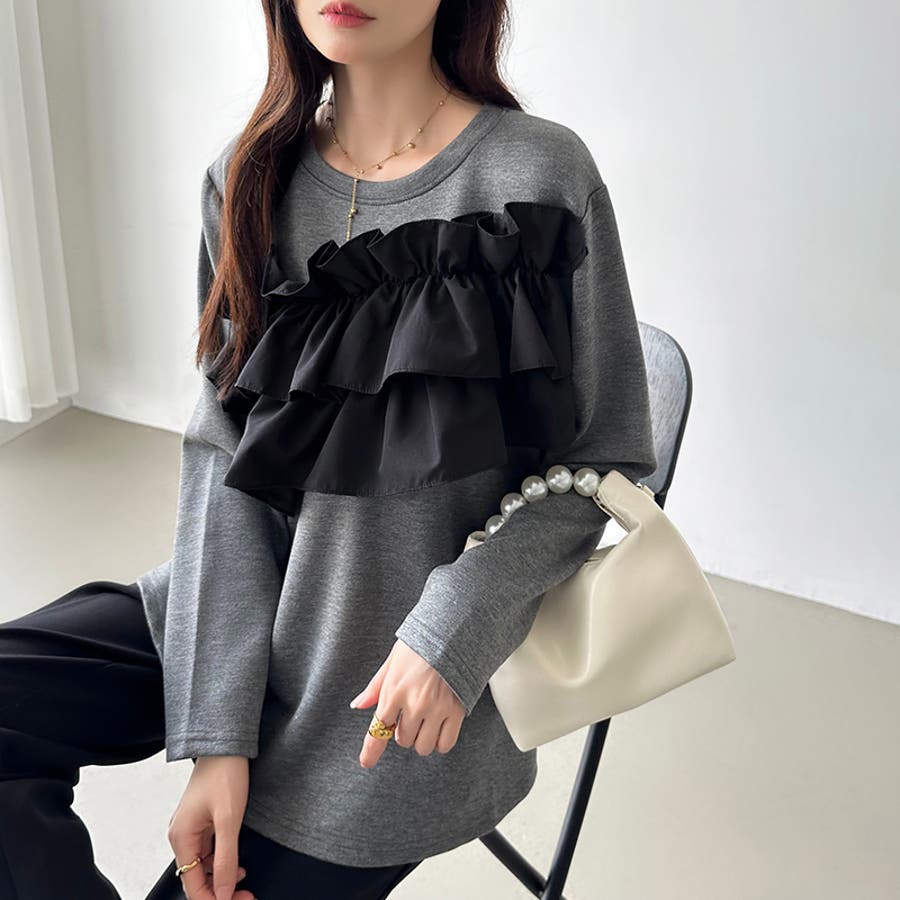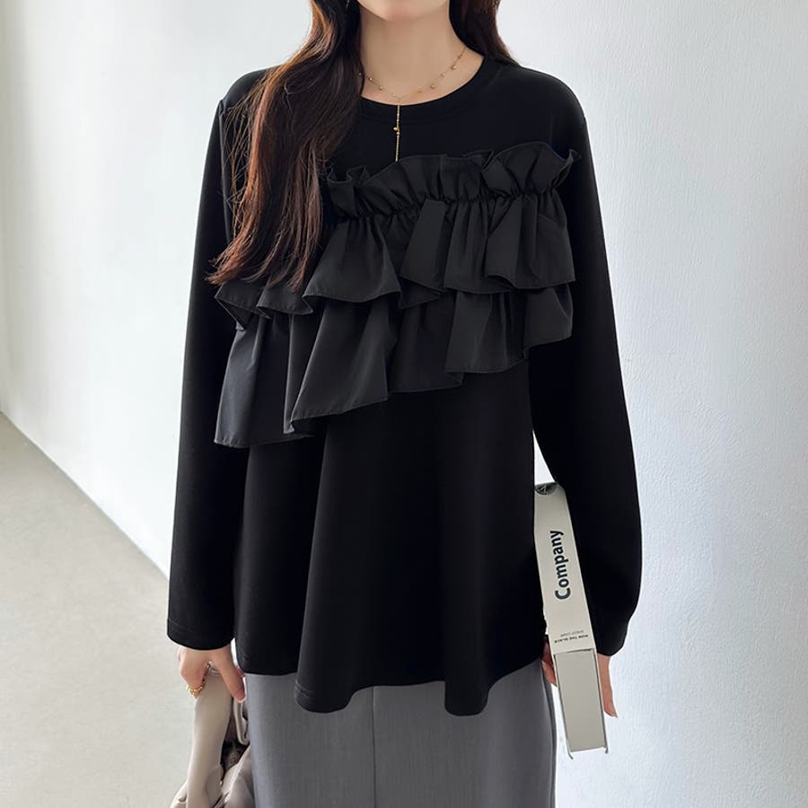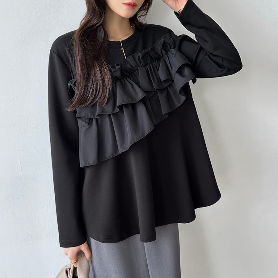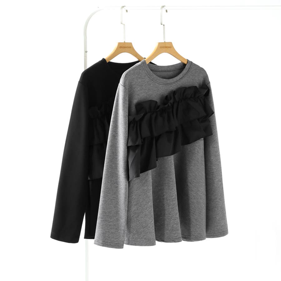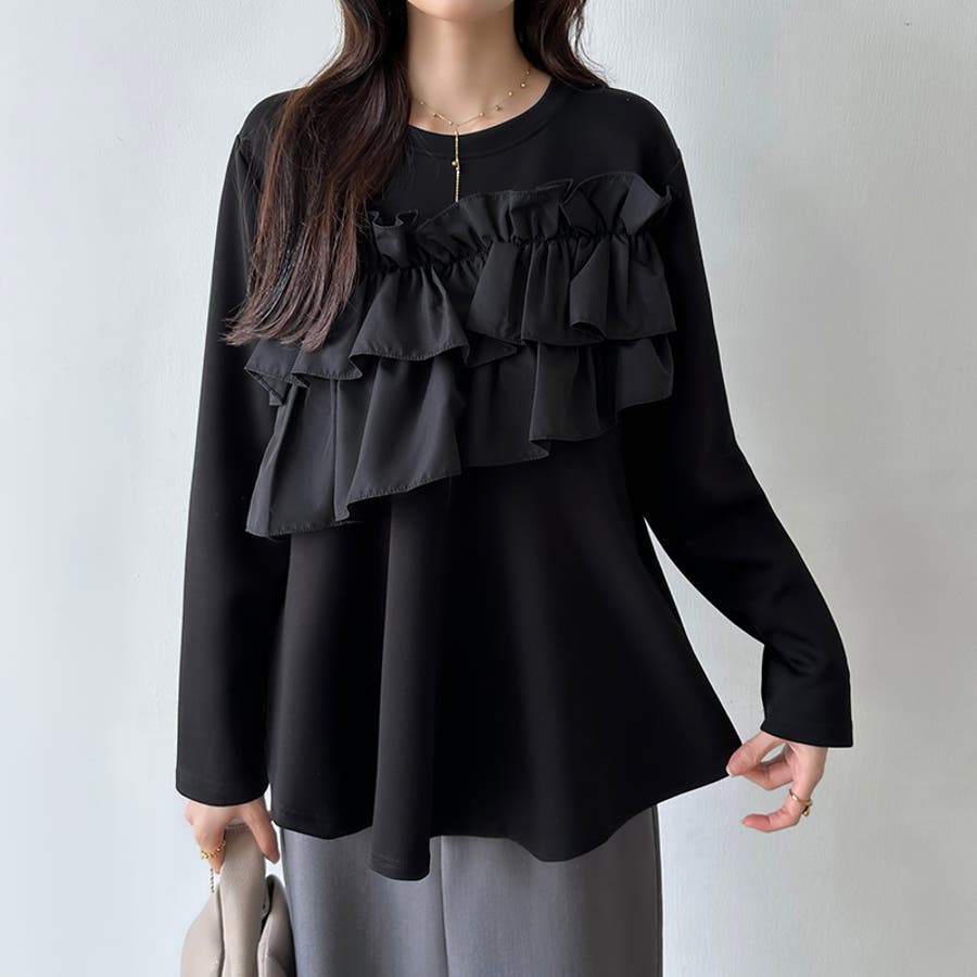 フリル トップス 長袖 カットソー ペプラム ロンT レディース 胸元 フリルトップス フリルTシャツ きれいめ tシャツ おしゃれ 長袖tシャツ かわいい クルーネック ペプラムトップス ドッキング 異素材 切り替え 異素材切り替え ギャザー ロンt フリルカットソー クルーネック 長袖カットソー かっとそー ロングtシャツ ロングTシャツ Tシャツ ロングティーシャツ ロングT ろんT クルーネックtシャツ プルオーバー 丸首 ネック ラウンドネック ブラウス見え ゆったり フリル付き 付き 体型カバー 着回し 着まわし 無地 ポリエステル 綿 コットン 伸縮性 ストレッチ お出かけ おでかけ 旅行 オフィス オフィスカジュアル オフィスカジュアル秋冬 エレガント フェミニン 華やか 綺麗 キレイめ きれい め 上品 大人 オトナ 可愛い 大人可愛い オトナ女子 オシャレ 女性 母 母親 女 ママ ママコーデ プチプラ 高見え 高級感 レンド ヒット 商品 おすすめ 服 ファッション コーデ フリー サイズ フリーサイズ グレー 灰色 ブラック 黒 レディース春 レディース秋冬 レディース秋物 レディース秋冬トップス レディース冬 春トップス 秋トップス 冬トップス 長袖レディース 新作 秋冬 春 秋 冬 春服 秋服 冬服 韓国 韓国ファッション 10代 20代 30代 40代 50代 cocomomo ココモモ