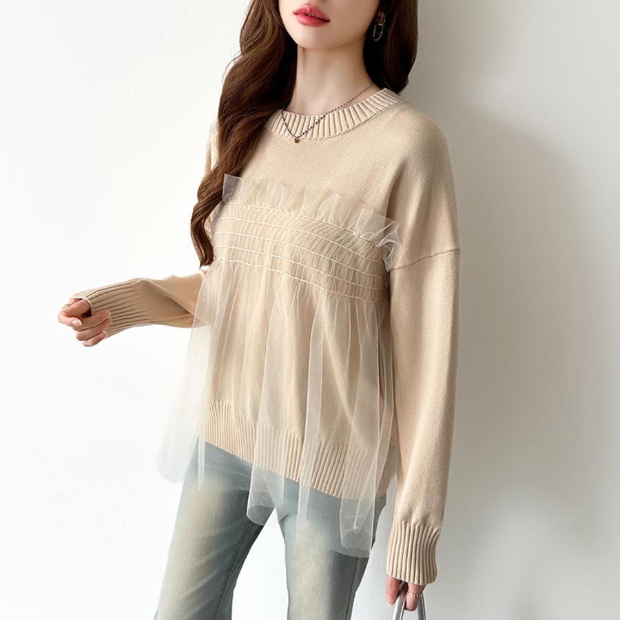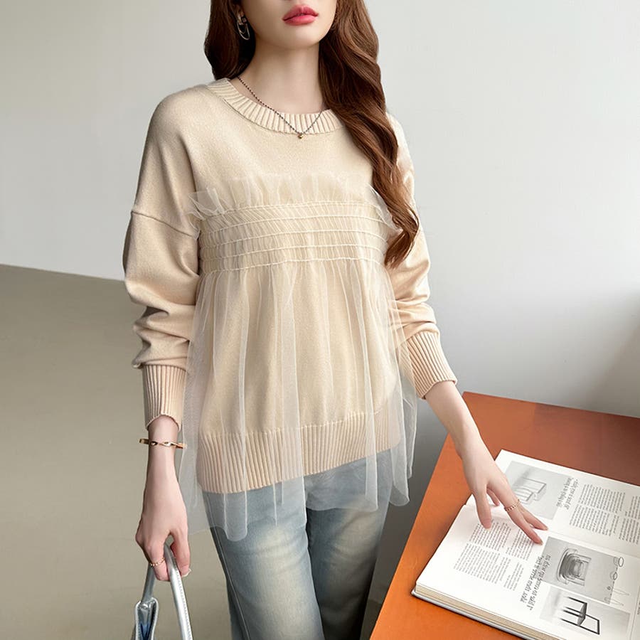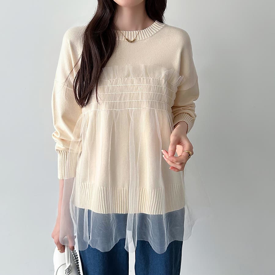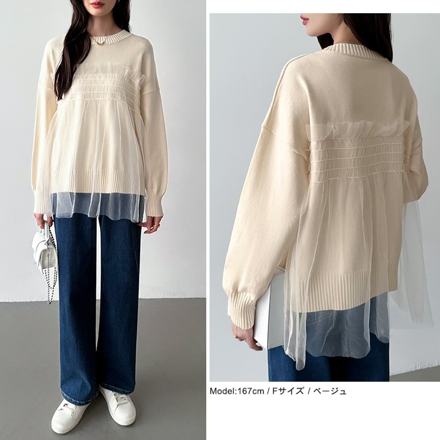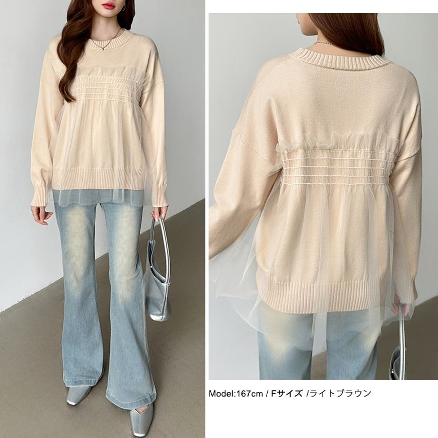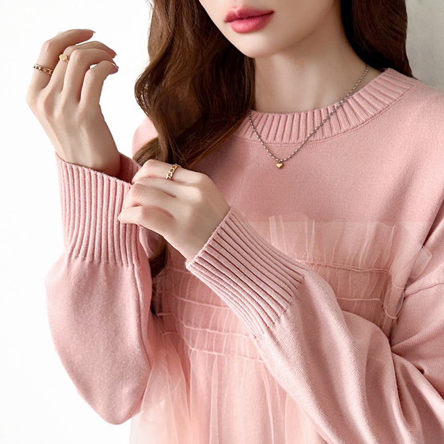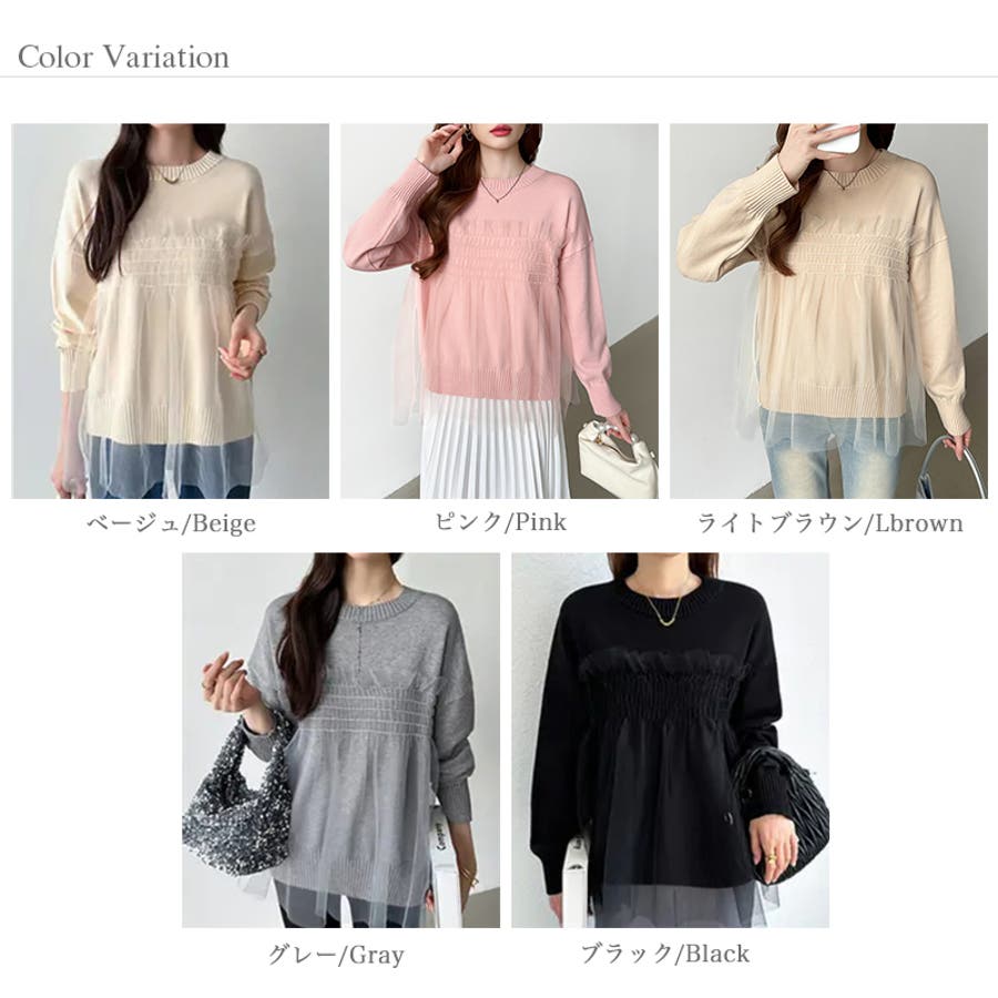 チュール トップス ニット 異素材 ドッキング ビスチェ風 長袖 レディース セーター チュニック 大人可愛い クルーネック チュールトップス オーガンジー フリル ビスチェ風トップス ペプラム ペプラムトップス プルオーバー ゆったり 体型カバー ドロップショルダー チュールドッキング クルーネックニット クルーネックセーター ラウンドネック ニットセーター ニットトップス ニットレディース ドッキングニット 透け 透け感 シンプル 無地 長袖ニット 長袖トップス 長袖トップスレディース tops 着回し 着まわし ビスチェ 重ね着 重ね着風 レイヤード 伸縮性 伸びる ストレッチ リブ リブ袖 袖リブ 袖長め 長い 長め アクリル アクリル100% ふんわり 柔らかい やわらかい やわらか ソフトな肌触り ソフト ソフトタッチ チクチクしにくい チクチクしない ちくちくしない ちくちくしにくい ヤク風 ヤク風ニット 1枚で決まる 洗える 手洗い 手洗い可能 洗濯できる 洗濯 洗濯可能 洗濯可 あたたかい 暖かい 暖か あったかい あったか オフィス オフィスカジュアル オフィカジ スカジュアル秋冬 通勤 通学 女子会 おでかけ お出かけ 旅行 服装 カジュアル フェミニン バレエコア 上品 大人 オトナ かわいい 可愛い 大人かわいい きれいめ きれい め キレイめ おしゃれ オシャレ 女性 母 ママ ママコーデ プチプラ 高見え トレンド コーデ ヒット 商品 おすすめ 服 ファッション フリーサイズ フリー サイズ ベージュ グレー 灰色 ブラック 黒 ピンク ライトブラウン 茶色 カラー 秋色 レディース春 レディース秋冬 レディース秋物 レディース秋冬トップス レディース冬 春トップス 秋トップス 冬トップス 長袖レディース 秋トップスレディース 新作 秋冬 春 秋 冬 春服 秋服 冬服 春物 秋物 冬物 春用 秋用 冬用 韓国 韓国ファッション 10代 20代 30代 40代 50代 cocomomo ココモモ