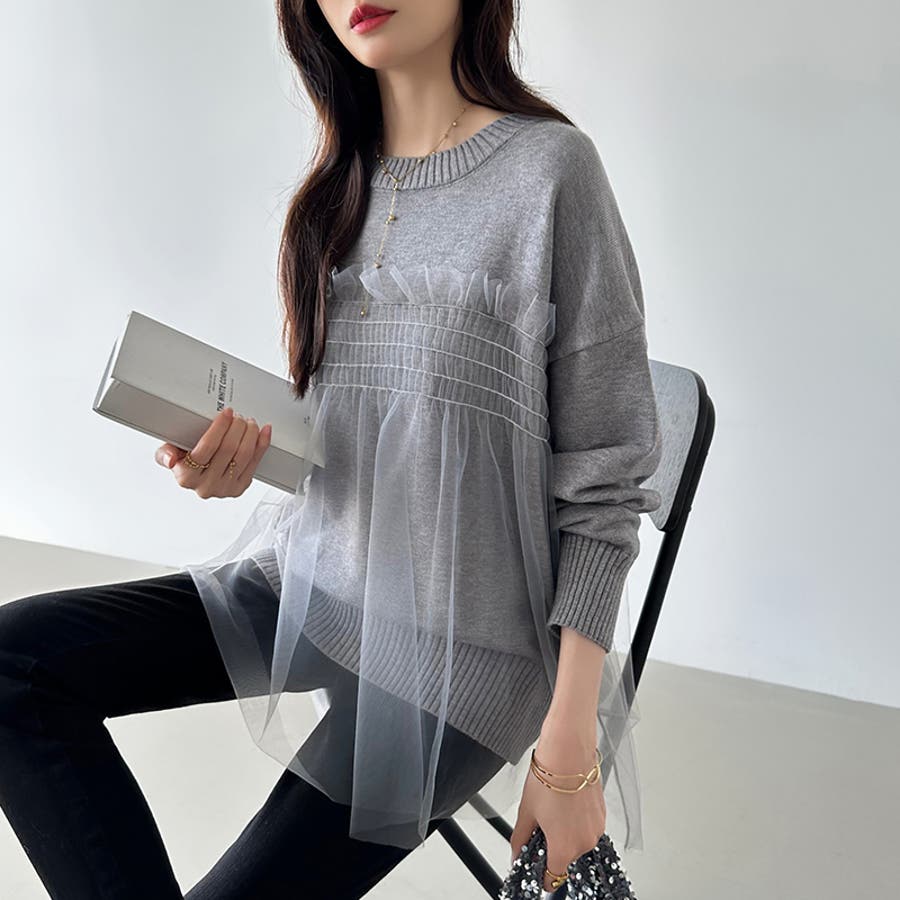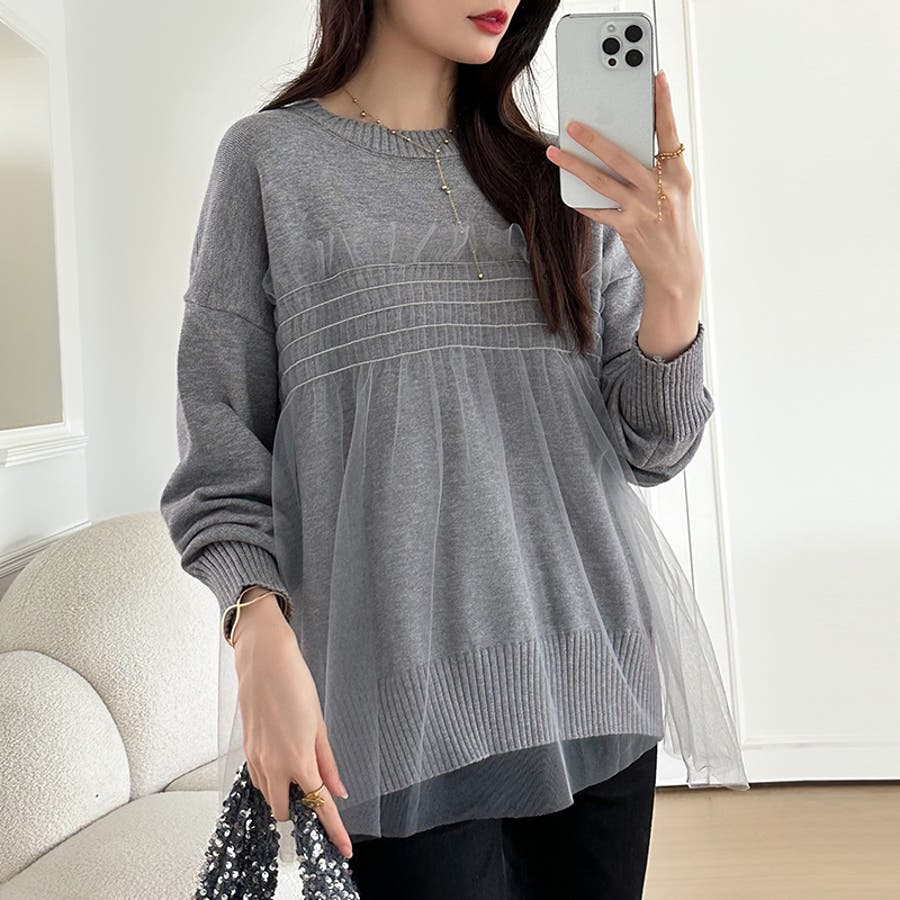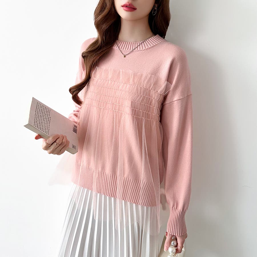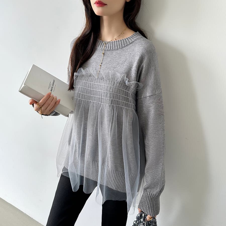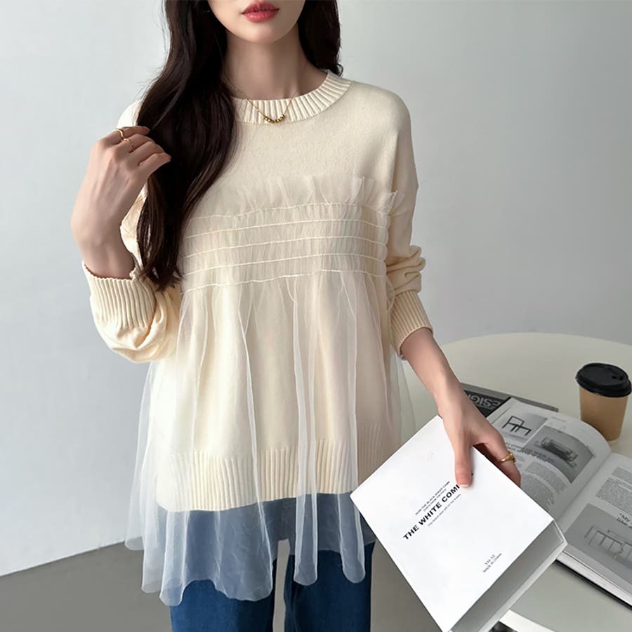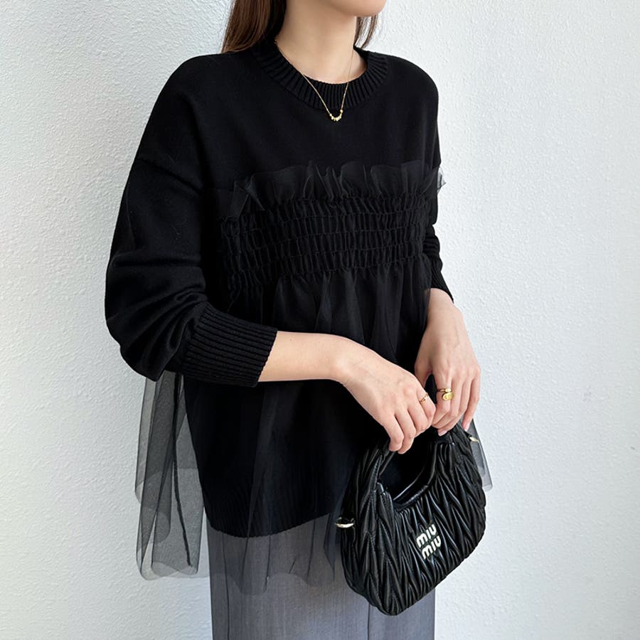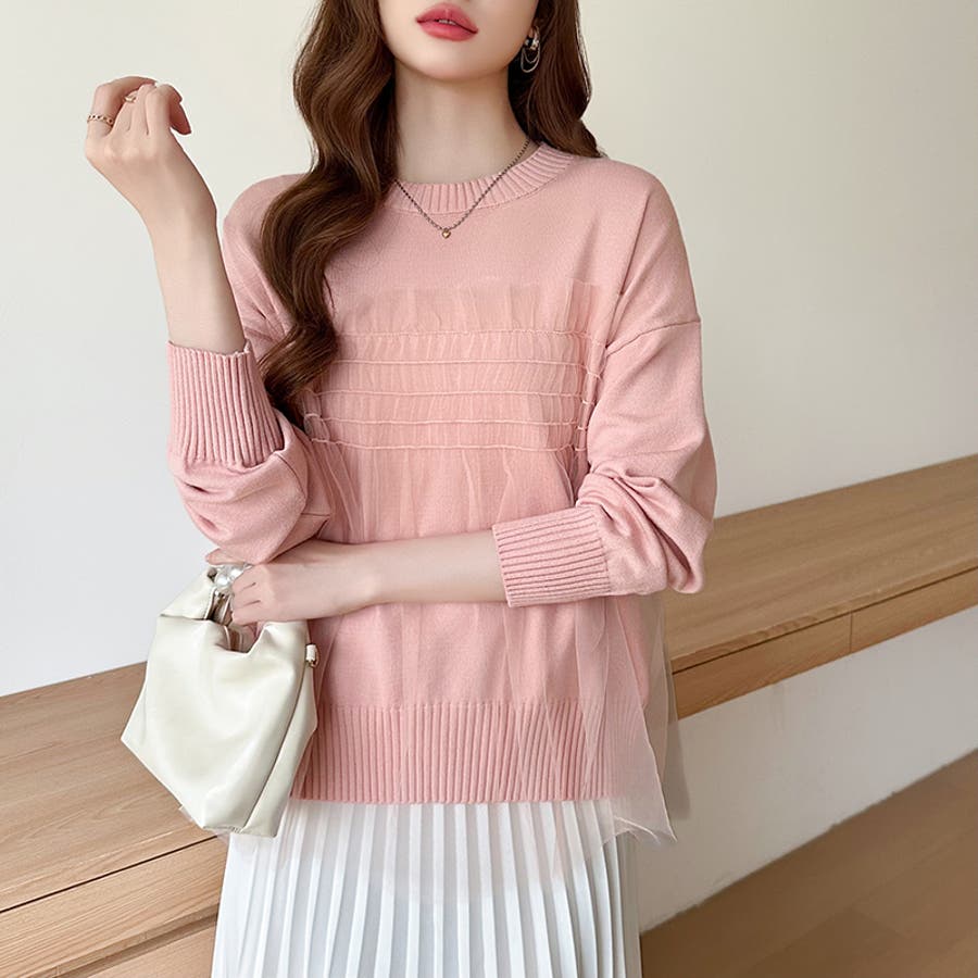 チュール トップス ニット 異素材 ドッキング ビスチェ風 長袖 レディース セーター チュニック 大人可愛い クルーネック チュールトップス オーガンジー フリル ビスチェ風トップス ペプラム ペプラムトップス プルオーバー ゆったり 体型カバー ドロップショルダー チュールドッキング クルーネックニット クルーネックセーター ラウンドネック ニットセーター ニットトップス ニットレディース ドッキングニット 透け 透け感 シンプル 無地 長袖ニット 長袖トップス 長袖トップスレディース tops 着回し 着まわし ビスチェ 重ね着 重ね着風 レイヤード 伸縮性 伸びる ストレッチ リブ リブ袖 袖リブ 袖長め 長い 長め アクリル アクリル100% ふんわり 柔らかい やわらかい やわらか ソフトな肌触り ソフト ソフトタッチ チクチクしにくい チクチクしない ちくちくしない ちくちくしにくい ヤク風 ヤク風ニット 1枚で決まる 洗える 手洗い 手洗い可能 洗濯できる 洗濯 洗濯可能 洗濯可 あたたかい 暖かい 暖か あったかい あったか オフィス オフィスカジュアル オフィカジ スカジュアル秋冬 通勤 通学 女子会 おでかけ お出かけ 旅行 服装 カジュアル フェミニン バレエコア 上品 大人 オトナ かわいい 可愛い 大人かわいい きれいめ きれい め キレイめ おしゃれ オシャレ 女性 母 ママ ママコーデ プチプラ 高見え トレンド コーデ ヒット 商品 おすすめ 服 ファッション フリーサイズ フリー サイズ ベージュ グレー 灰色 ブラック 黒 ピンク ライトブラウン 茶色 カラー 秋色 レディース春 レディース秋冬 レディース秋物 レディース秋冬トップス レディース冬 春トップス 秋トップス 冬トップス 長袖レディース 秋トップスレディース 新作 秋冬 春 秋 冬 春服 秋服 冬服 春物 秋物 冬物 春用 秋用 冬用 韓国 韓国ファッション 10代 20代 30代 40代 50代 cocomomo ココモモ