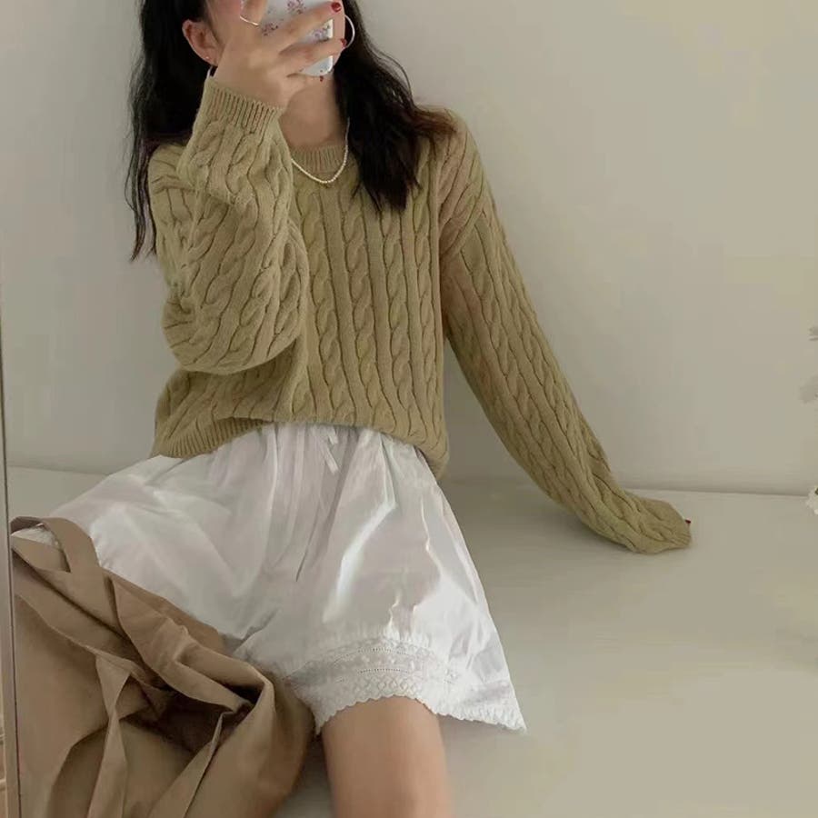 ケーブルニット ショート丈 ニット セーター レディース 長袖 ケーブル編み トップス ゆったり 柄 クルーネックニット クルーネックセーター ケーブルニットセーター ショート 丈 ショートニット ゆったり ショートトップス ドロップショルダーニット ゆるニット 袖長め 袖 長め 長い ニットトップス ニットセーター ニットレディース 長袖ニット シンプル ゆる tops 着回し 伸縮性 ストレッチ 柔らかい やわらかい やわらか ふんわり アクリル アクリル100% チクチクしない チクチクしにくい 暖か 暖かい あたたかい あったか 韓国風 フェミニン ガーリー レトロ カジュアル 大人 オトナ かわいい 可愛い おしゃれ オシャレ プチプラ 高見え フリーサイズ トレンド ヒット 商品 おすすめ 服 ファッション コーデ ベージュ ライトブラウン グリーン 緑 ダークブラウン 茶色 秋色 秋ニット 秋トップス 秋トップスレディース 冬トップス 新作 秋冬 春 秋 冬 秋用 冬用 春服 秋服 冬服 韓国 韓国ファッション 10代 20代 30代 40代 50代 cocomomo ココモモ