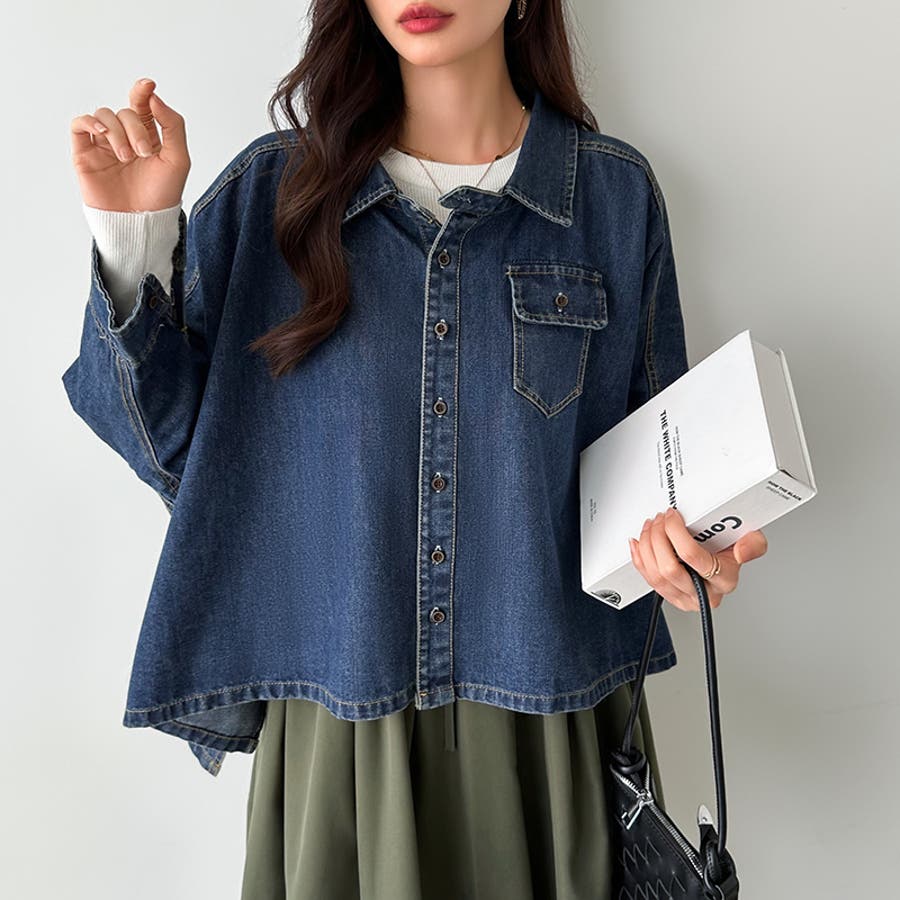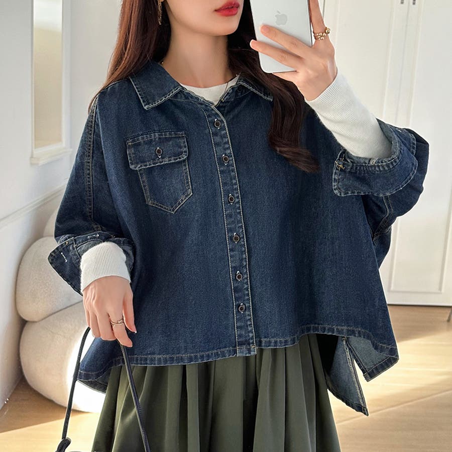 デニムジャケット レディース デニム シャツ ジャケット オーバーサイズ ゆったり 大きめ Gジャン 長袖 ボリューム袖 アウター 大きいサイズ デニムシャツ シャツジャケット ドルマンスリーブ ビッグシルエット 羽織 トップス シャツジャケットレディース デニムシャツレディース 体型カバー 抜き襟 ライトアウター ラフ ゆる 大きい デニムジャケットレディース ドロップショルダー 体型カバー カバー 隠し 変形 gジャン 軽アウター アウターレディース ジャンパー ジャンバー 長め 袖あり 袖 ボリュームスリーブ ドルマン 上着 羽織り 羽織もの 前開き 前ボタン 襟あり ポケット 着回し 重ね着 重ね レイヤード ビッグシルエット ボタン スプリング スプリングジャケット お出かけ おでかけ 旅行 コットン 綿 ポリエステル 個性 個性的 個性派 フェミニン カジュアル 大人 かわいい 可愛い 大人可愛い オトナ女子 きれい め きれいめ キレイめ おしゃれ オシャレ 母 ママ ママコーデ プチプラ 高級感 高見え トレンド ヒット 商品 おすすめ 服 ファッション コーデ 人気 女性 フリーサイズ フリー サイズ ブルー 青 カラー 春アウター 秋アウター スプリングアウター 大人カジュアル 新作 春秋 秋冬 春 秋 冬 春服 秋服 冬服 春用 秋用 韓国 韓国ファッション 20代 30代 40代 50代 cocomomo ココモモ