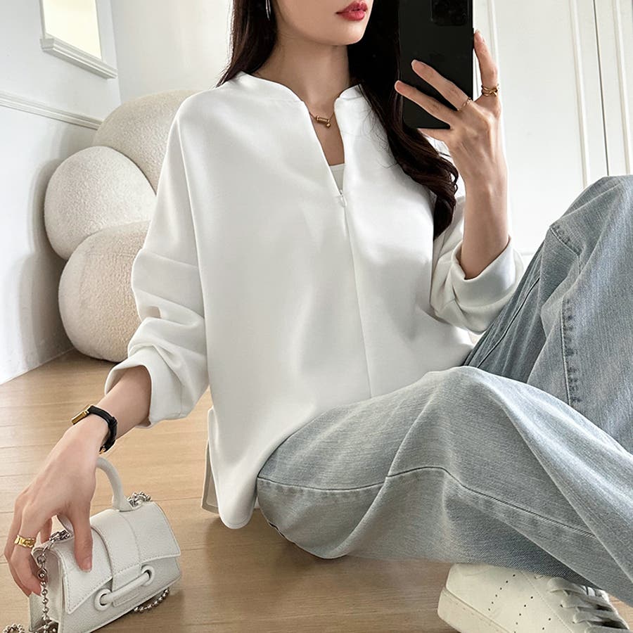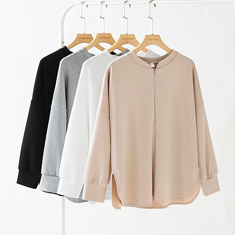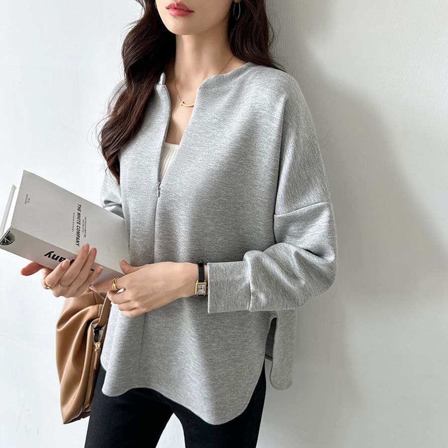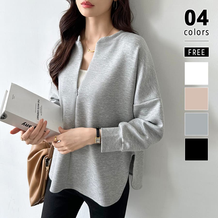 ハーフジップ きれいめ トップス ラウンドヘム カットソー 長袖 レディース ポンチ ドロップショルダー プルオーバー 2way ジップ ジップアップ サイドスリット おしゃれ ゆったり ハーフジップトップス ハーフジップアップ ロングスリーブ 襟 襟なし 着回し 着まわし 楽 楽ちん tops コットン 綿 ポリエステル 伸縮性 ストレッチ 重ね着 レイヤード 1枚で決まる洗える 洗濯機で洗える オフィス オフィスカジュアル オフィスカジュアル秋冬 上品 カジュアル 大人 かわいい 可愛い 大人可愛い オシャレ プチプラ 高見え トレンド ヒット 商品 おすすめ 服 ファッション コーデ 母 ママ ママコーデ 女性 服 服装 フリーサイズ フリー サイズ ホワイト 白 ライトブラウン 茶色 グレー 灰色 ブラック 黒 カラー 秋色 長袖トップス 長袖トップスレディース レディース秋冬 レディース秋物 レディース秋冬トップス レディース春 レディース冬 秋トップス 冬トップス 春物 秋物 冬物 春用 秋用 冬用 秋冬 春 秋 冬 春服 秋服 冬服 韓国 韓国ファッション 10代 20代 30代 40代 50代 60代 cocomomo ココモモ