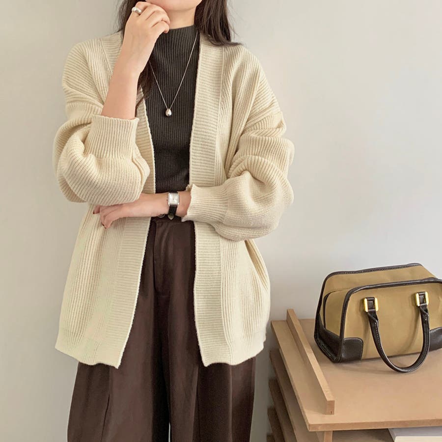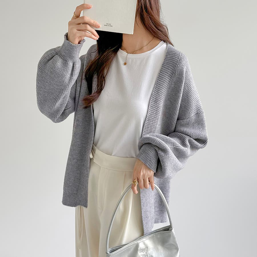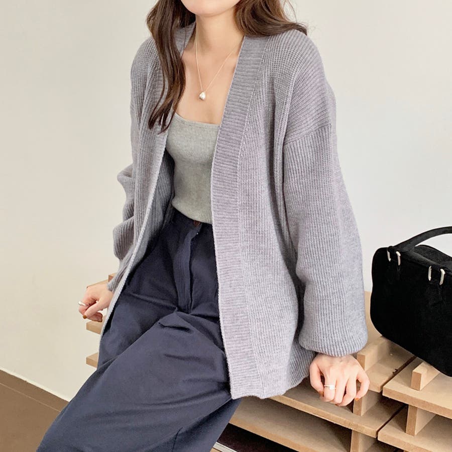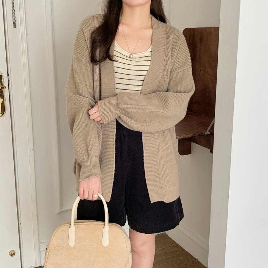 ニットカーディガン ボリューム袖 トッパーカーディガン