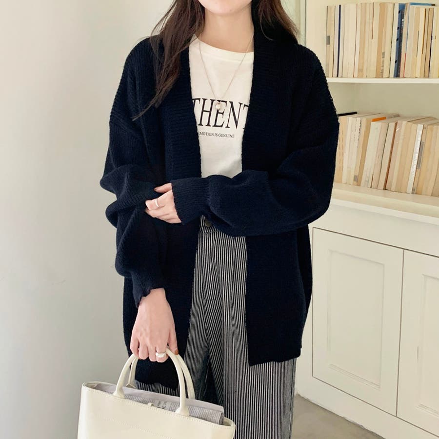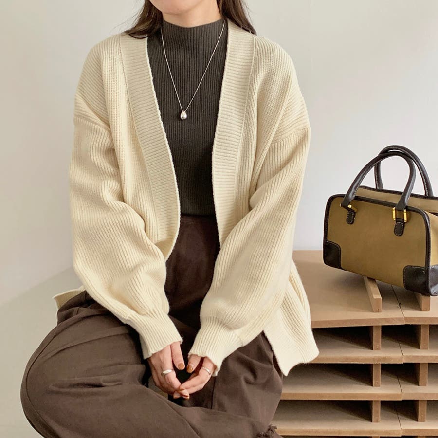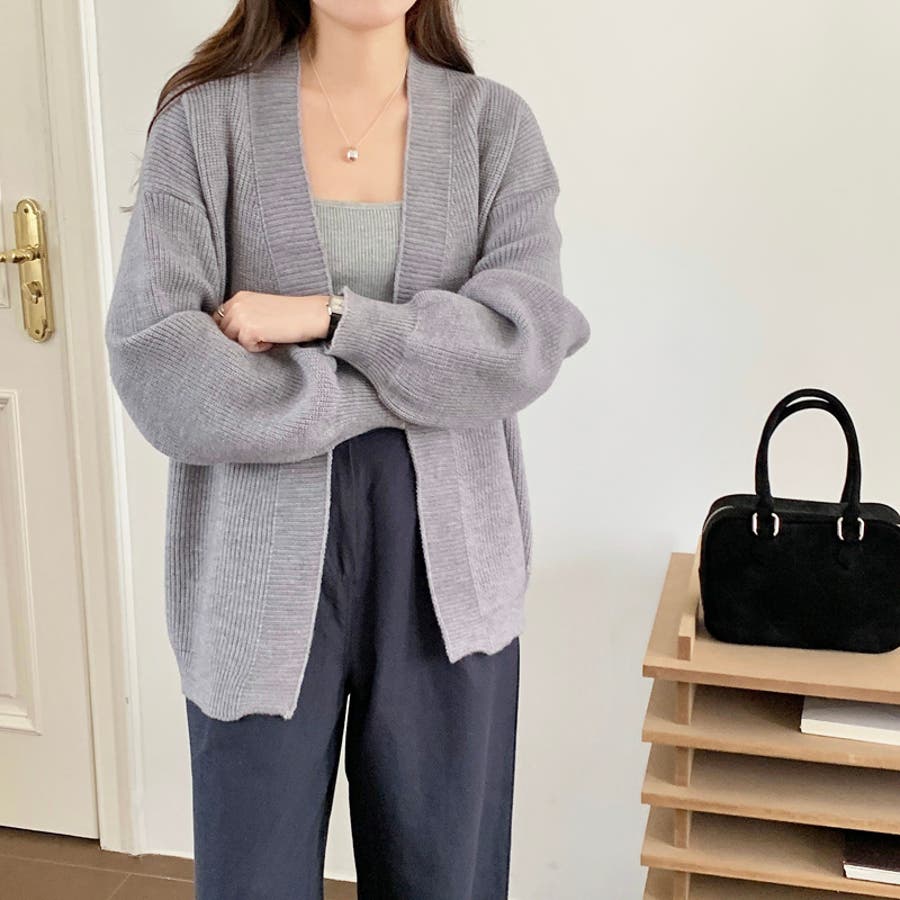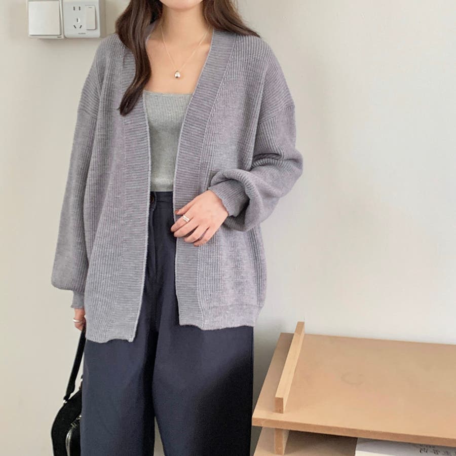 ニットカーディガン ボリューム袖 トッパーカーディガン
