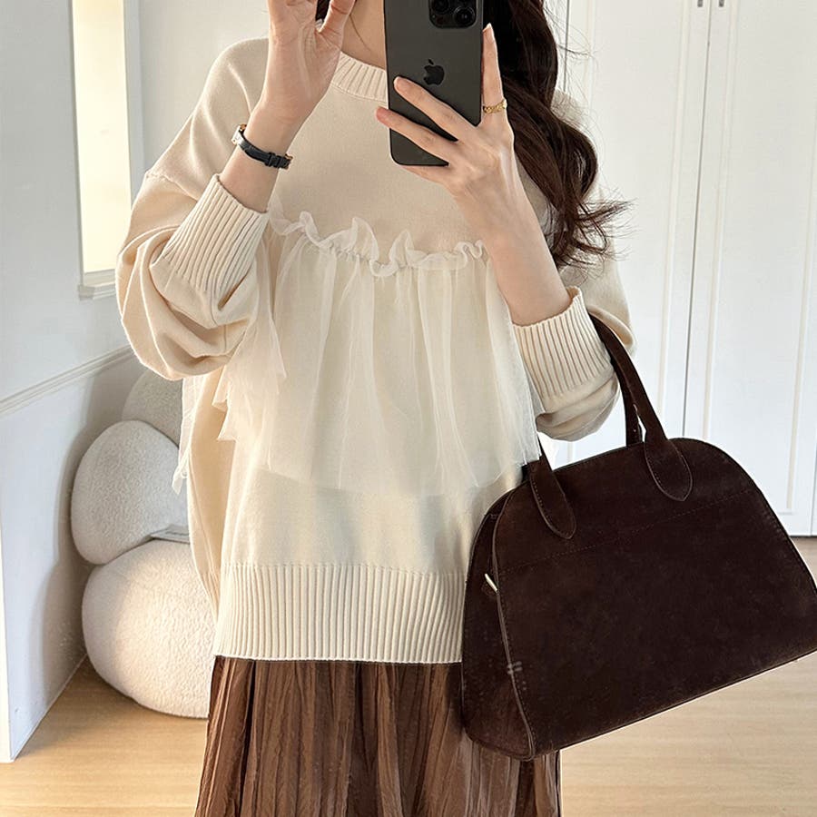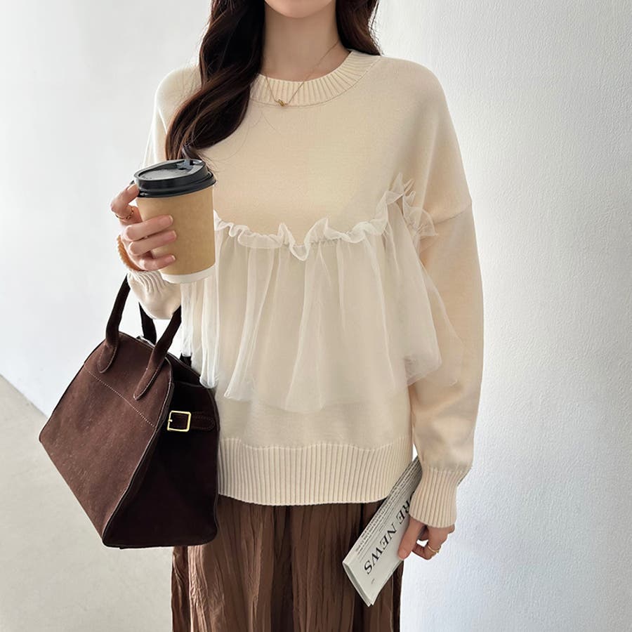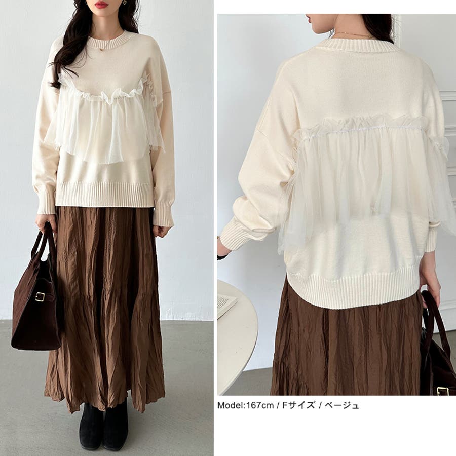 チュール ドッキング ニット トップス ビスチェ風 チュールドッキング レディース セーター 長袖 フリル ビスチェ 切り替え クルーネック プルオーバー もちもち ゆったり ニットトップス チュールトップス 大人可愛い オーガンジー チュールニット チュールビスチェ 体型カバー ドロップショルダー クルーネックニット クルーネックセーター ラウンドネック 丸首 ニットセーター ニットトップスレディース ニットトップス長袖 ニットレディース ドッキングニット 異素材 異素材トップス 切替 透け 透け感 シアー 素材 付き ギャザー シンプル 無地 長袖ニット 長袖トップス 長袖トップスレディース tops 着回し 着まわし 重ね着 重ね着風 レイヤード 伸縮性 伸びる ストレッチ リブ リブ袖 袖リブ アクリル アクリル100% ふんわり 柔らかい もっちり感 やわらかい やわらか ソフトな肌触り ソフト ソフトタッチ チクチクしにくい チクチクしない ちくちくしない ちくちくしにくい ヤク風 ヤク風ニット 1枚で決まる 洗える 手洗い 手洗い可能 洗濯できる 洗濯 洗濯可能 洗濯可 あたたかい 暖かい 暖か あったかい あったか オフィス オフィスカジュアル オフィカジ スカジュアル秋冬 通勤 通学 女子会 おでかけ お出かけ 旅行 服装 カジュアル フェミニン バレエコア 上品 大人 オトナ かわいい 可愛い 大人かわいい きれいめ きれい め キレイめ おしゃれ オシャレ 女性 母 ママ ママコーデ プチプラ 高見え トレンド コーデ ヒット 商品 おすすめ 服 ファッション フリーサイズ フリー サイズ ベージュ グレー 灰色 ブラック 黒 カラー きれい色 秋色 レディース春 レディース秋冬 レディース秋物 レディース秋冬トップス レディース冬 春トップス 秋トップス 冬トップス 長袖レディース 秋トップスレディース 新作 秋冬 春 秋 冬 春服 秋服 冬服 春物 秋物 冬物 春用 秋用 冬用 韓国 韓国ファッション 10代 20代 30代 40代 50代 cocomomo ココモモ