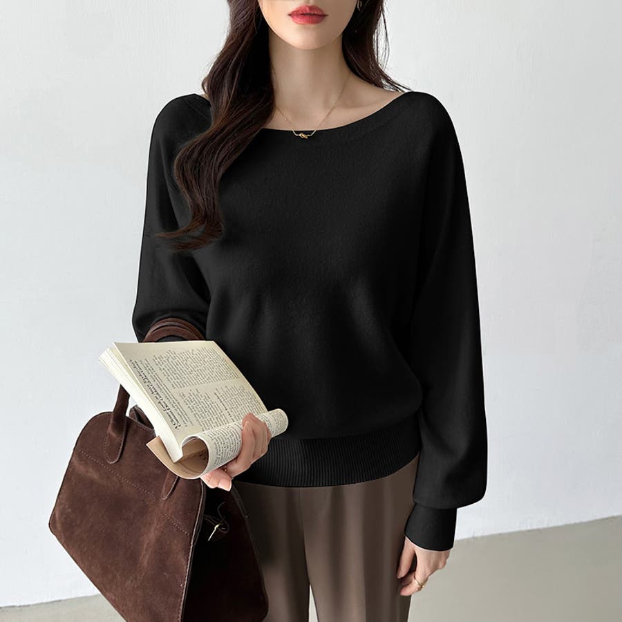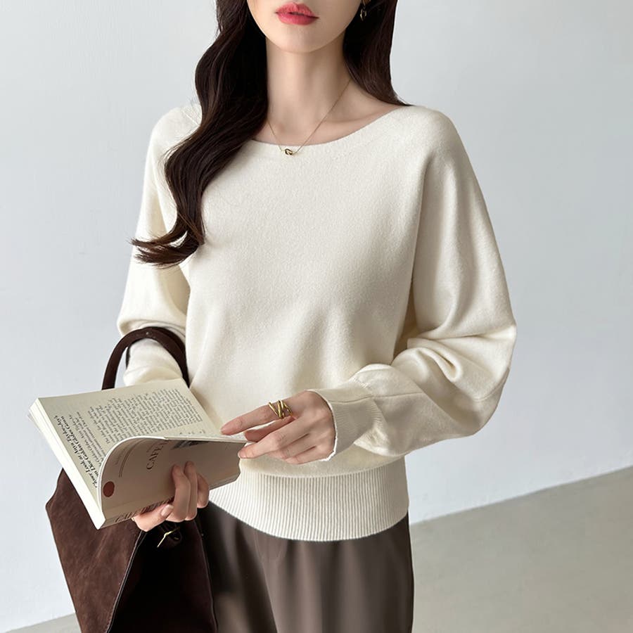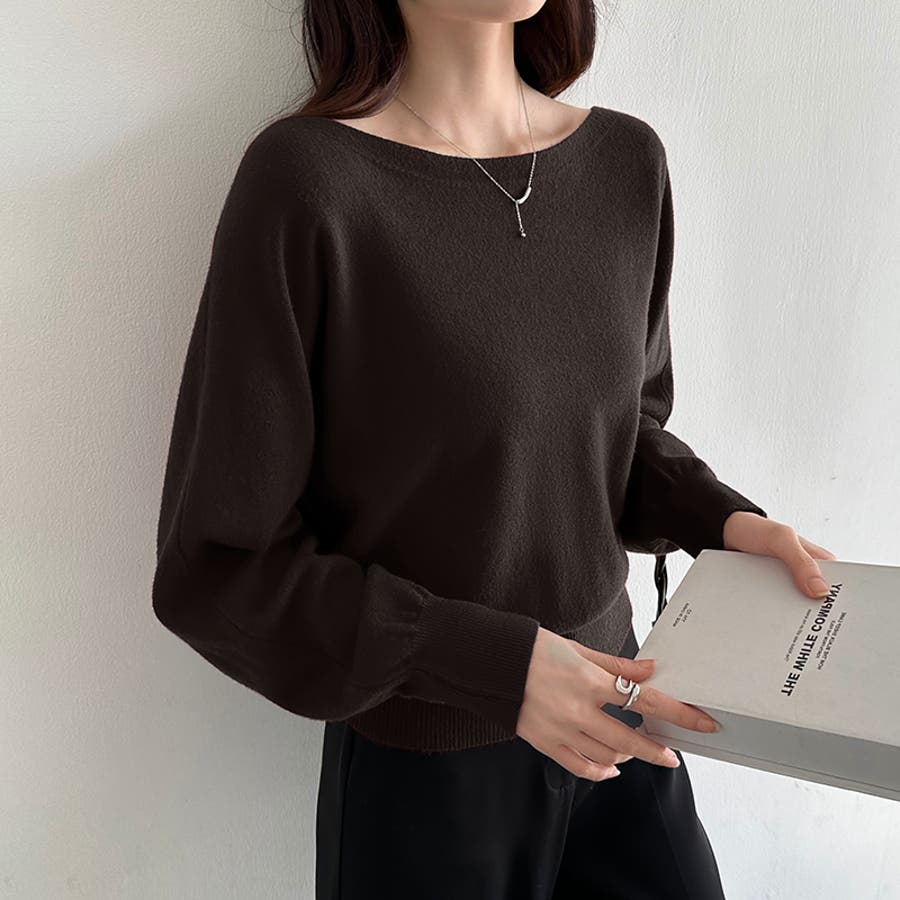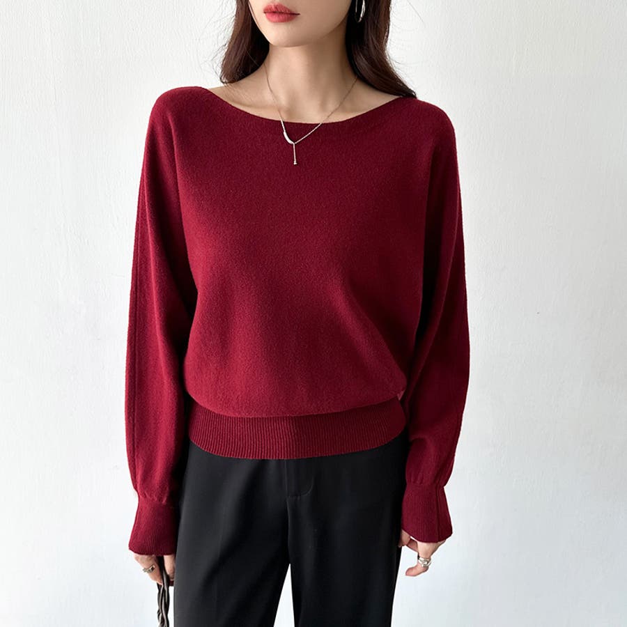 ボートネックニット。
