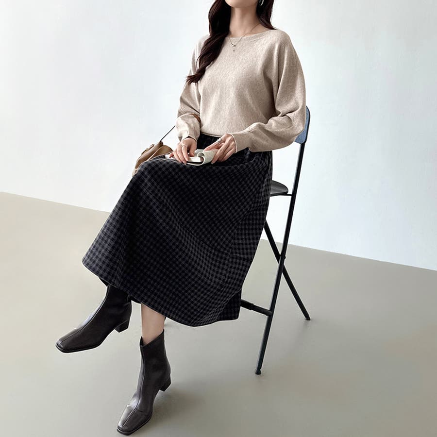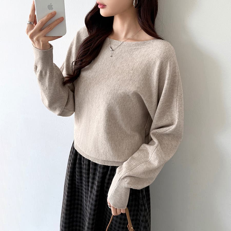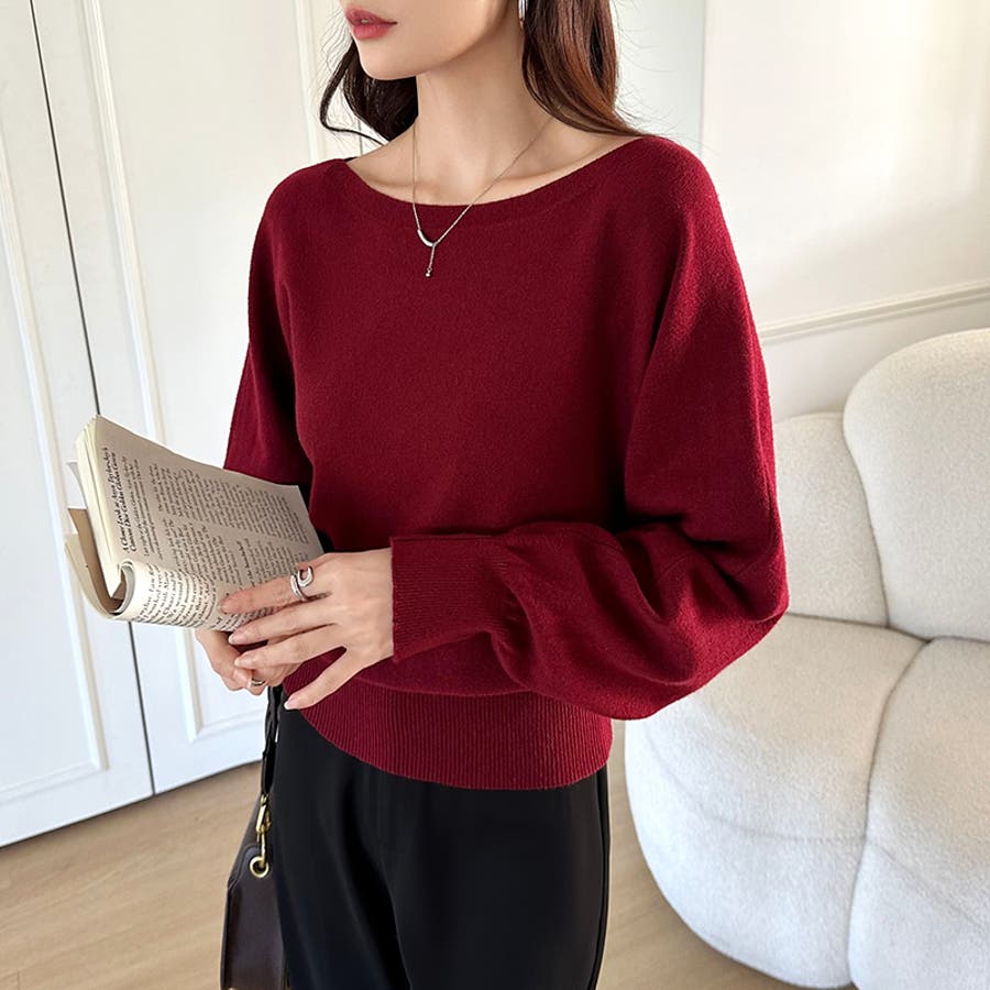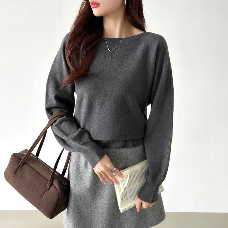 ボートネックニット。