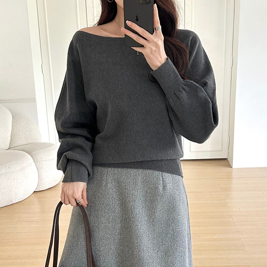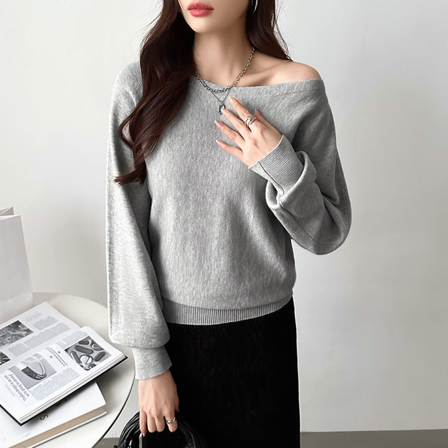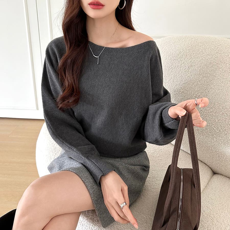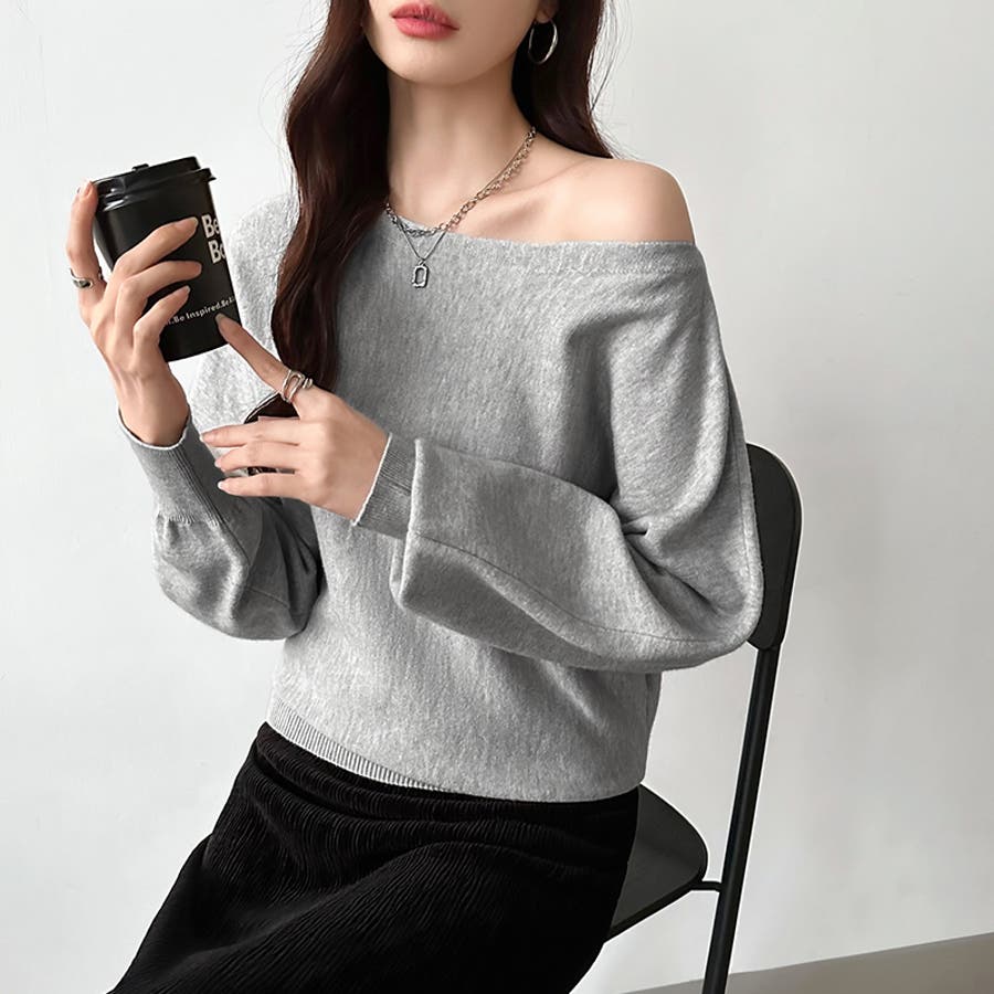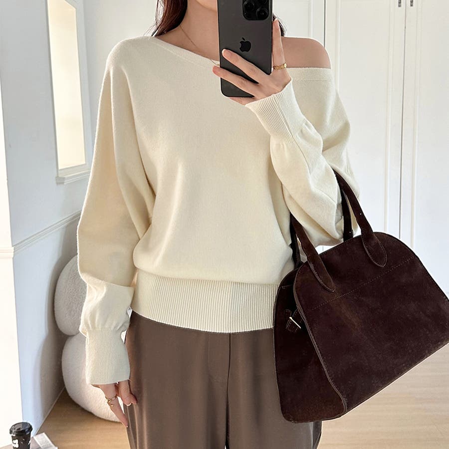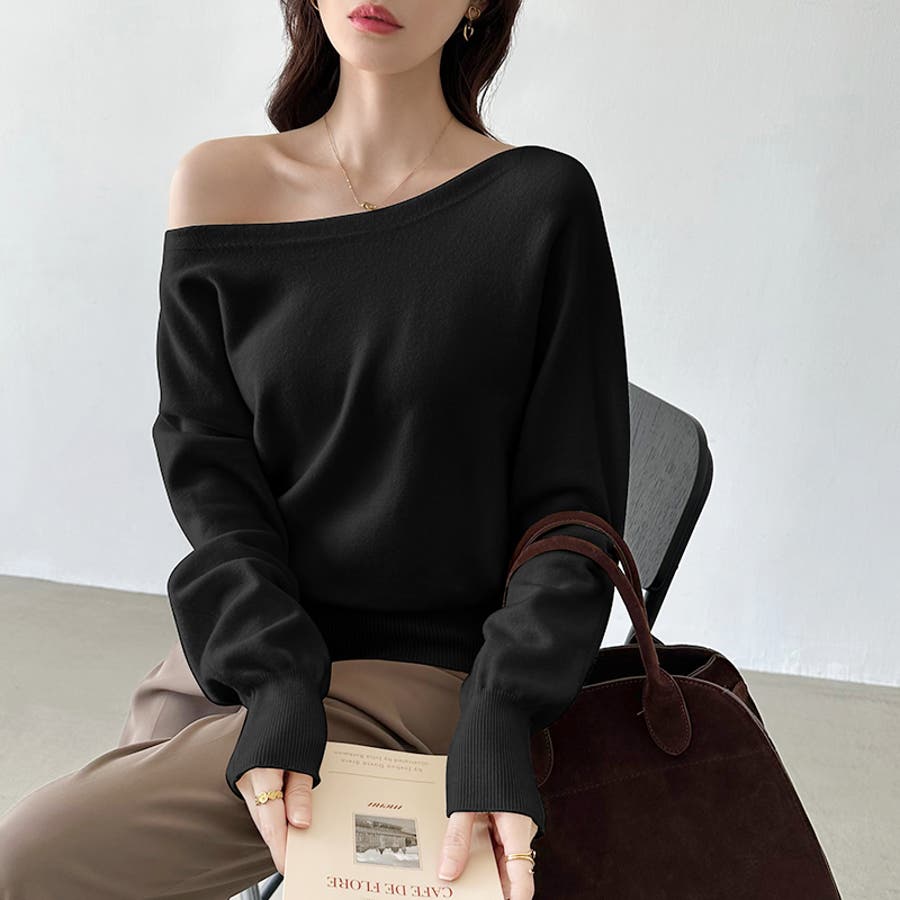 ボートネックニット ワンショルダー オフショルダー