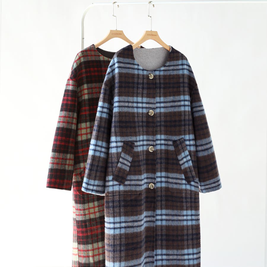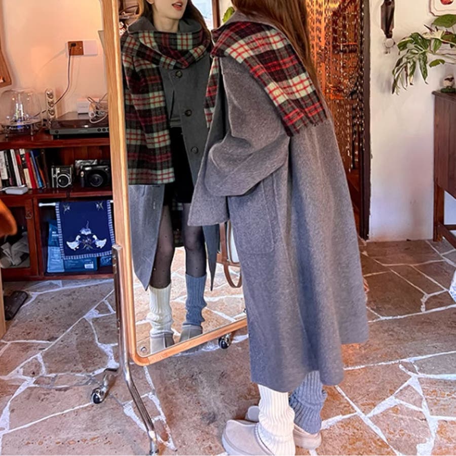 ノーカラーコート リバーシブル チェックコート 2way ロング マフラー付き レディース ロングコート チェック リバーシブルコート アウター シャギーコート チェック柄 暖かい 軽い マフラー セット 羽織り リバーシブルアウター 軽量 シャギー マフラーセット ゆったり 大きめ 体型カバー ロング丈 きれいめ ポケット ポケット付き 両面 シンプル 無地 大きいサイズ 襟なし ボタン 羽織 羽織もの 上着 暖か 防寒 前開き お出かけ おでかけ 旅行 通勤 通学 女子会 食事会 ol OL デート オフィス オフィスカジュアル オフィスカジュアル秋冬 オフィカジ ガーリー カジュアル きれいめ きれい め キレイめ 大人 かわいい 可愛い 大人可愛い オトナ オトナ女子 おしゃれ オシャレ 母 ママ ママコーデ 女性 女子 高見え プチプラ 高見え トレンド ヒット 商品 おすすめ 服 ファッション 人気 女性 フリー サイズ フリーサイズ ブルー 青 レッド 赤 グレー 灰色 ダークグレー カラー 新作 秋コート 冬コート ノーカラーコートレディース チェックコートレディース ロングコートレディース 秋色 秋物 冬物 秋用 冬用 秋冬 秋 冬 秋服 冬服 韓国 韓国ファッション 10代 20代 30代 40代 50代 60代 cocomomo ココモモ