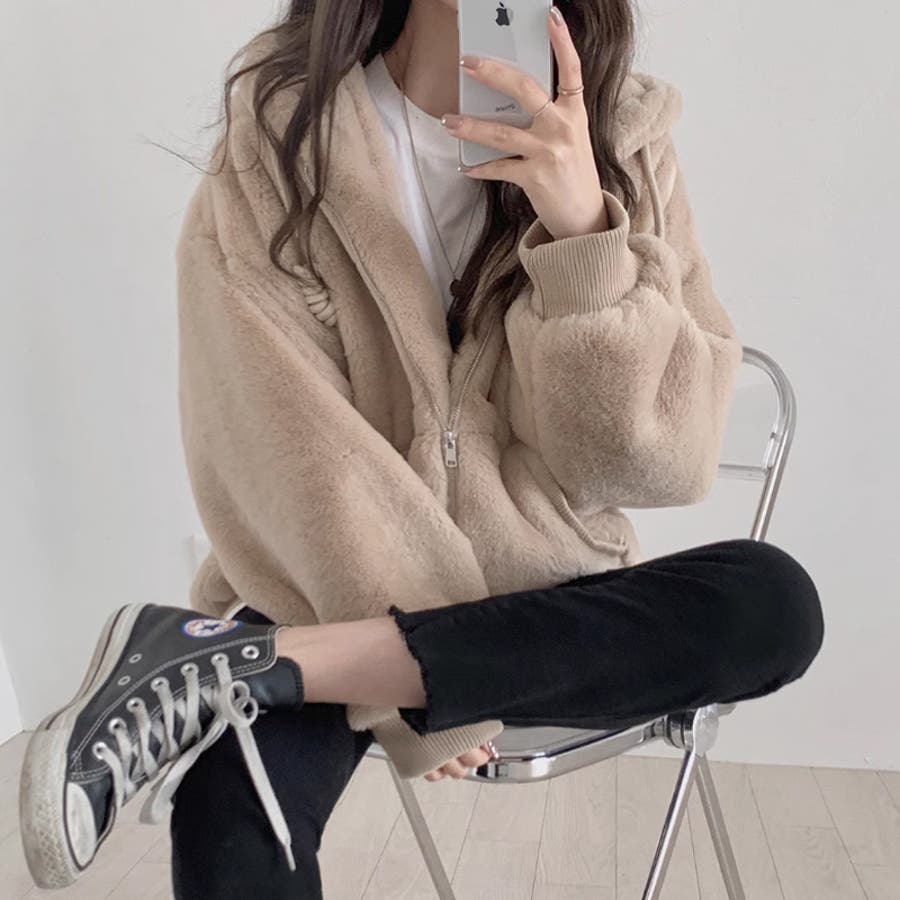 もこもこ ファーブルゾン フード付きパーカー