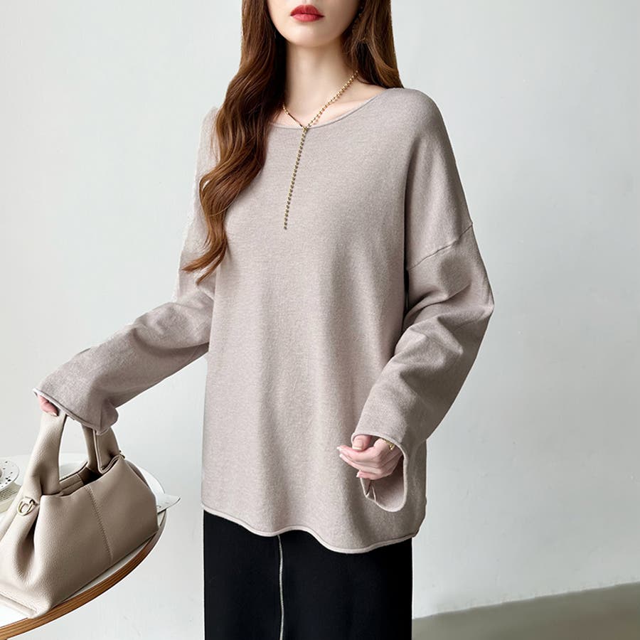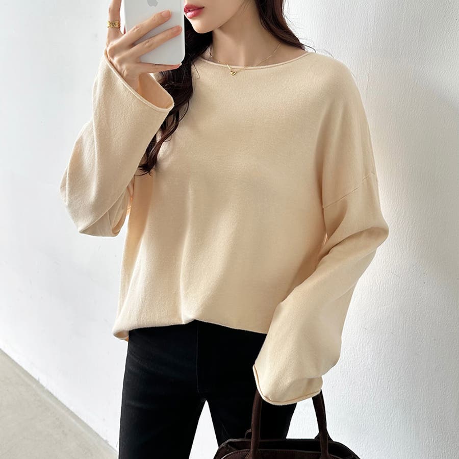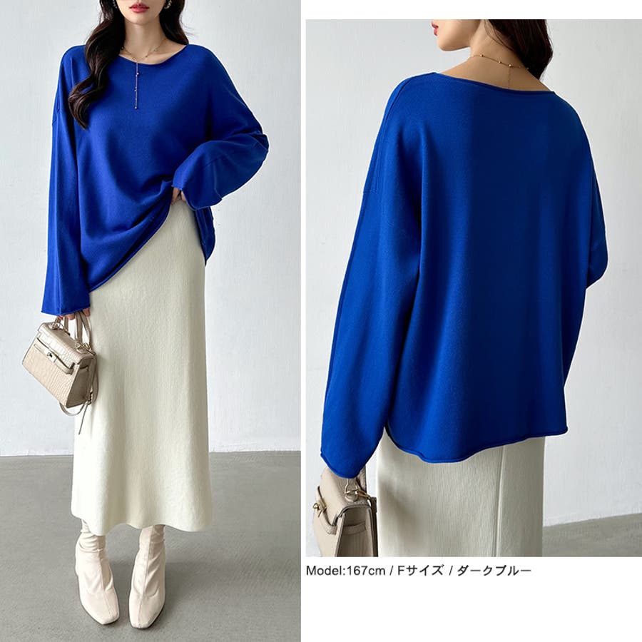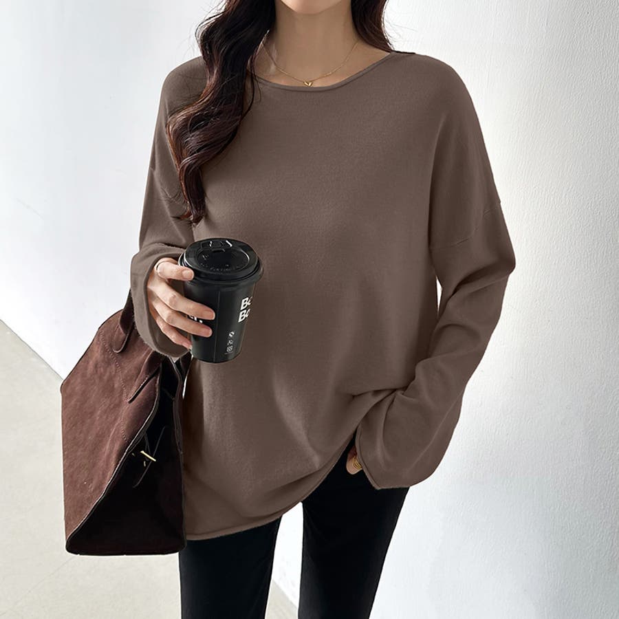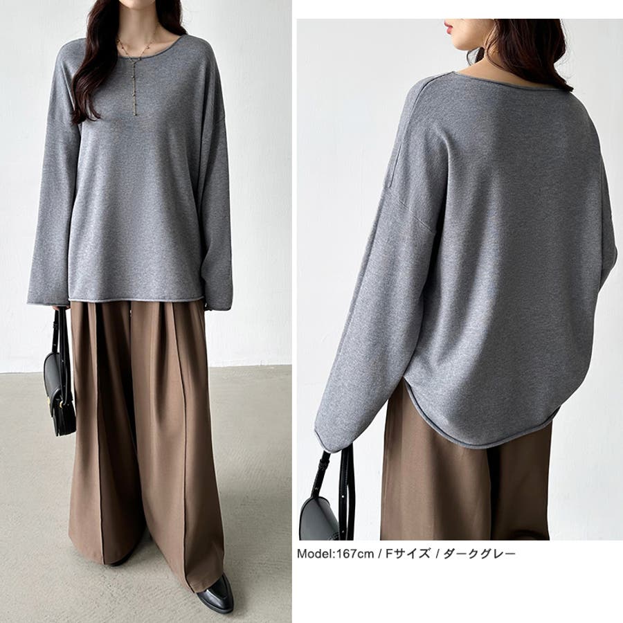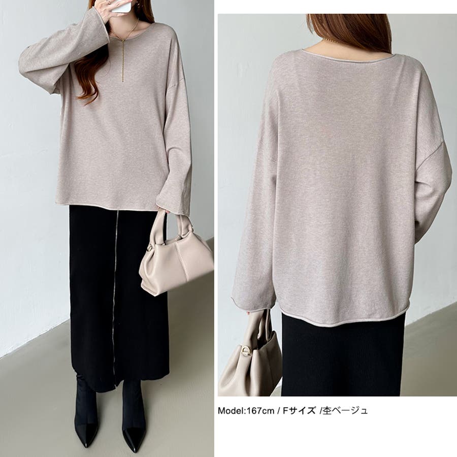 もっちり柔らかルーズニット ボートネックニット オフィスカジュアル