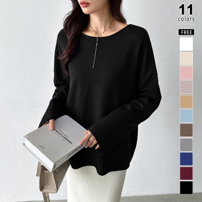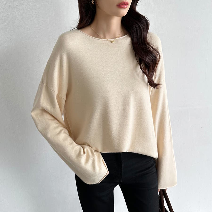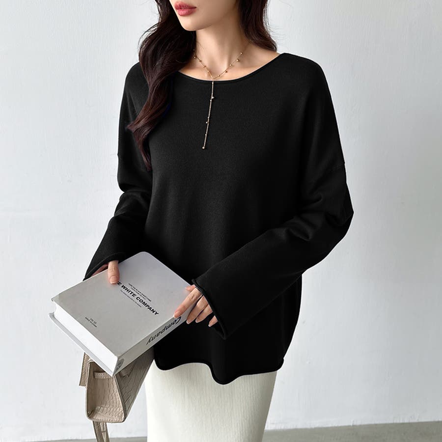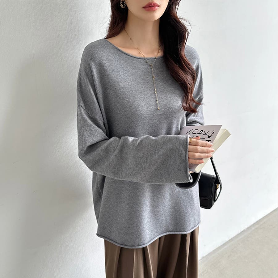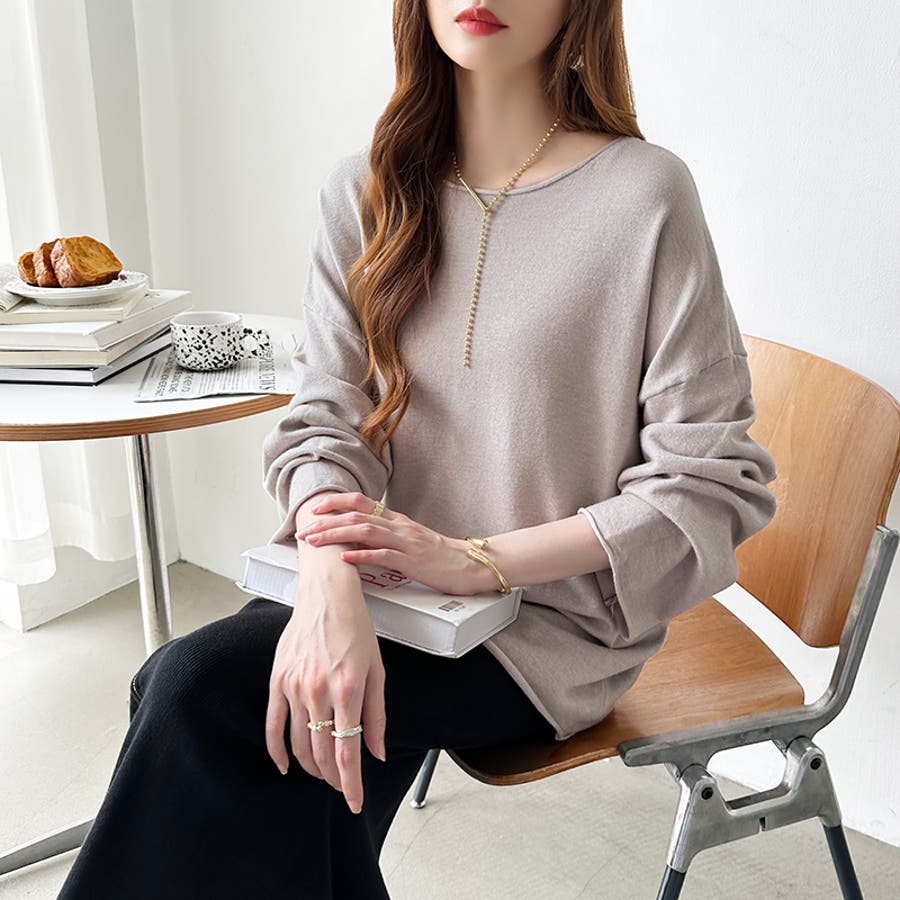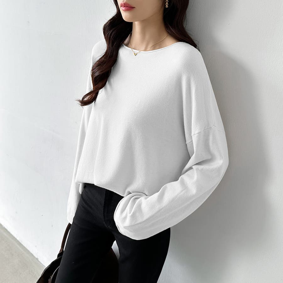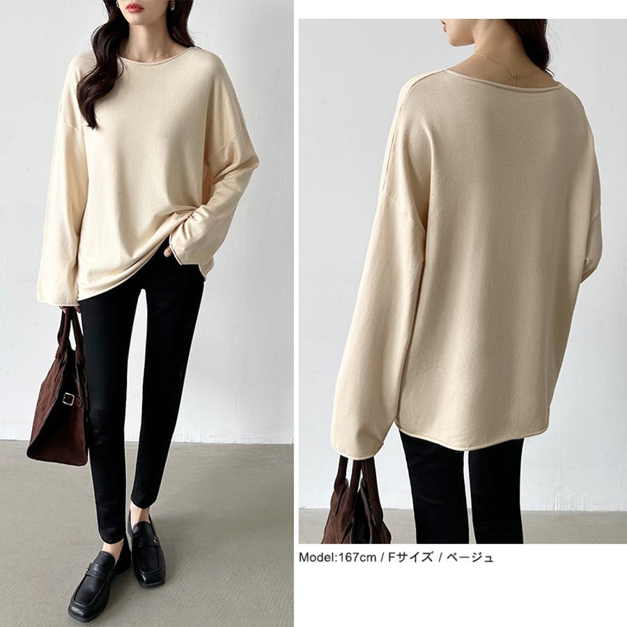もっちり柔らかルーズニット ボートネックニット オフィスカジュアル