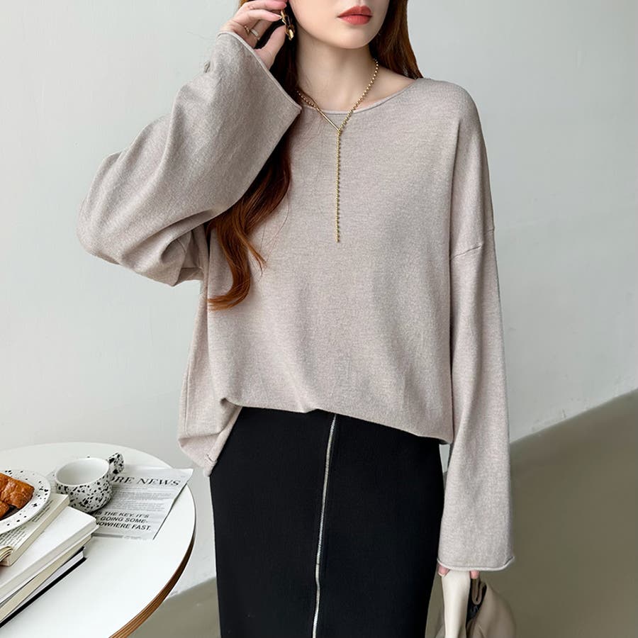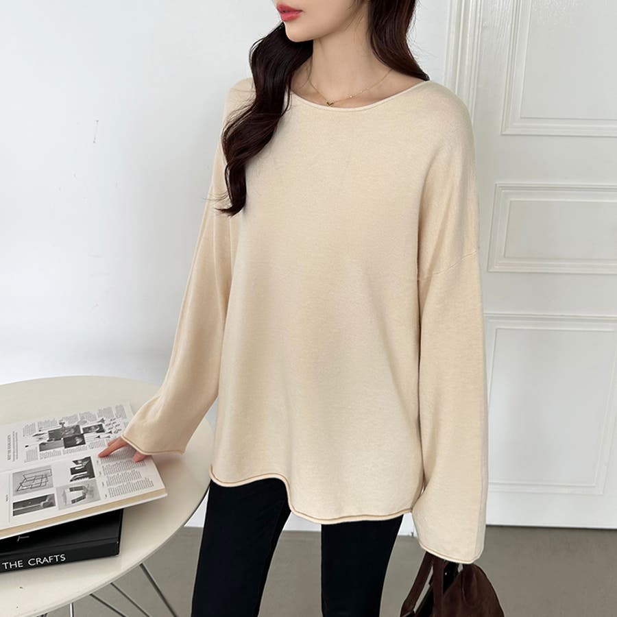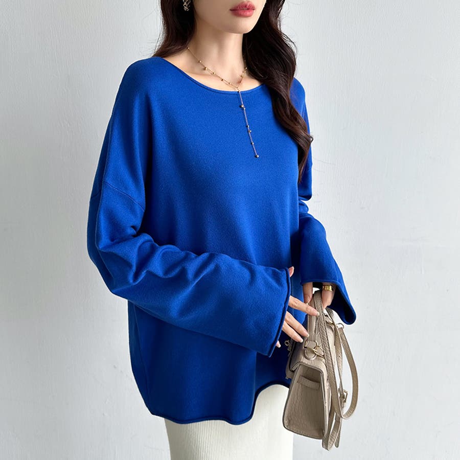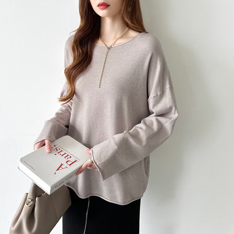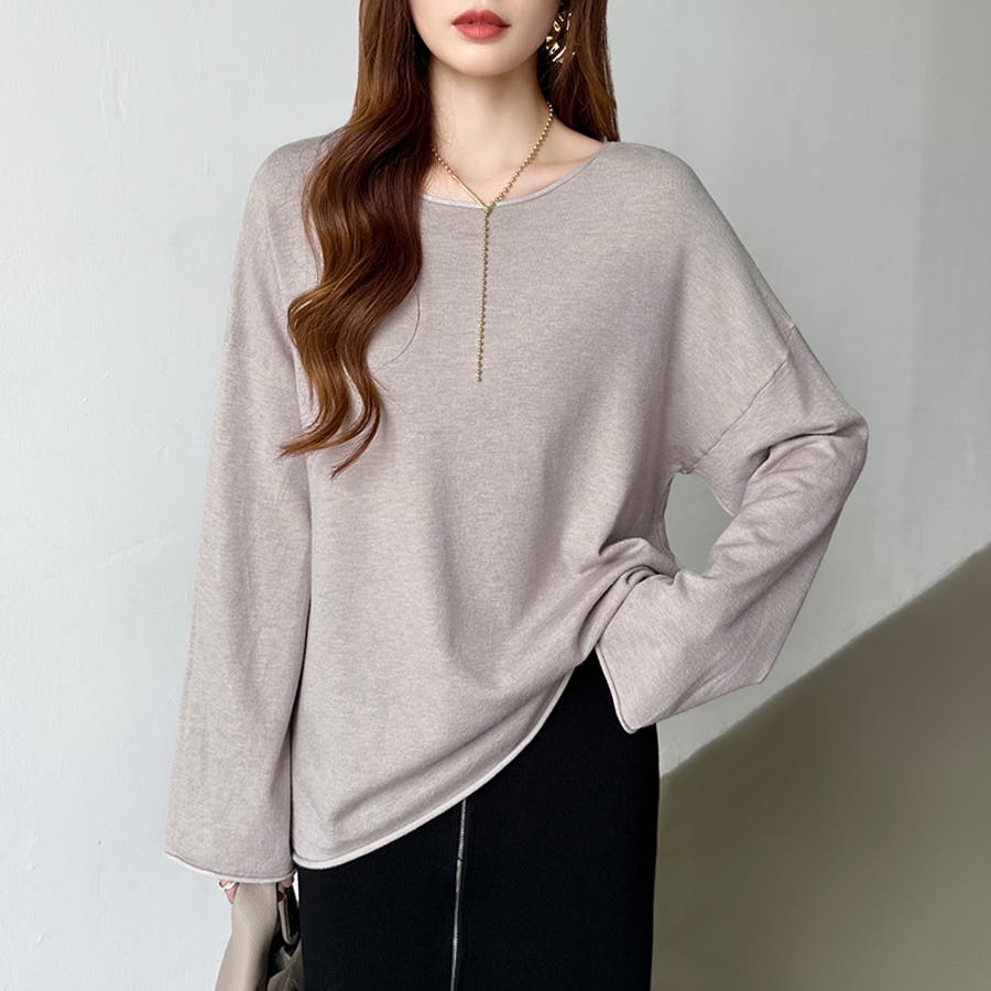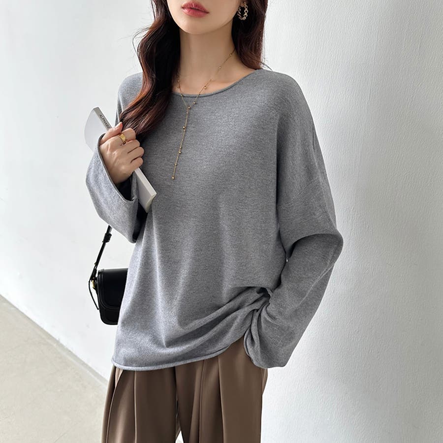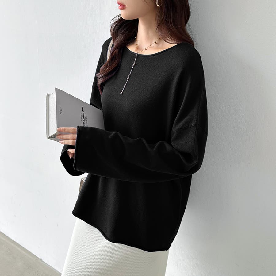 もっちり柔らかルーズニット ボートネックニット オフィスカジュアル