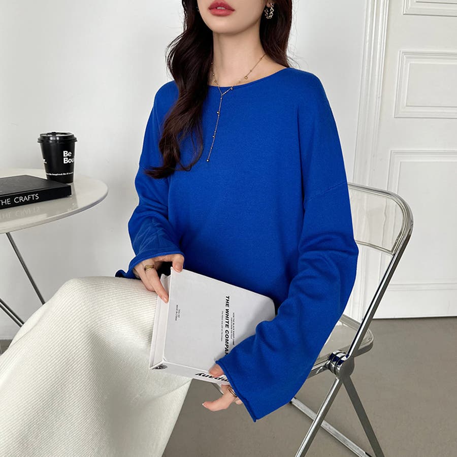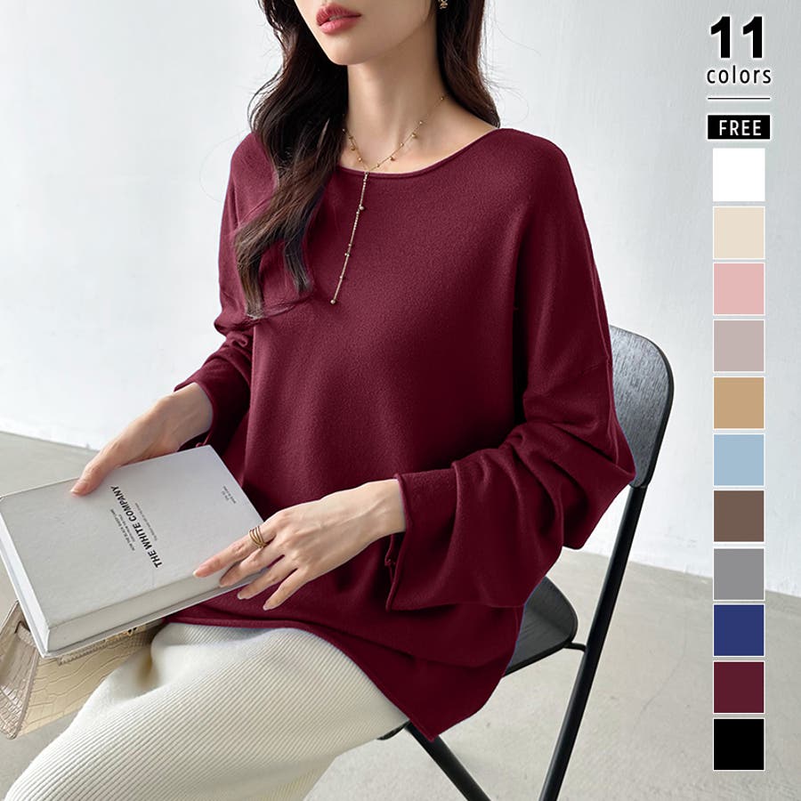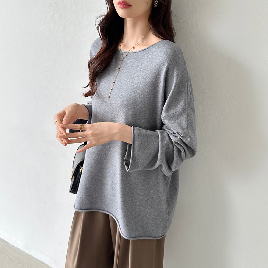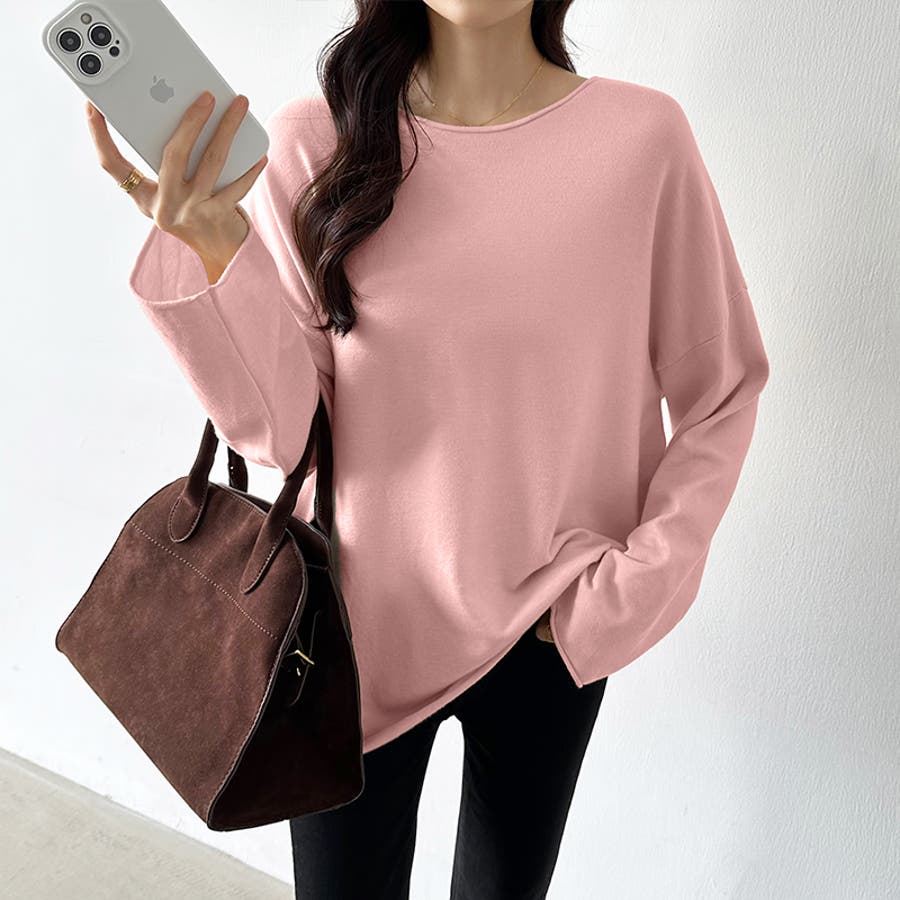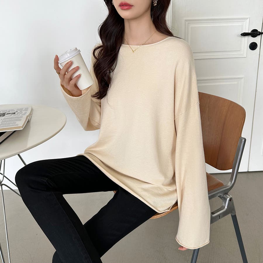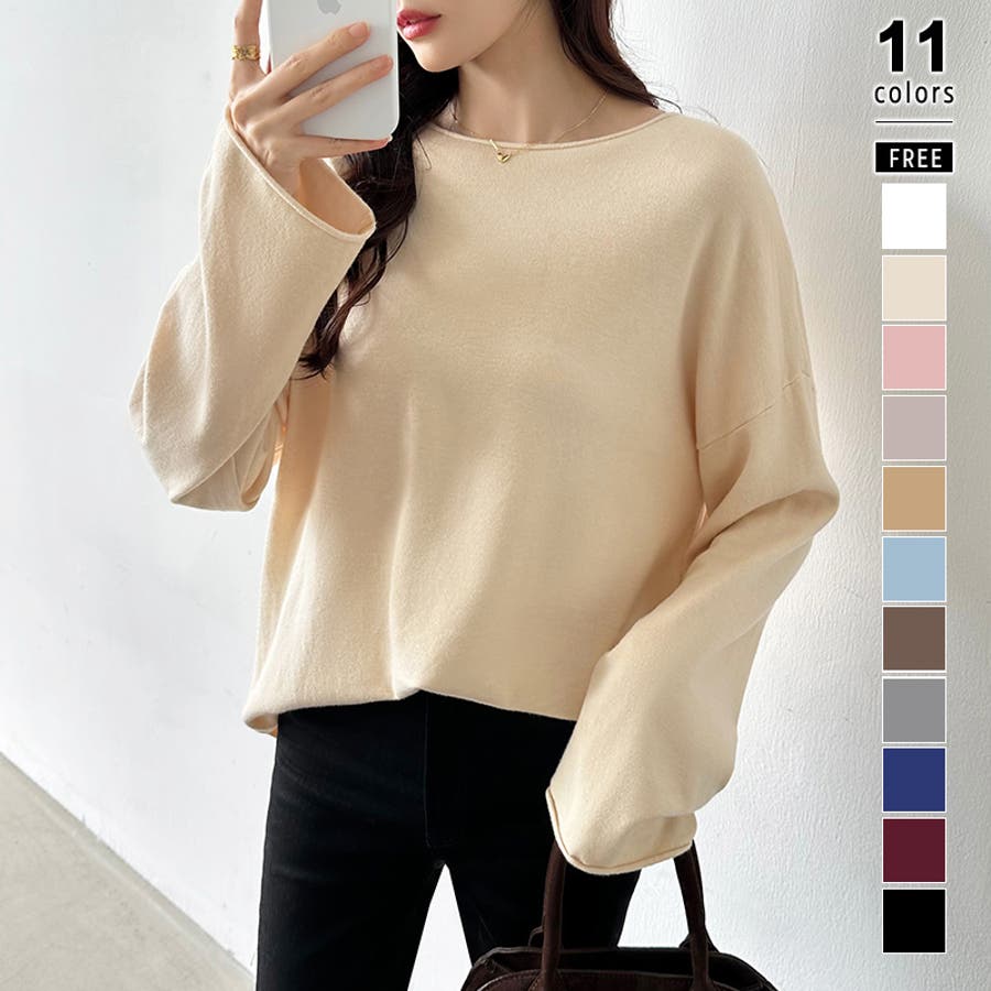 もっちり柔らかルーズニット ボートネックニット オフィスカジュアル