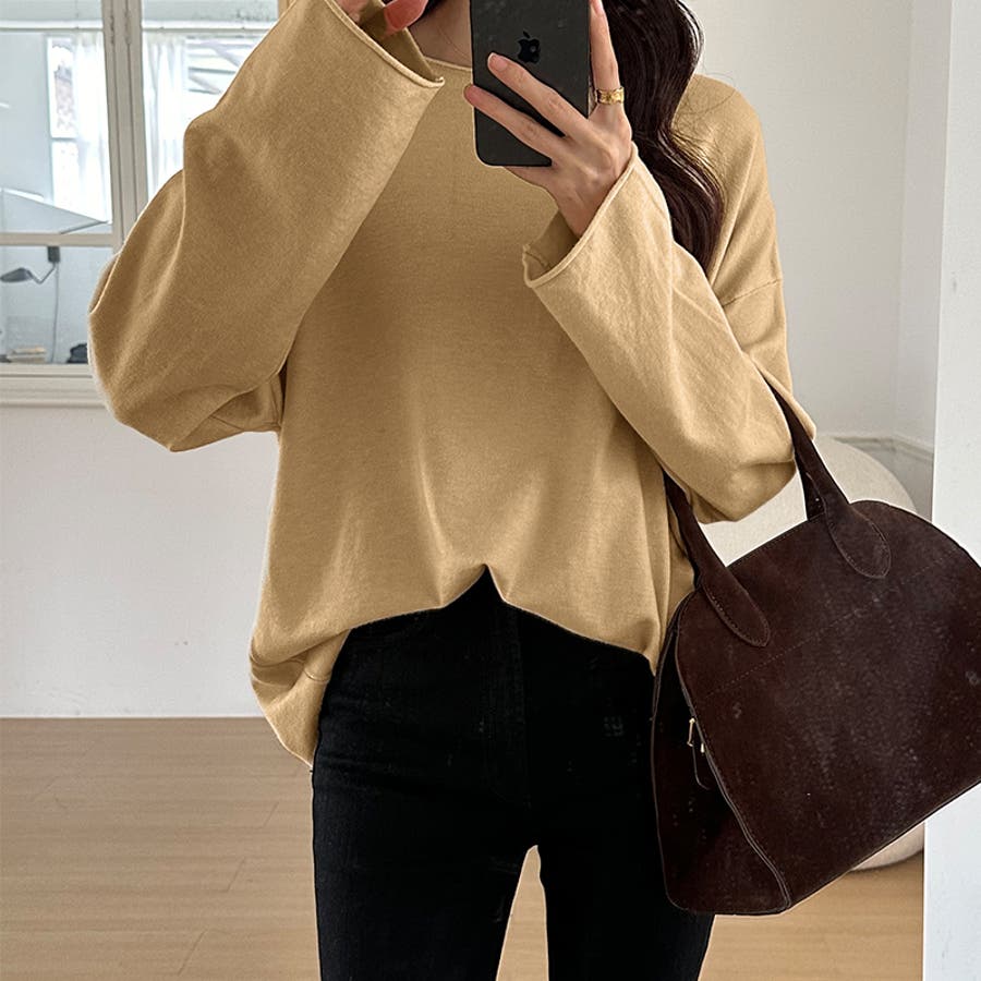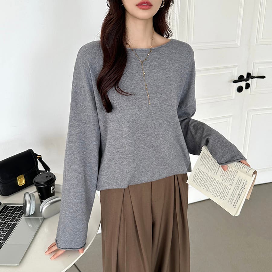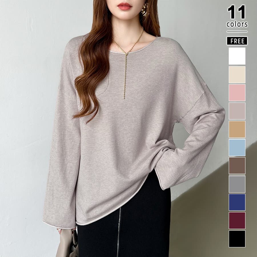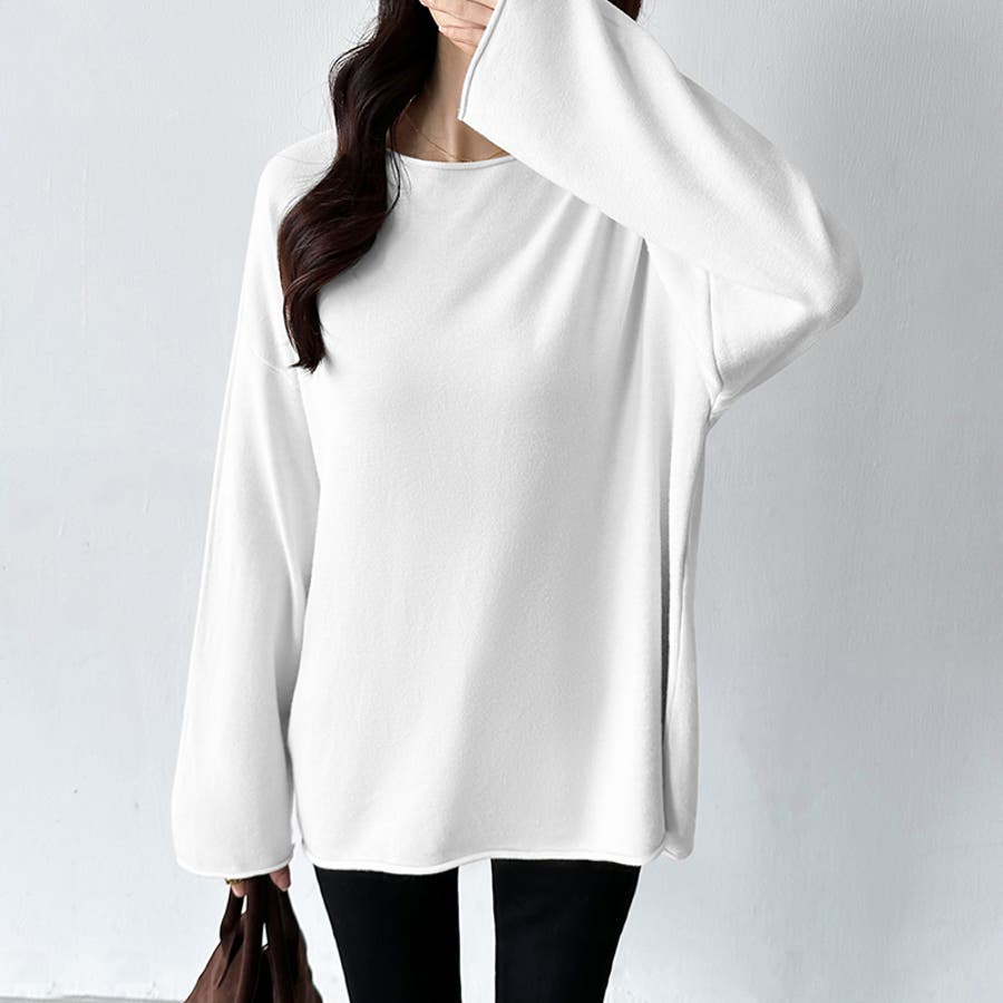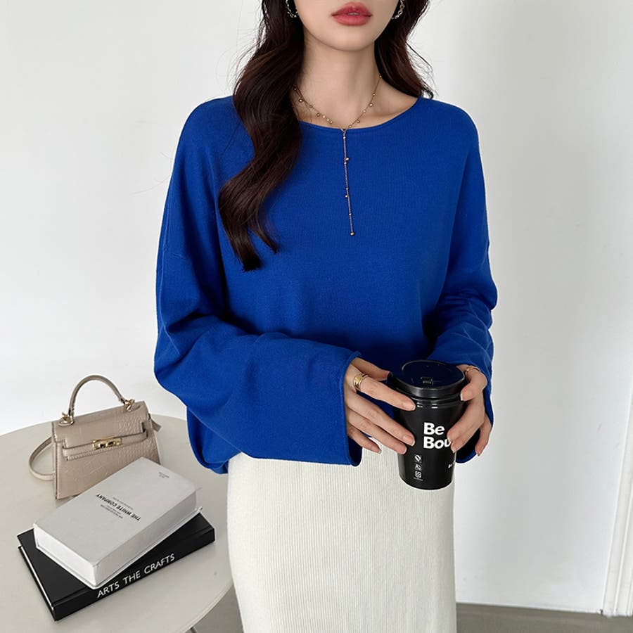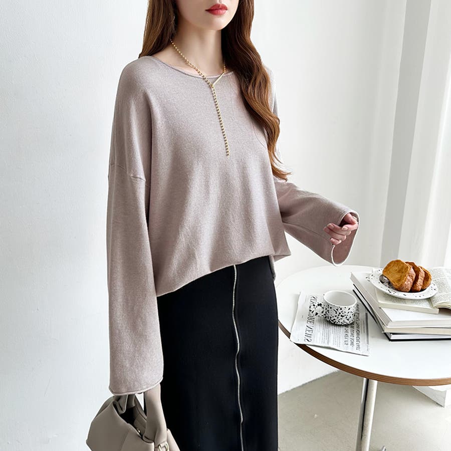 もっちり柔らかルーズニット ボートネックニット オフィスカジュアル
