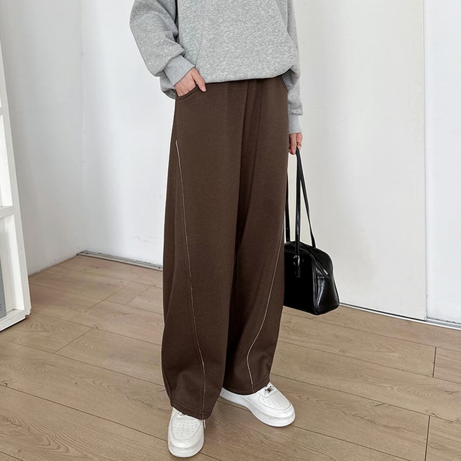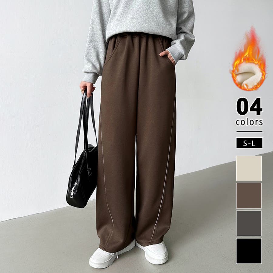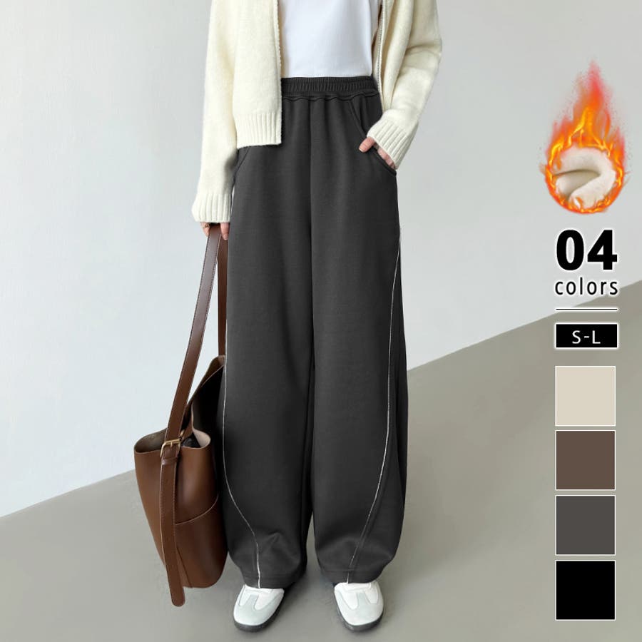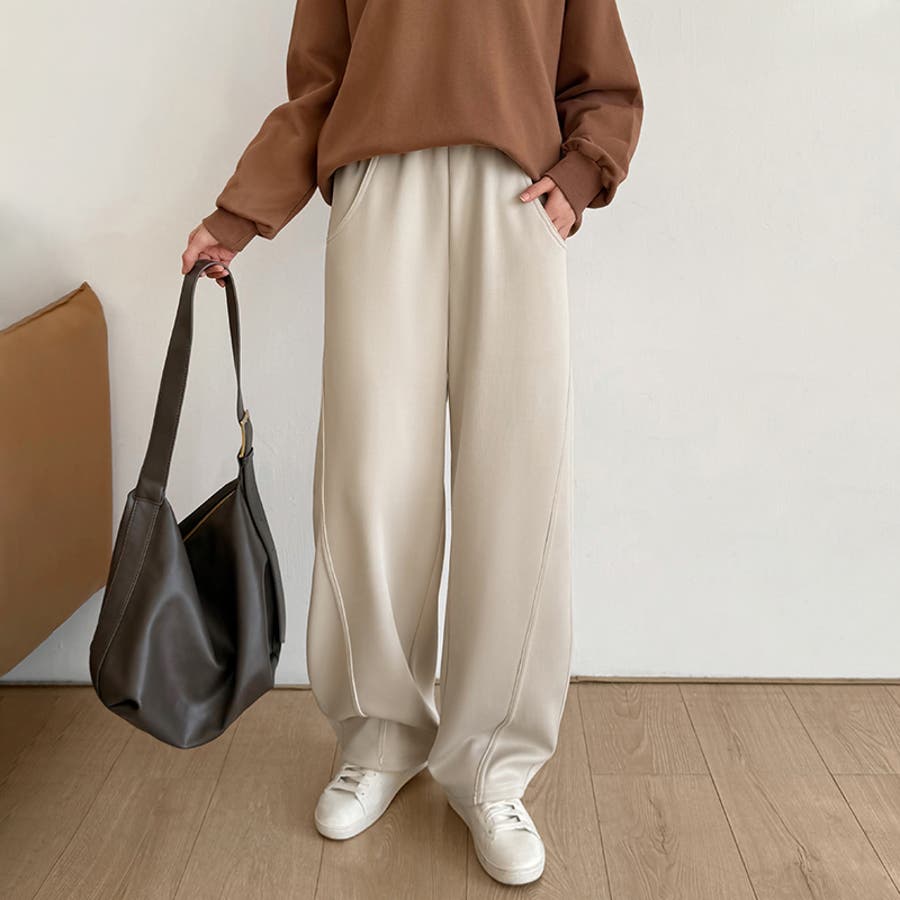 裏起毛 カーブパンツ ゆったりワイドパンツ