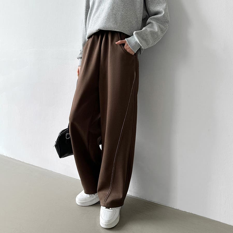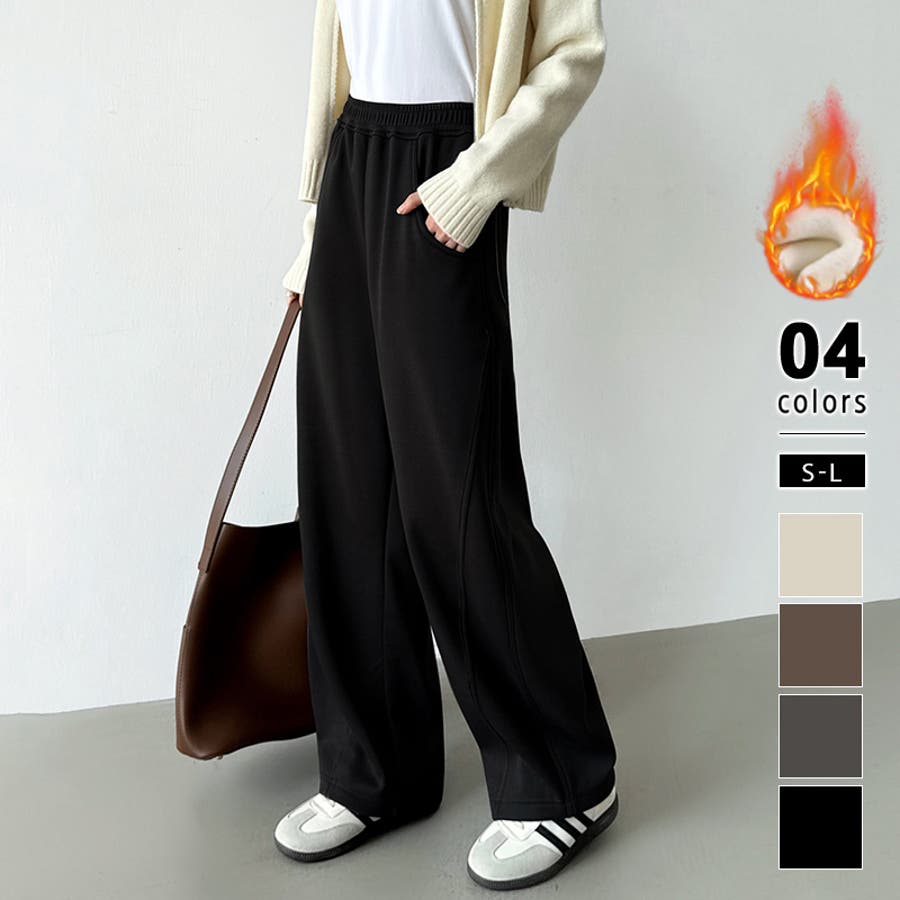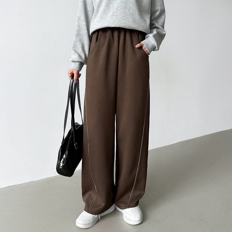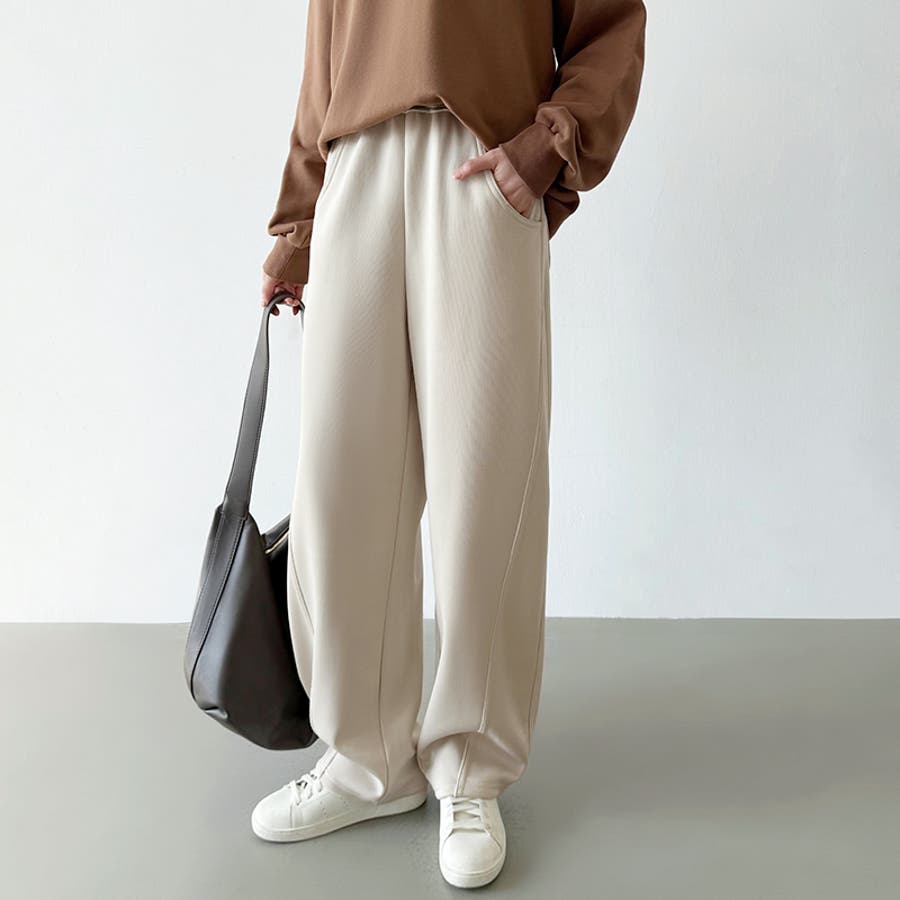裏起毛 カーブパンツ ゆったりワイドパンツ