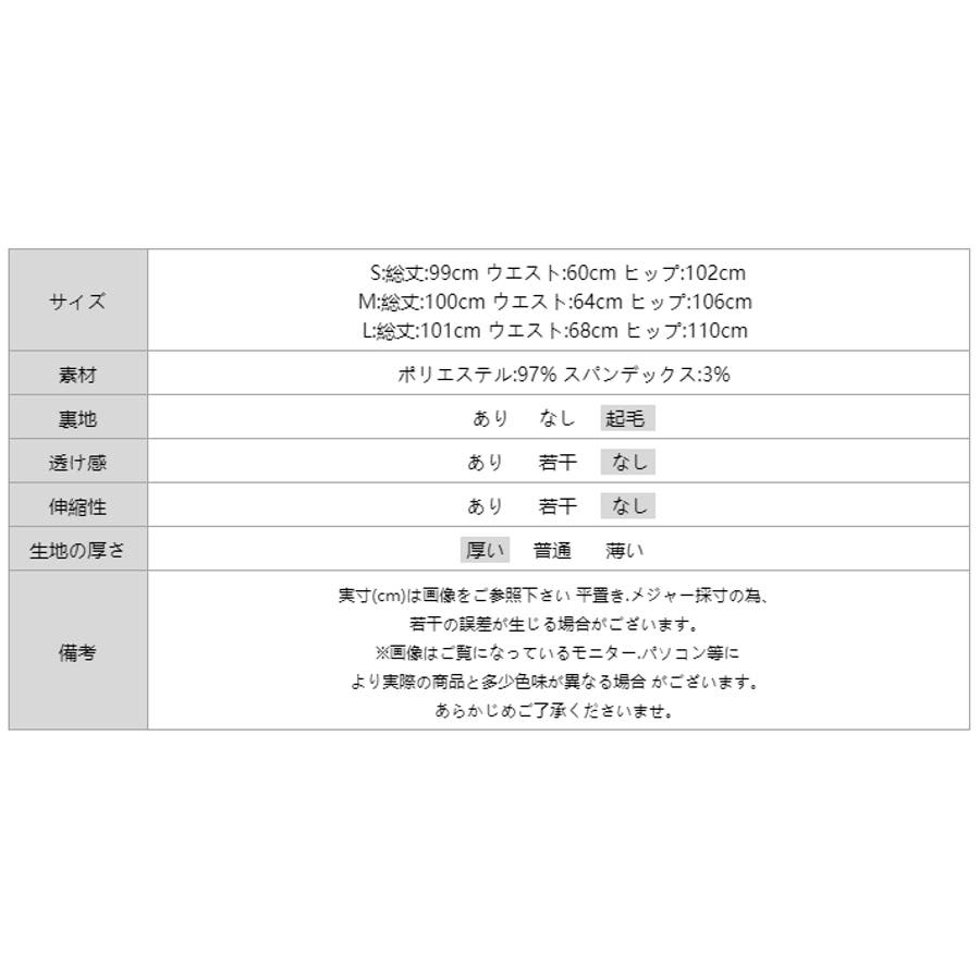 サイズ | S: 総丈 99cm ウエスト 60cm ヒップ 102cm M: 総丈 100cm ウエスト 64cm ヒップ 106cm L: 総丈 101cm ウエスト 68cm ヒップ 110cm |