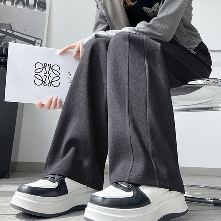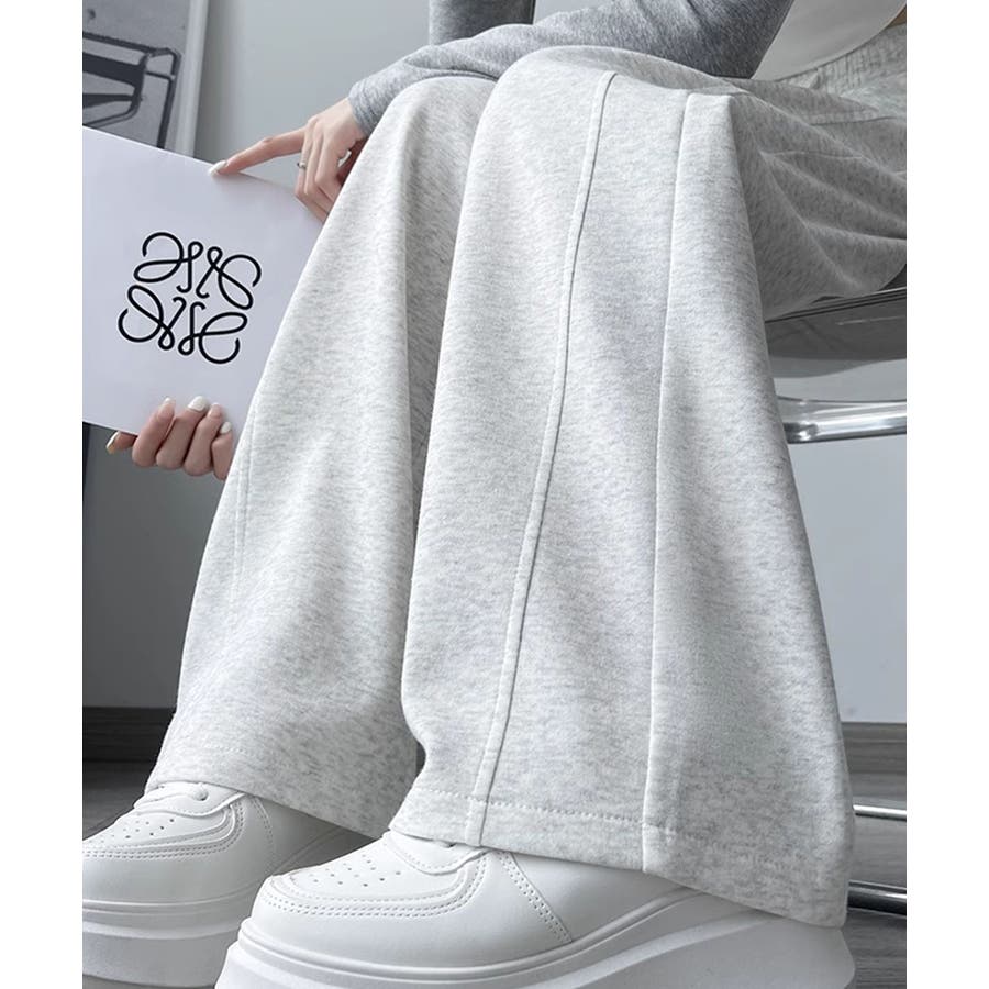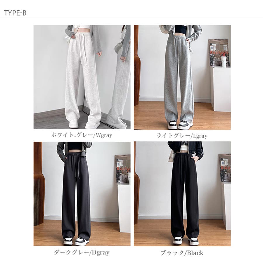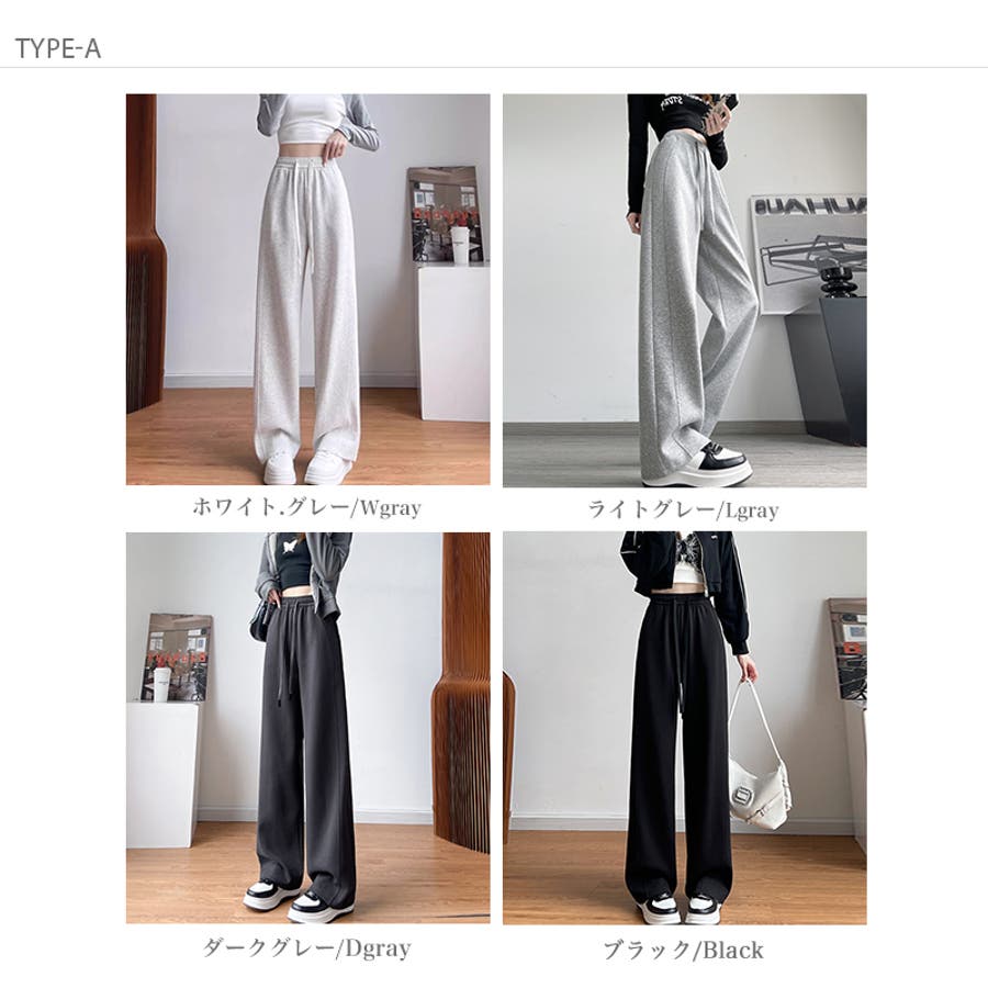 【Aライトグレー】裏起毛 ワイドパンツ スウェット
