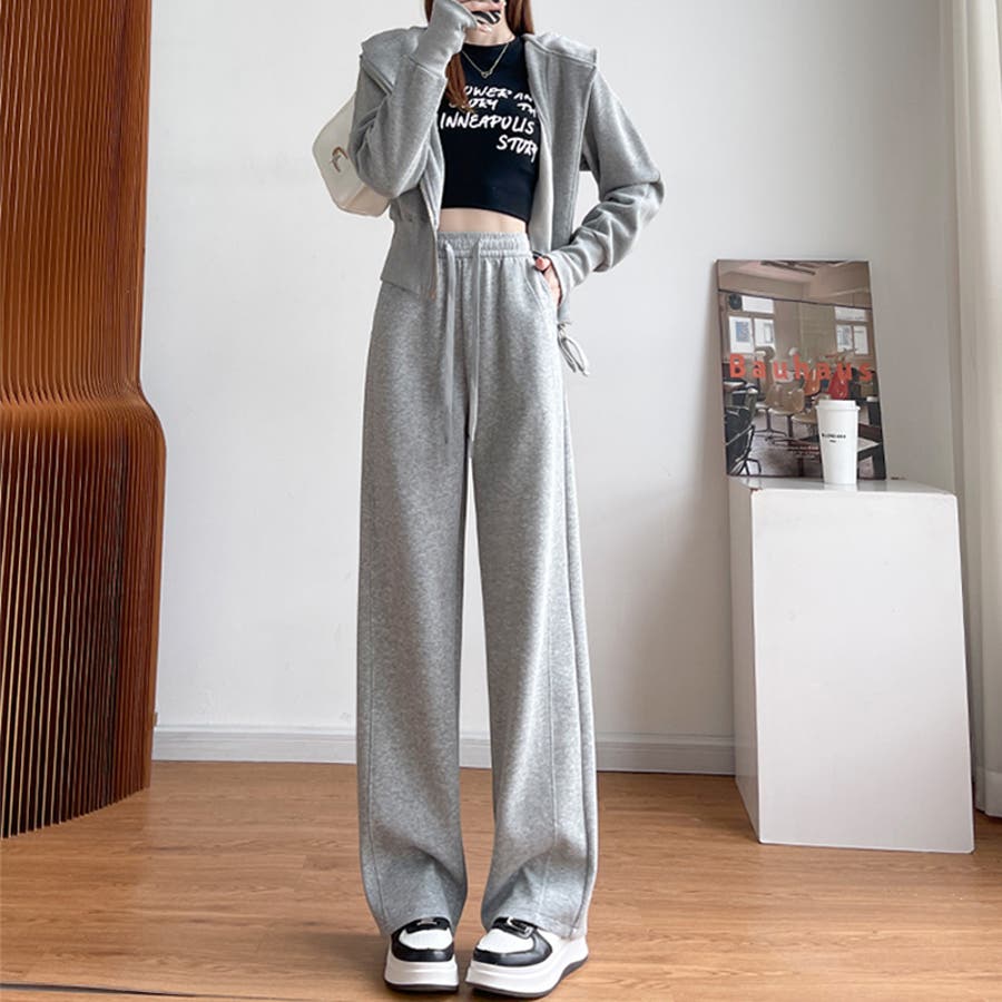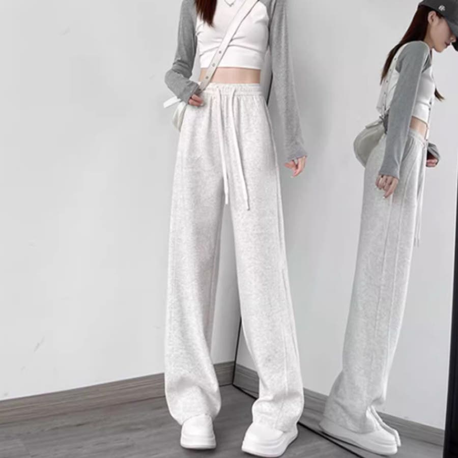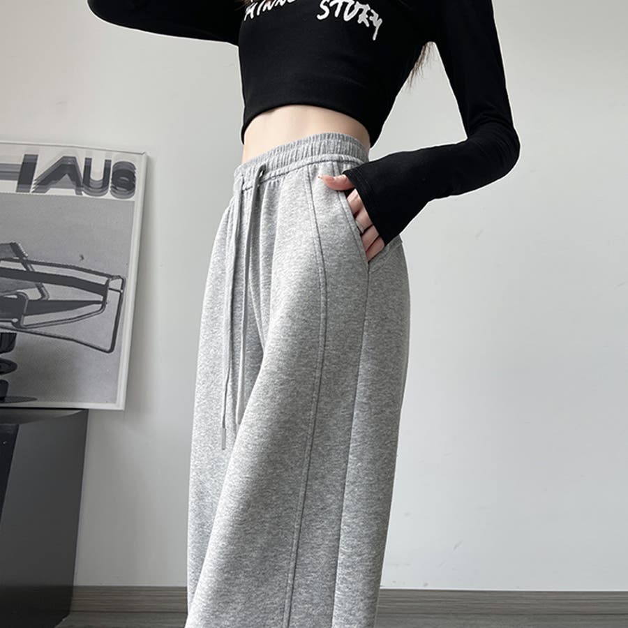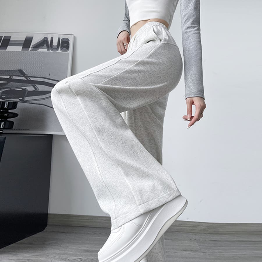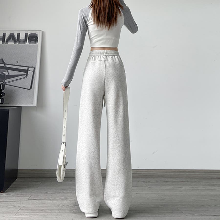 【Aライトグレー】裏起毛 ワイドパンツ スウェット