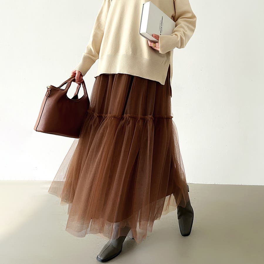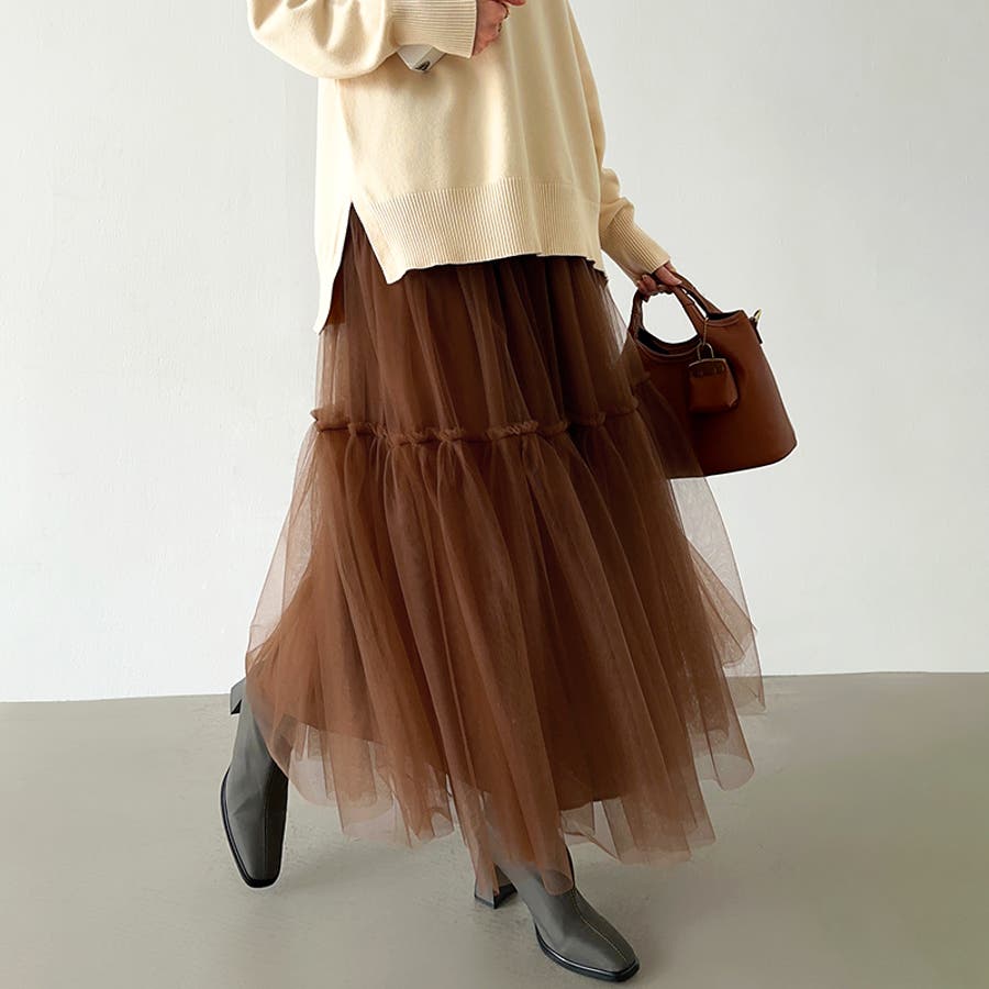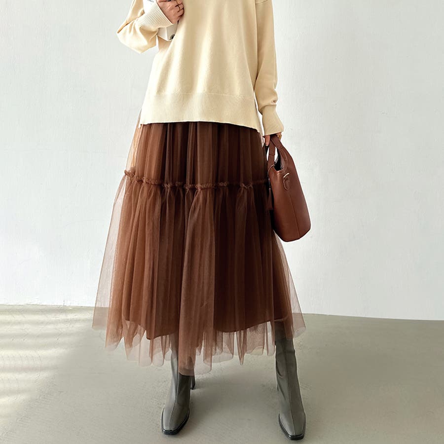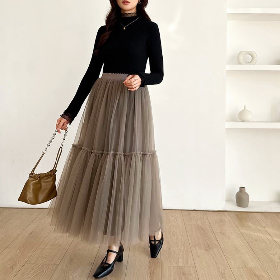 チュールスカート ティアード スカート ロング ボリューム チュール レディース マキシ ロングスカート 大人 ティアードスカート フリル シアー 透け感 マキシスカート マキシ丈 マキシ丈スカート ギャザー レース ロング丈 ボトムス フレアスカート ウエストゴム 裏地 フリルスカート aライン ハイウエスト ティアードチュールスカート フレア チュールレース aラインスカート 膝下 生地 膝下 ひざ下 裏地付き 付き 裏地あり 膝下スカート Aライン 着回し ウエスト ゴム 体型カバー 体型 カバー ゆったり 楽ちん 楽 洗える 薄手 薄い ポリエステル ポリエステル100% 通学 おでかけ お出かけ 旅行 ダンス 衣装 発表会 華やか パーティー セレモニー オケージョン オフィス オフィスカジュアル オフィカジ エレガント ガーリー フェミニン レトロ バレエコア カジュアル 上品 かわいい 可愛い 大人可愛い きれいめ きれい め 綺麗め おしゃれ オシャレ トレンド ヒット 商品 おすすめ 服 ファッション コーデ プチプラ 高見え ママ ママコーデ 母 女性 フリー サイズ フリーサイズ ブラウン 茶色 ピンク ダークブラウン ライトグレー 灰色 ブラック 黒 カラー 新作 春夏 春秋 秋冬 春物 夏物 秋物 春 夏 秋 冬 春服 夏服 秋服 冬服 春用 夏用 秋用 韓国 韓国ファッション 10代 20代 30代 40代 50代 60代 cocomomo ココモモ