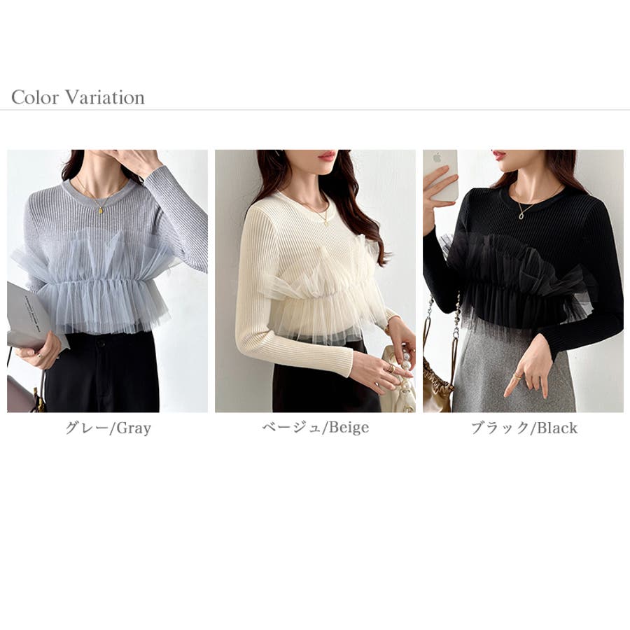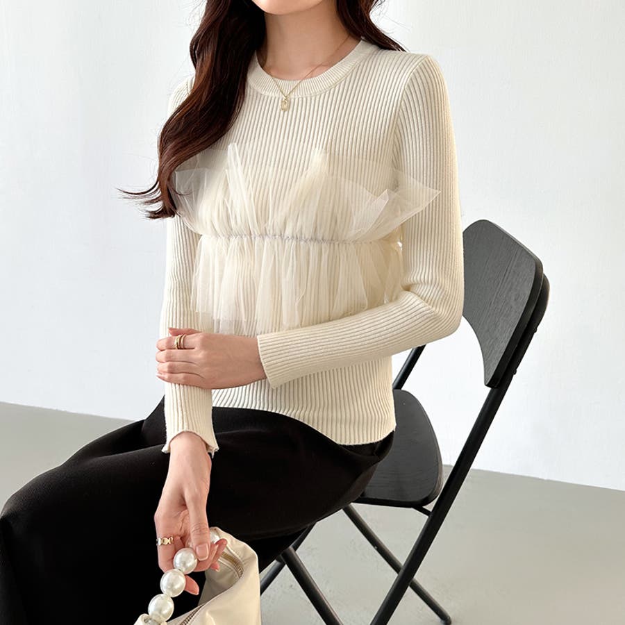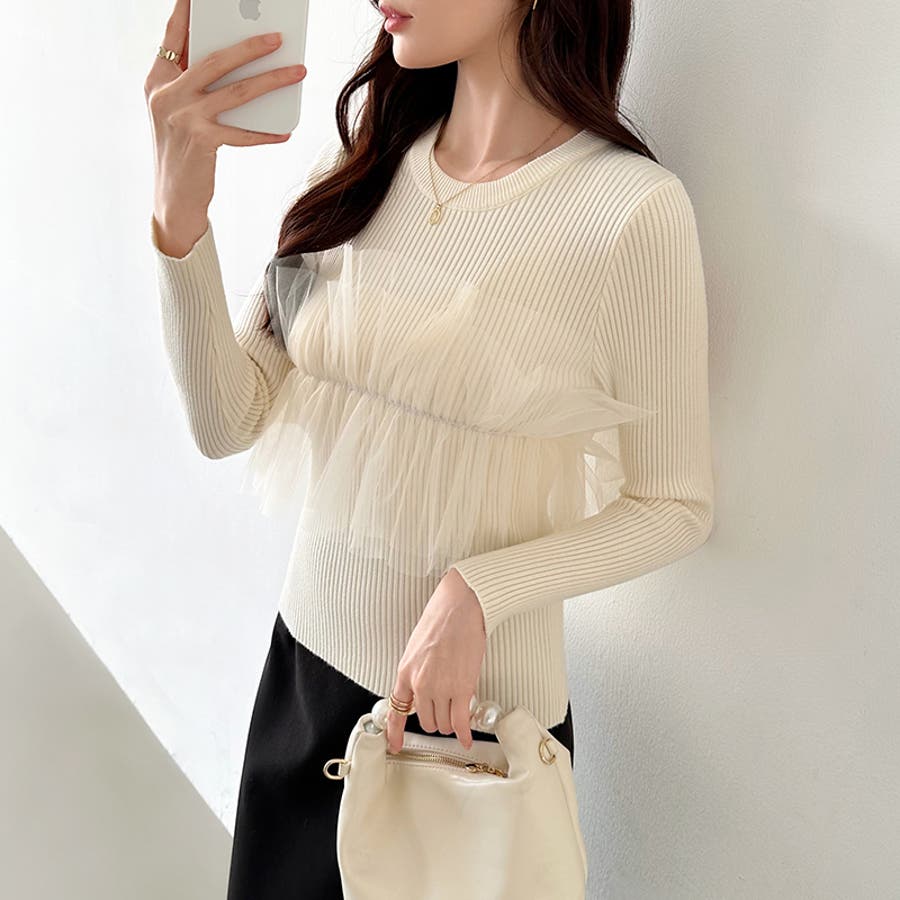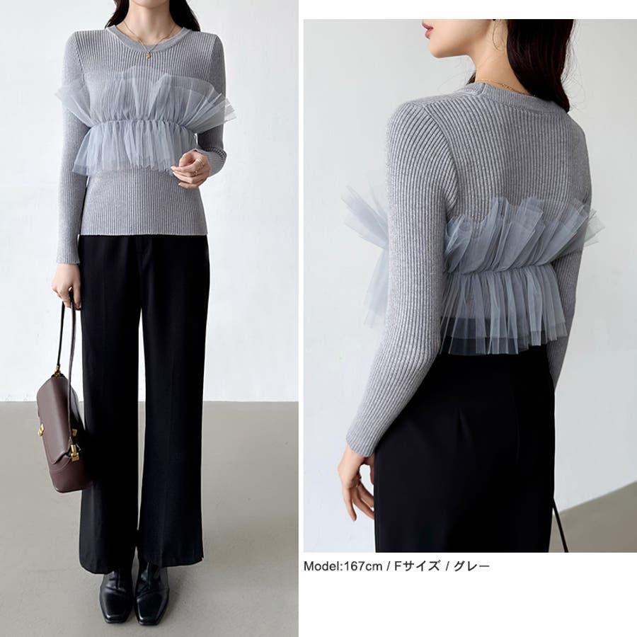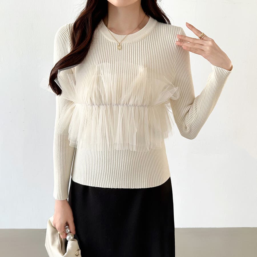 チュール ドッキング ニット ビスチェ風 リブニット トップス チュールドッキング レディース セーター 長袖 フリル ビスチェ リブ ドッキングニット 切り替え クルーネック プルオーバー 柔らかい ニットトップス チュールトップス 大人可愛い オーガンジー チュールニット チュールビスチェ クルーネックニット クルーネックセーター ラウンドネック 丸首 ニットセーター ニットトップスレディース ニットトップス長袖 ニットレディース 異素材 異素材トップス 切替 透け 透け感 シアー 素材 付き ギャザー シンプル 無地 長袖ニット 長袖トップス 長袖トップスレディース tops 着回し 着まわし 重ね着 重ね着風 レイヤード 伸縮性 伸びる ストレッチ フィット アクリル アクリル100% なめらか もちもち もっちり感 やわらかい やわらか ソフトな肌触り ソフト ソフトタッチ チクチクしにくい チクチクしない ちくちくしない ちくちくしにくい ヤク風 ヤク風ニット 1枚で決まる 洗える 手洗い 手洗い可能 洗濯できる 洗濯 洗濯可能 洗濯可 あたたかい 暖かい 暖か あったかい あったか オフィス オフィスカジュアル オフィカジ スカジュアル秋冬 通勤 通学 女子会 おでかけ お出かけ 旅行 服装 デート 食事会 女子会 華やか カジュアル フェミニン バレエコア 上品 大人 オトナ かわいい 可愛い 大人かわいい きれいめ きれい め キレイめ おしゃれ オシャレ 女性 母 ママ ママコーデ プチプラ 高見え トレンド コーデ ヒット 商品 おすすめ 服 ファッション フリーサイズ フリー サイズ ベージュ グレー 灰色 ブラック 黒 カラー きれい色 秋色 レディース春 レディース秋冬 レディース秋物 レディース秋冬トップス レディース冬 春トップス 秋トップス 冬トップス 長袖レディース 秋トップスレディース 新作 春秋 秋冬 春 秋 冬 春服 秋服 冬服 春物 秋物 冬物 春用 秋用 冬用 韓国 韓国ファッション 10代 20代 30代 40代 50代 cocomomo ココモモ