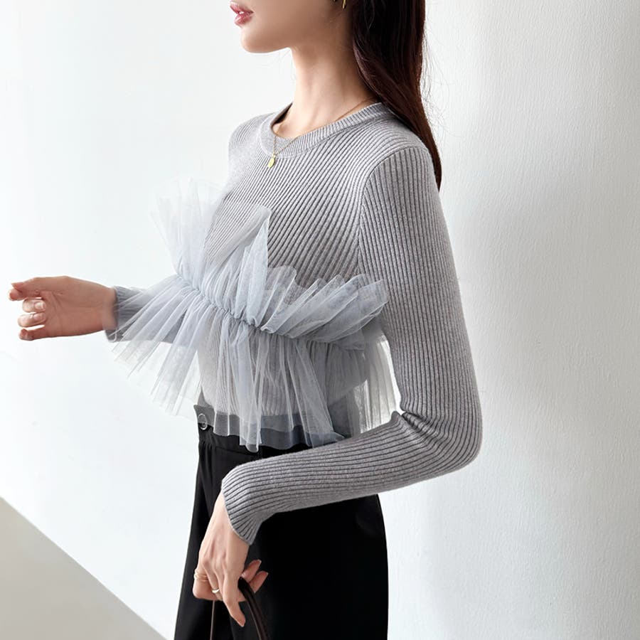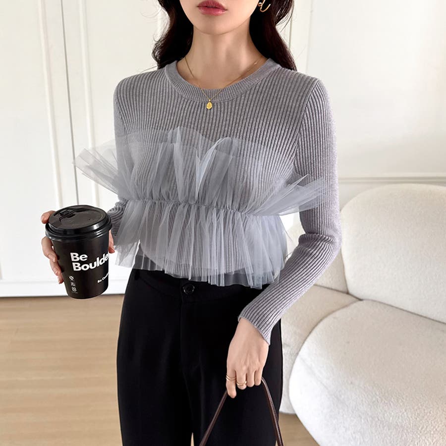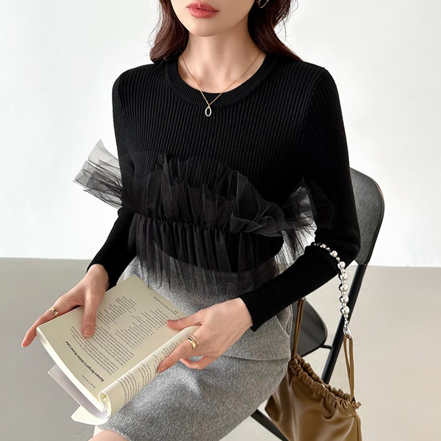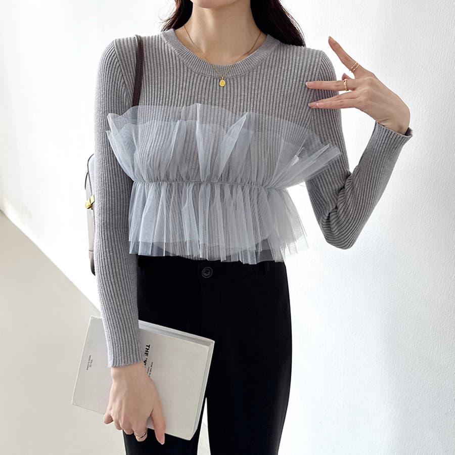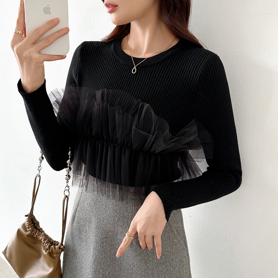 チュール ドッキング ニット ビスチェ風 リブニット トップス チュールドッキング レディース セーター 長袖 フリル ビスチェ リブ ドッキングニット 切り替え クルーネック プルオーバー 柔らかい ニットトップス チュールトップス 大人可愛い オーガンジー チュールニット チュールビスチェ クルーネックニット クルーネックセーター ラウンドネック 丸首 ニットセーター ニットトップスレディース ニットトップス長袖 ニットレディース 異素材 異素材トップス 切替 透け 透け感 シアー 素材 付き ギャザー シンプル 無地 長袖ニット 長袖トップス 長袖トップスレディース tops 着回し 着まわし 重ね着 重ね着風 レイヤード 伸縮性 伸びる ストレッチ フィット アクリル アクリル100% なめらか もちもち もっちり感 やわらかい やわらか ソフトな肌触り ソフト ソフトタッチ チクチクしにくい チクチクしない ちくちくしない ちくちくしにくい ヤク風 ヤク風ニット 1枚で決まる 洗える 手洗い 手洗い可能 洗濯できる 洗濯 洗濯可能 洗濯可 あたたかい 暖かい 暖か あったかい あったか オフィス オフィスカジュアル オフィカジ スカジュアル秋冬 通勤 通学 女子会 おでかけ お出かけ 旅行 服装 デート 食事会 女子会 華やか カジュアル フェミニン バレエコア 上品 大人 オトナ かわいい 可愛い 大人かわいい きれいめ きれい め キレイめ おしゃれ オシャレ 女性 母 ママ ママコーデ プチプラ 高見え トレンド コーデ ヒット 商品 おすすめ 服 ファッション フリーサイズ フリー サイズ ベージュ グレー 灰色 ブラック 黒 カラー きれい色 秋色 レディース春 レディース秋冬 レディース秋物 レディース秋冬トップス レディース冬 春トップス 秋トップス 冬トップス 長袖レディース 秋トップスレディース 新作 春秋 秋冬 春 秋 冬 春服 秋服 冬服 春物 秋物 冬物 春用 秋用 冬用 韓国 韓国ファッション 10代 20代 30代 40代 50代 cocomomo ココモモ