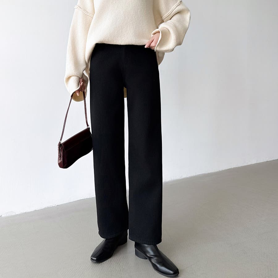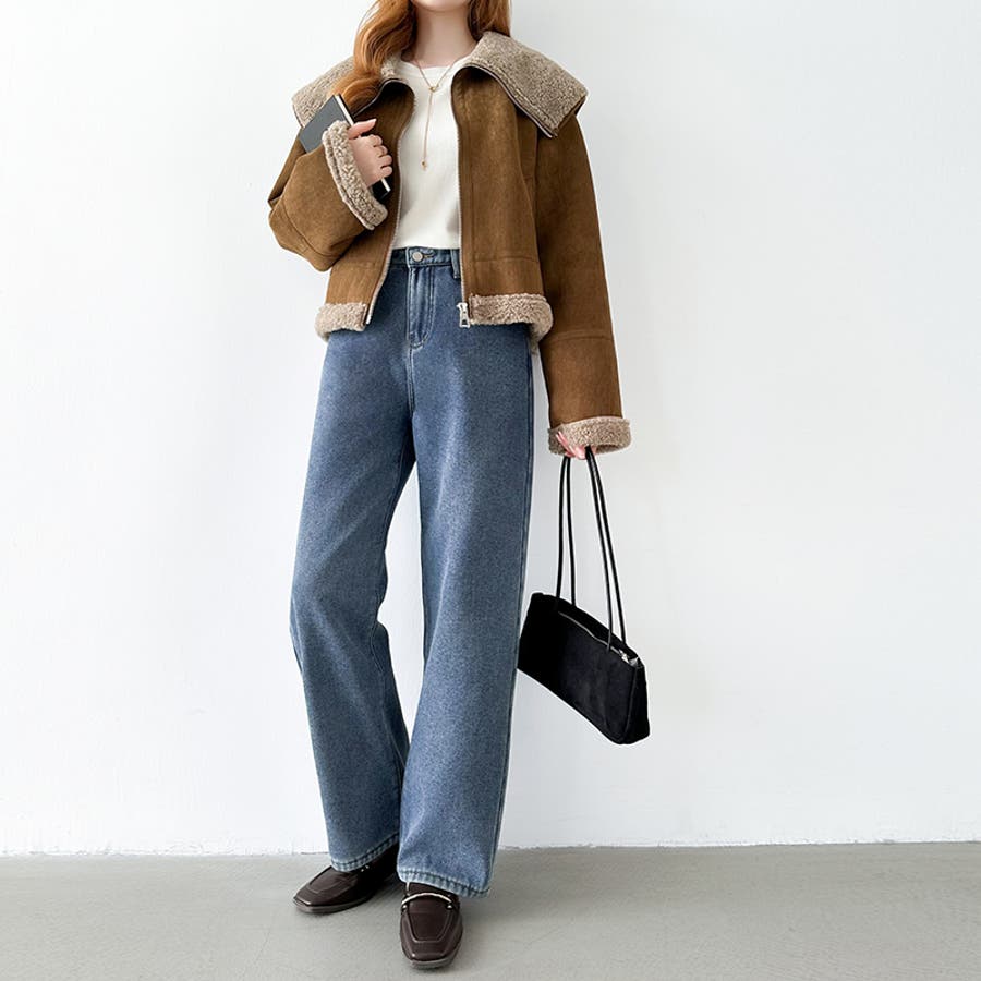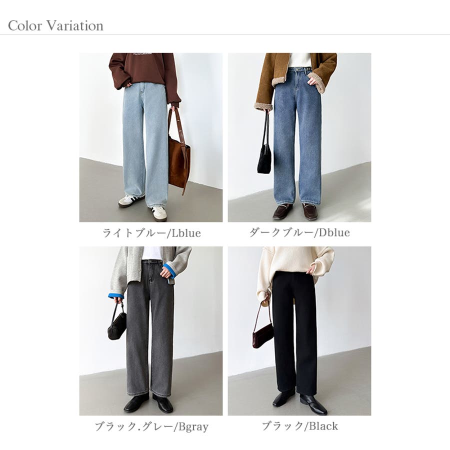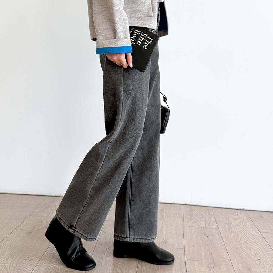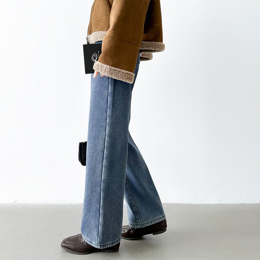 裏起毛 デニムパンツ セミワイドストレートパンツ