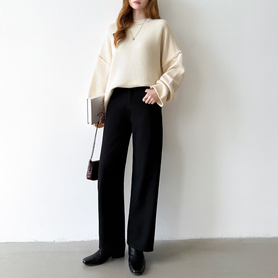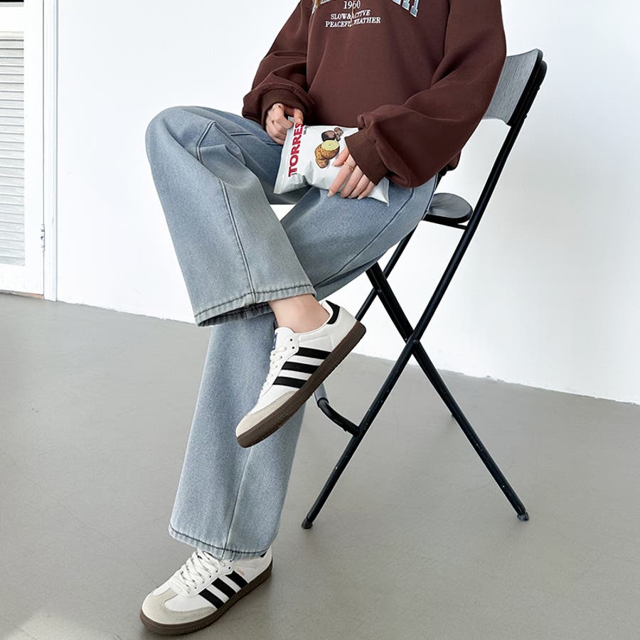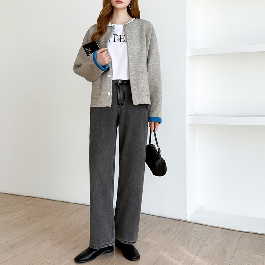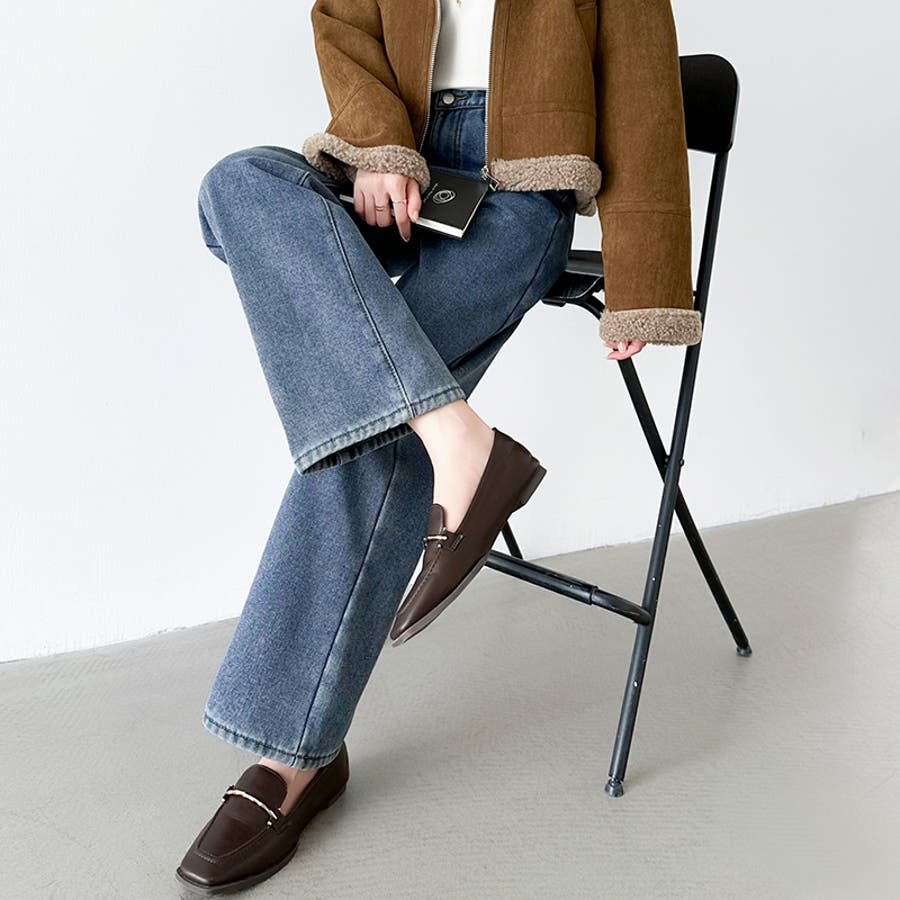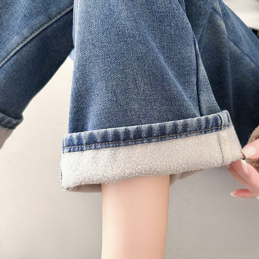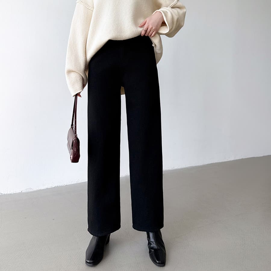 裏起毛 デニムパンツ セミワイドストレートパンツ