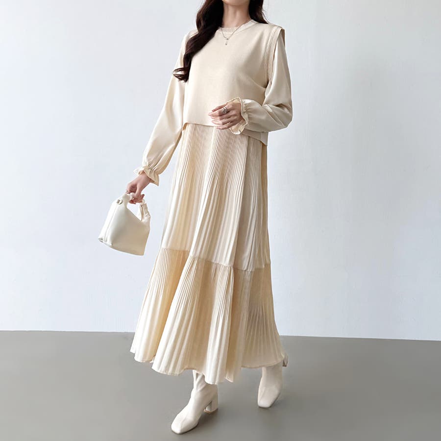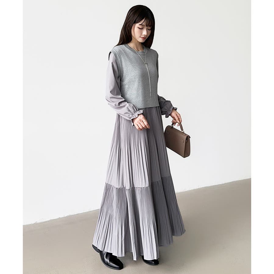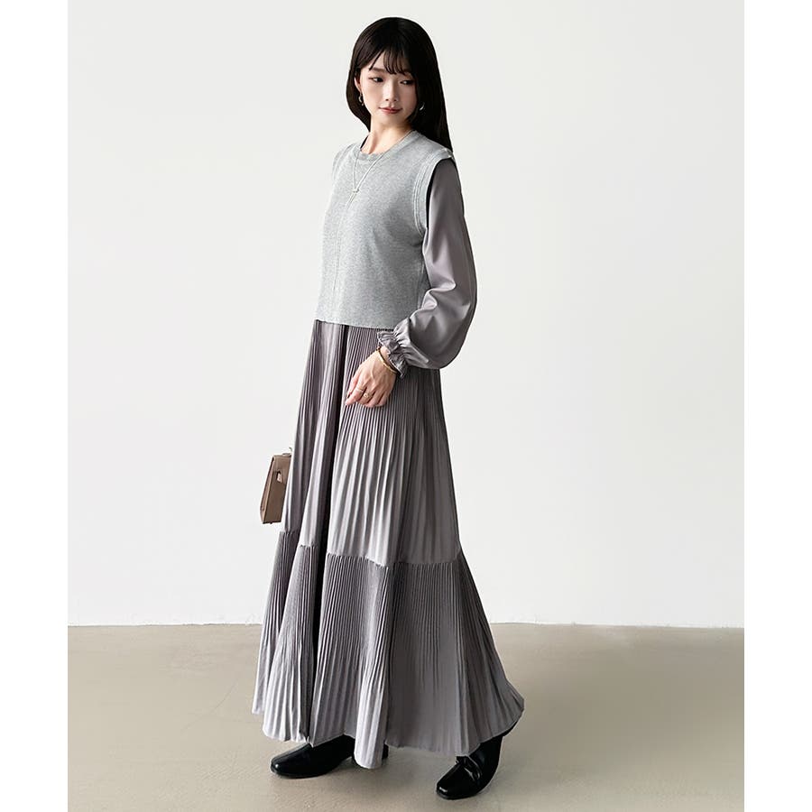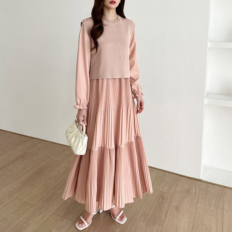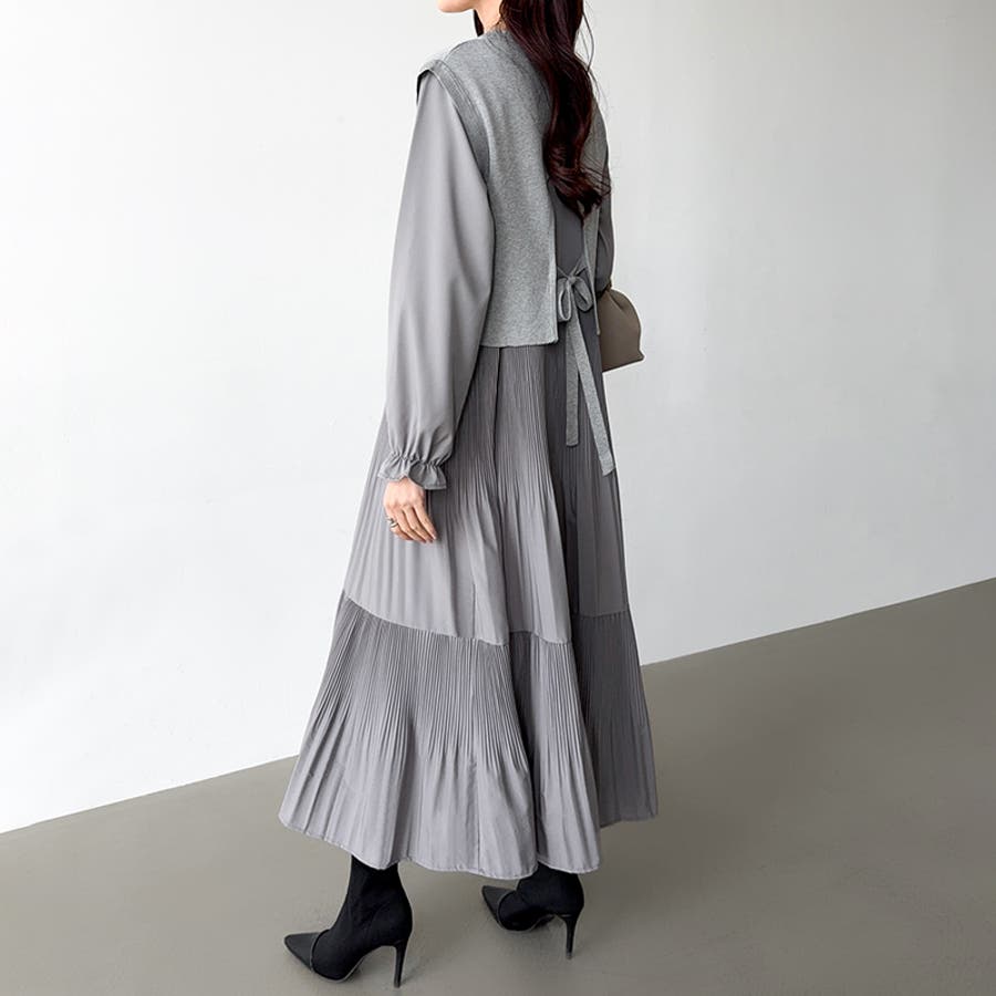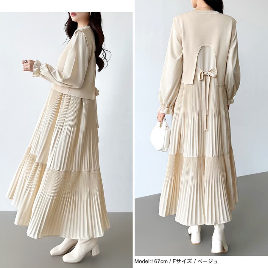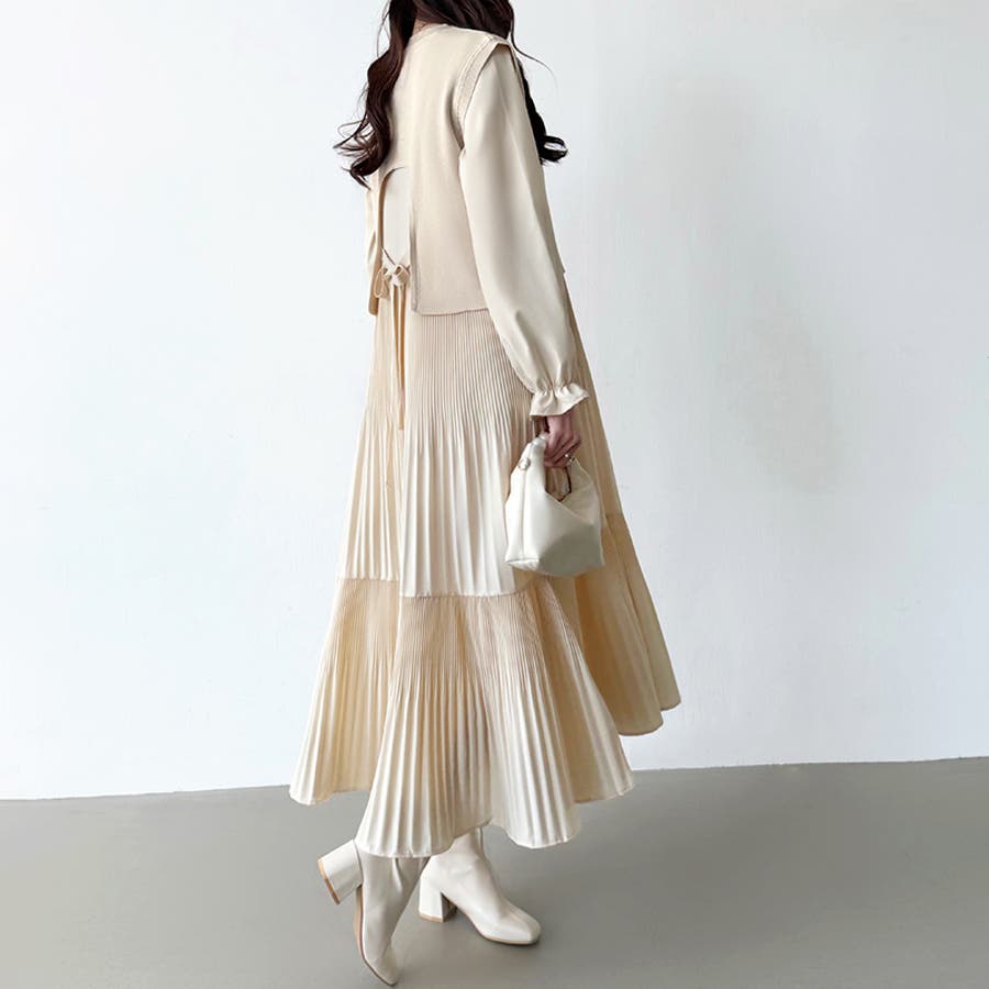 ベスト付きワンピース プリーツワンピース ロングワンピース