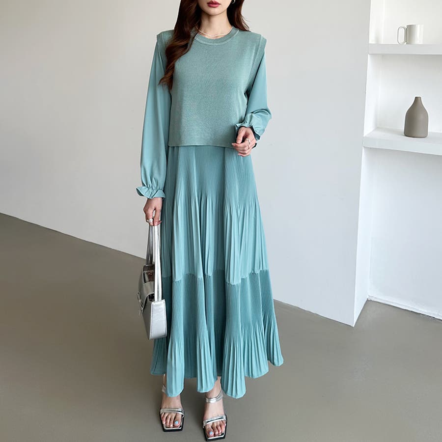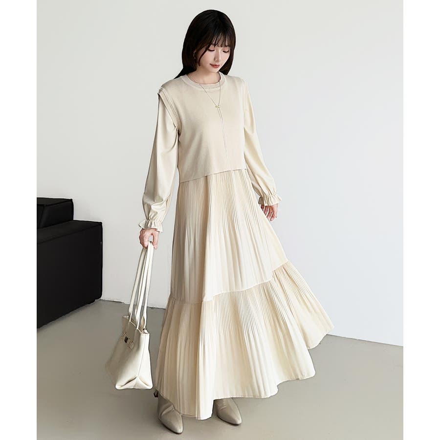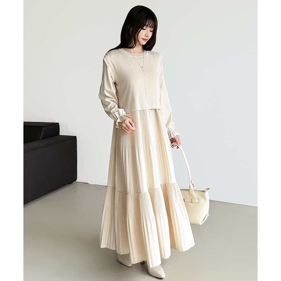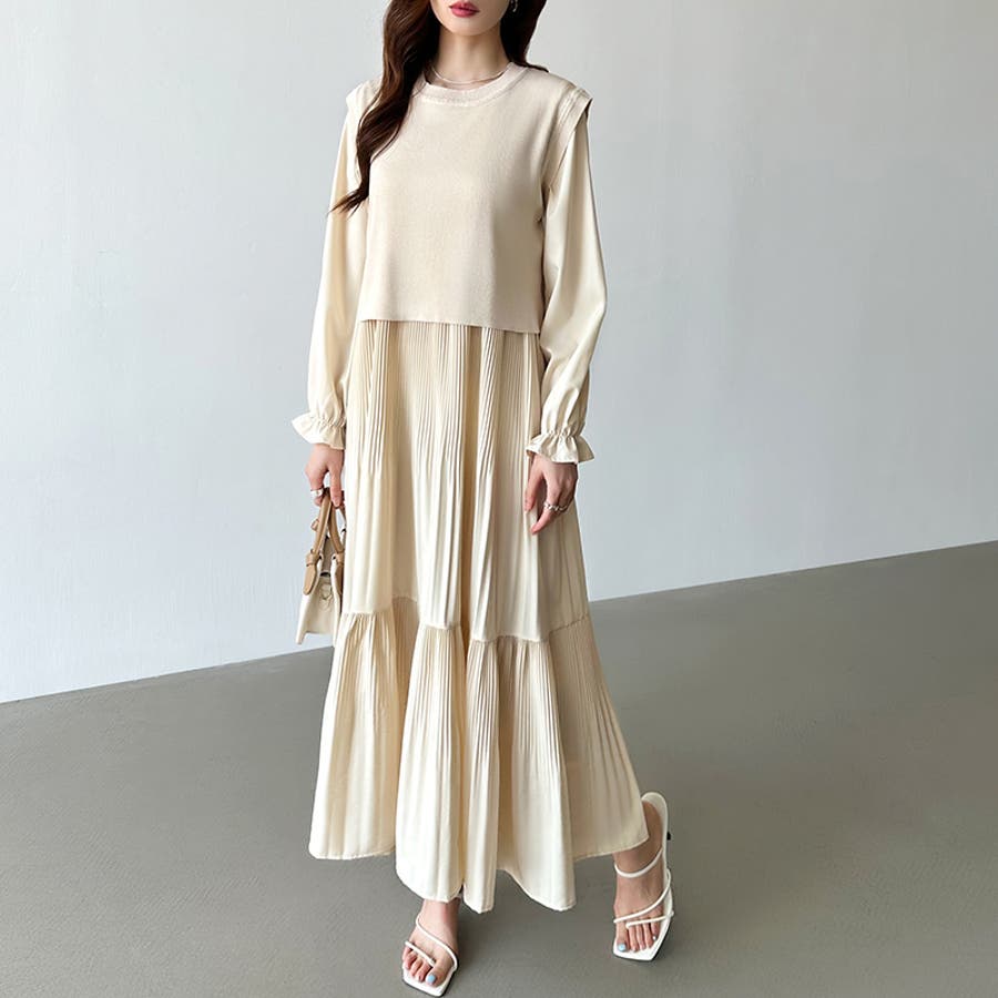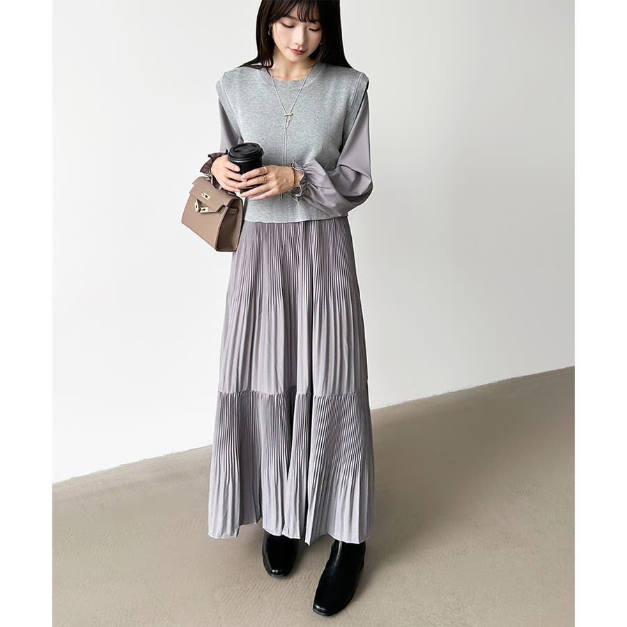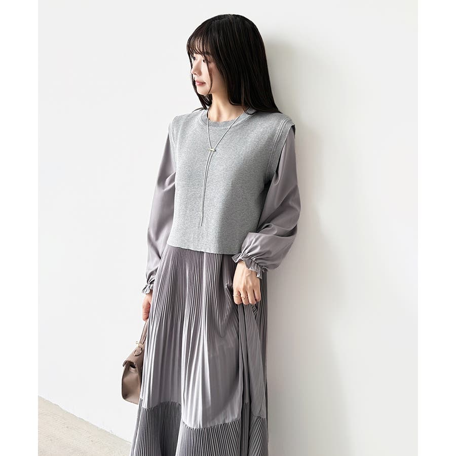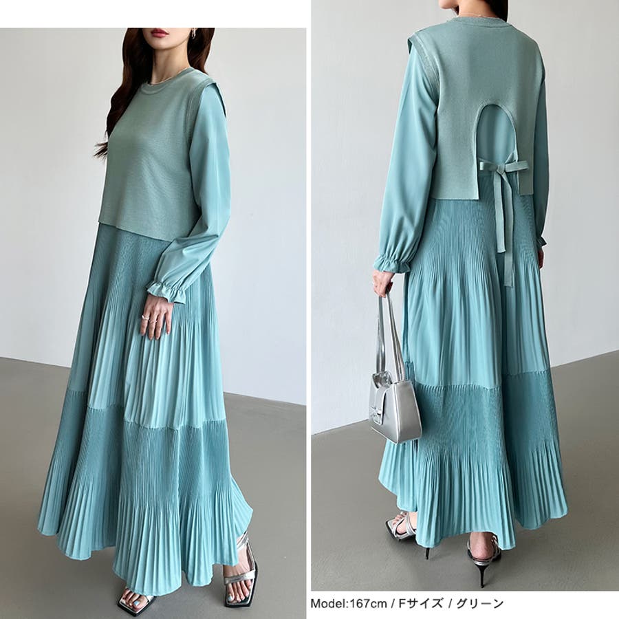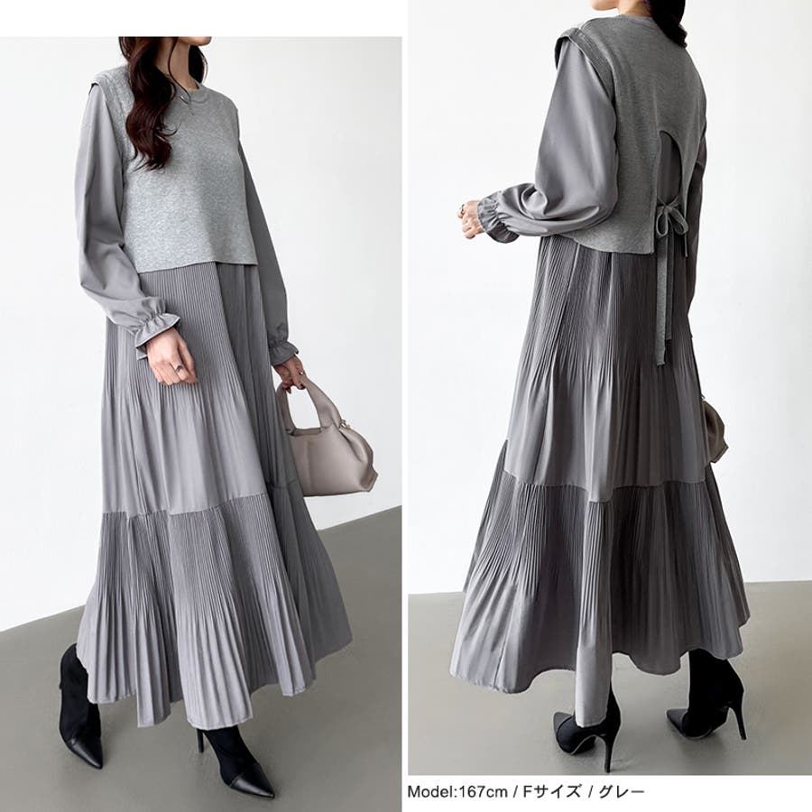 ベスト付きワンピース プリーツワンピース ロングワンピース