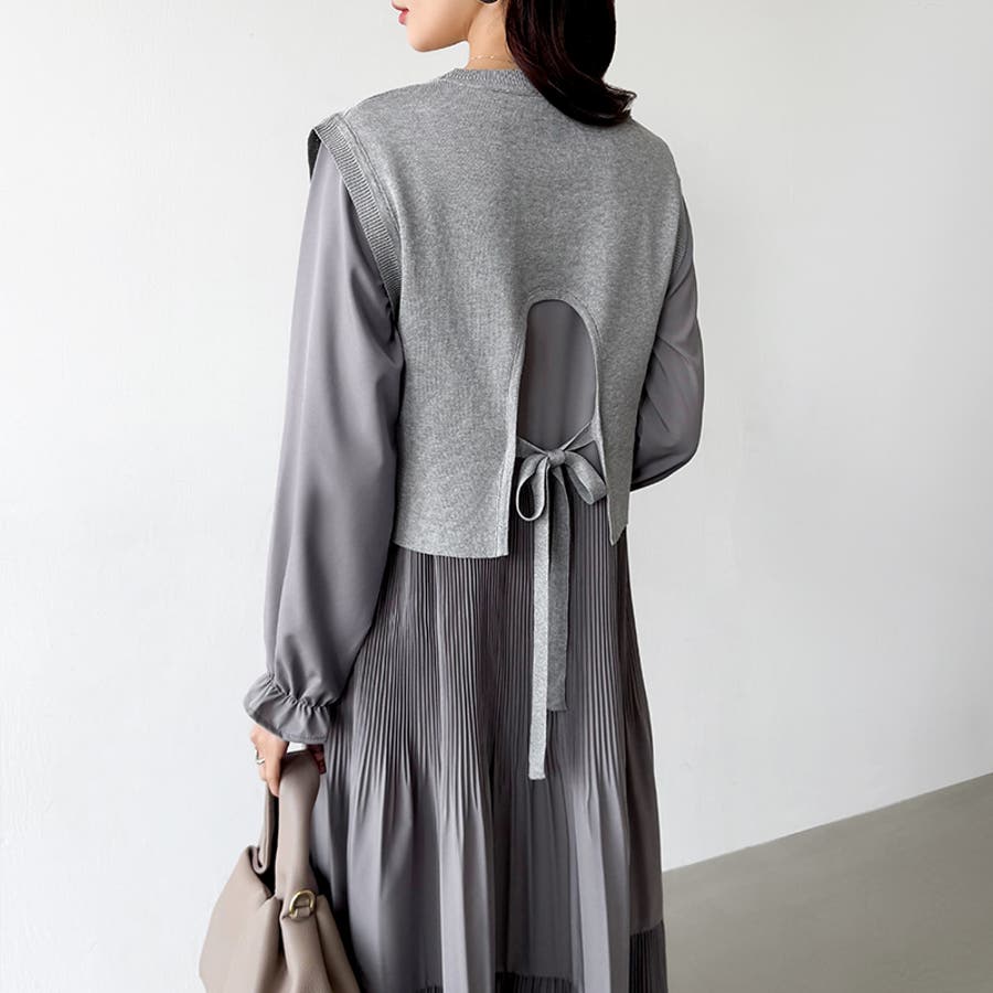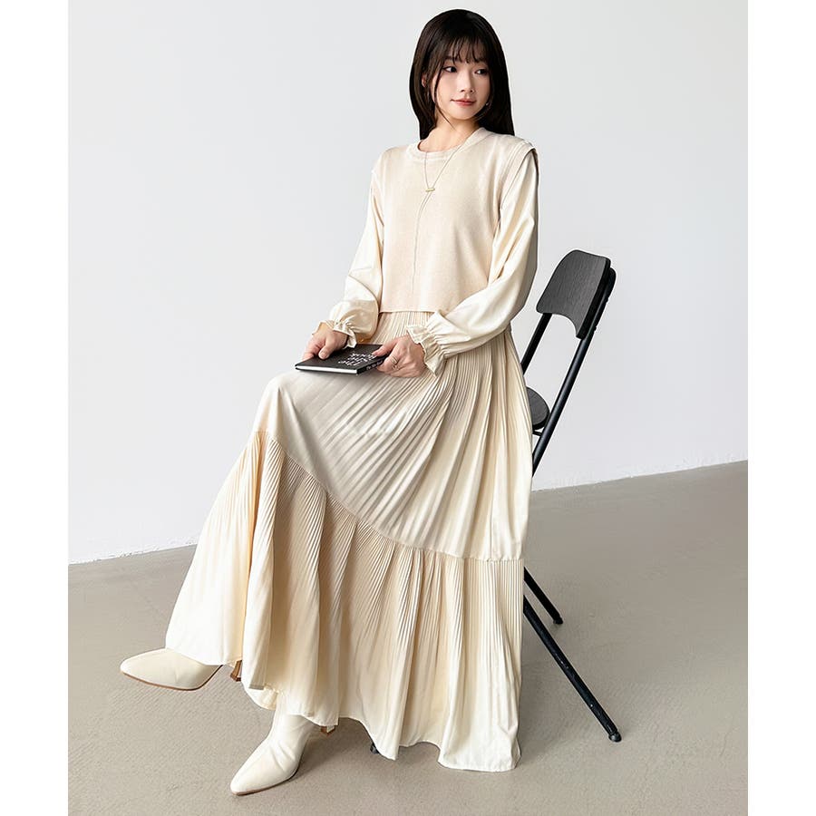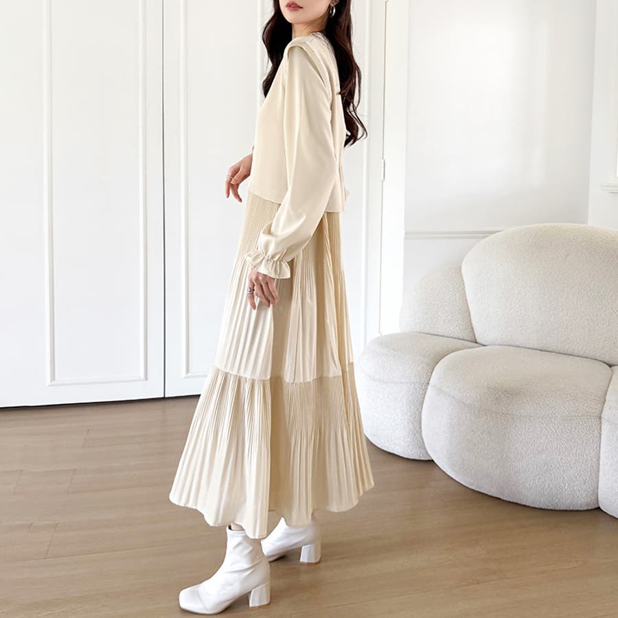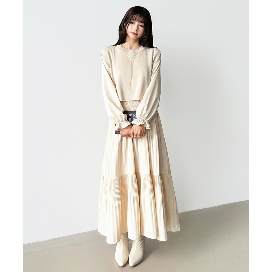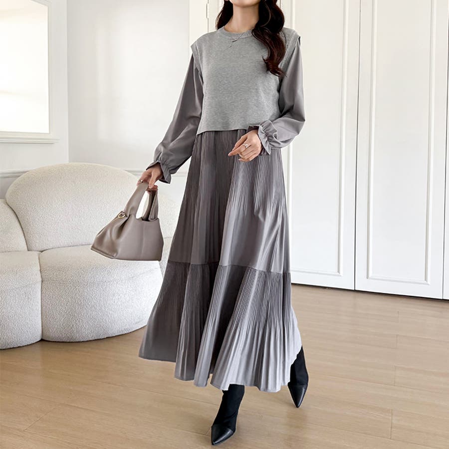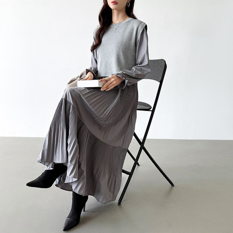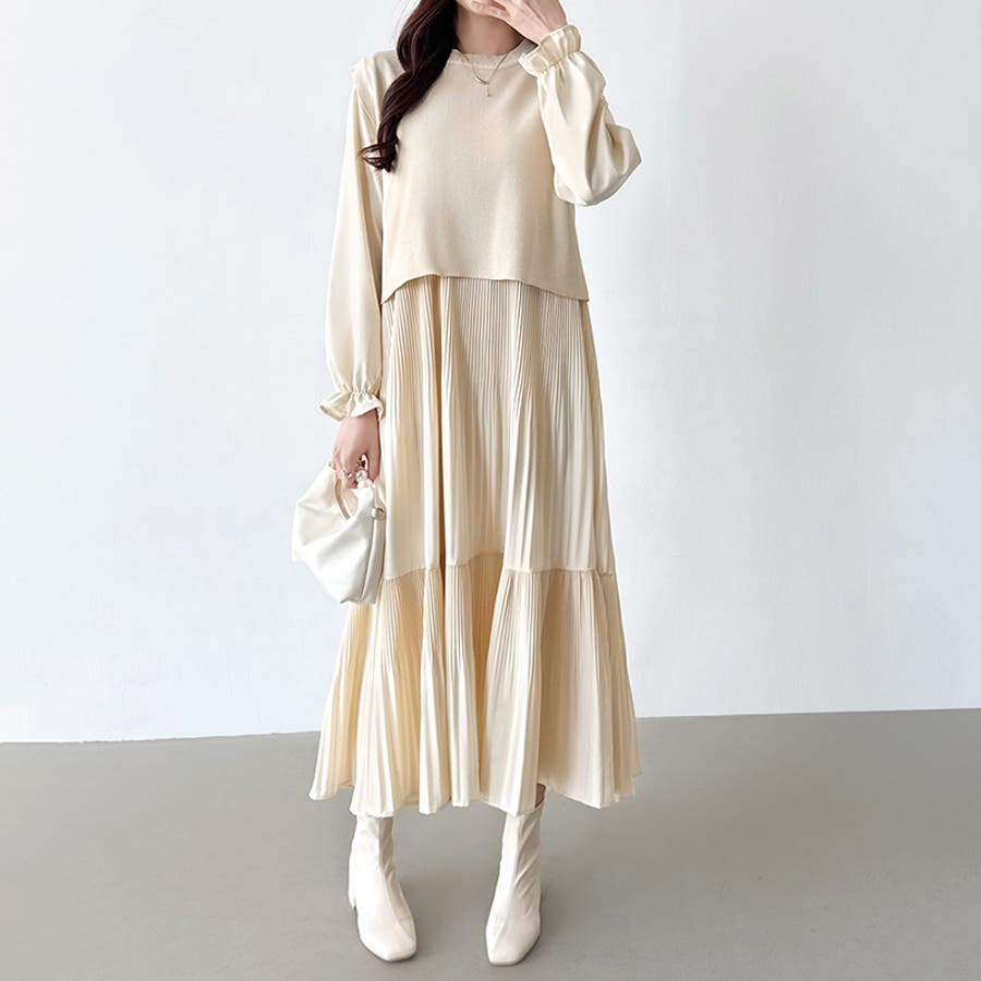 ベスト付きワンピース プリーツワンピース ロングワンピース