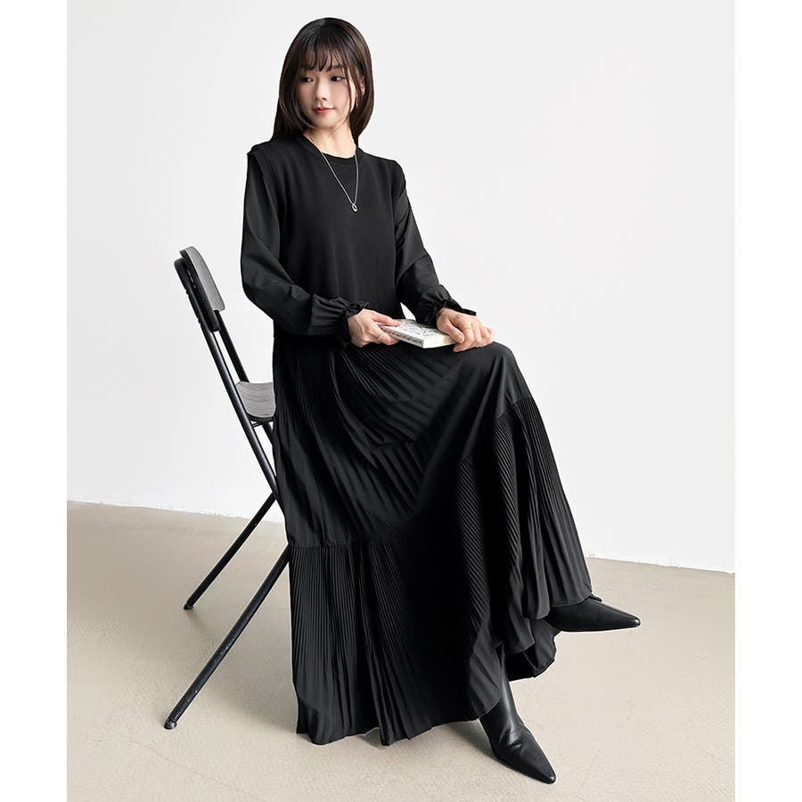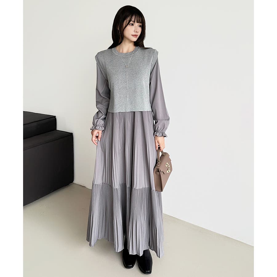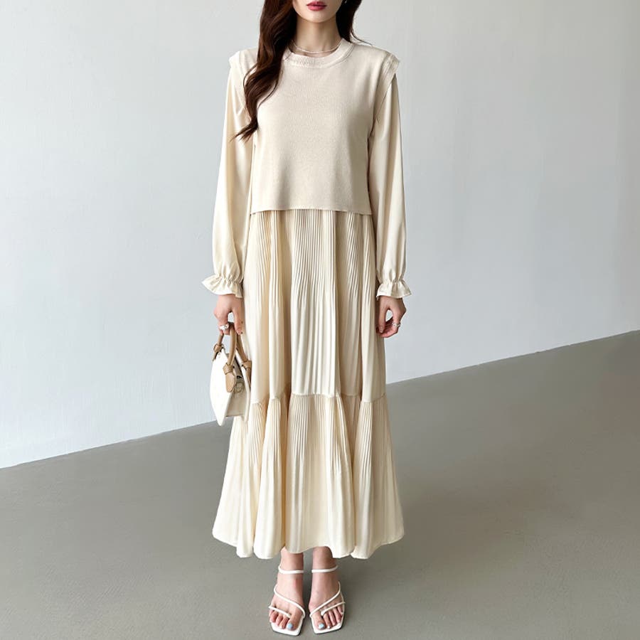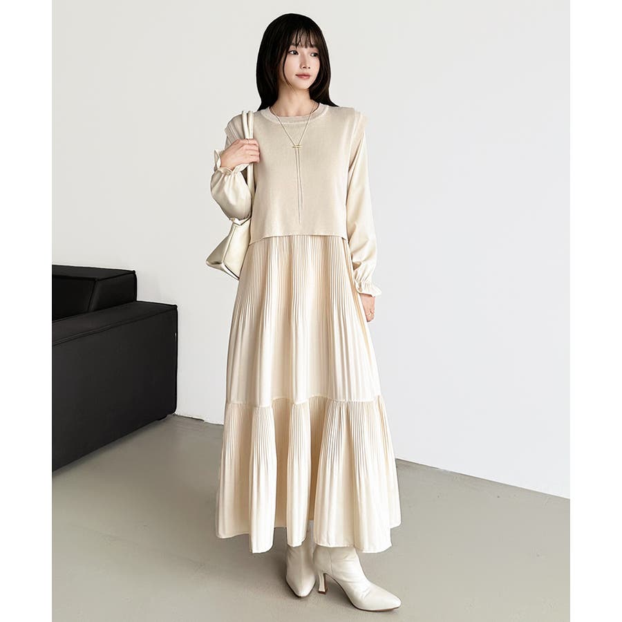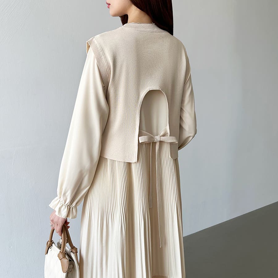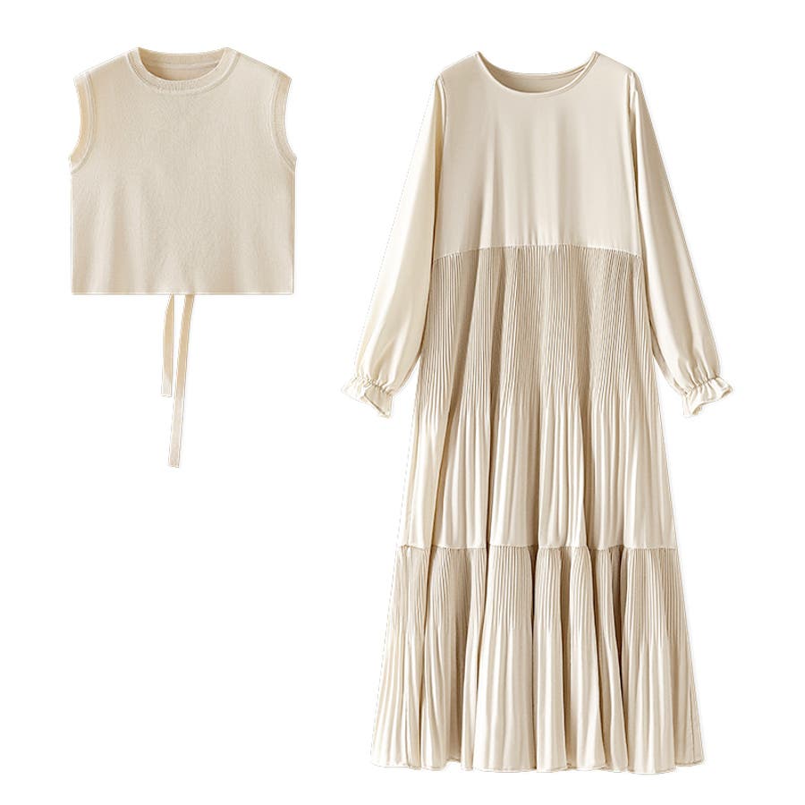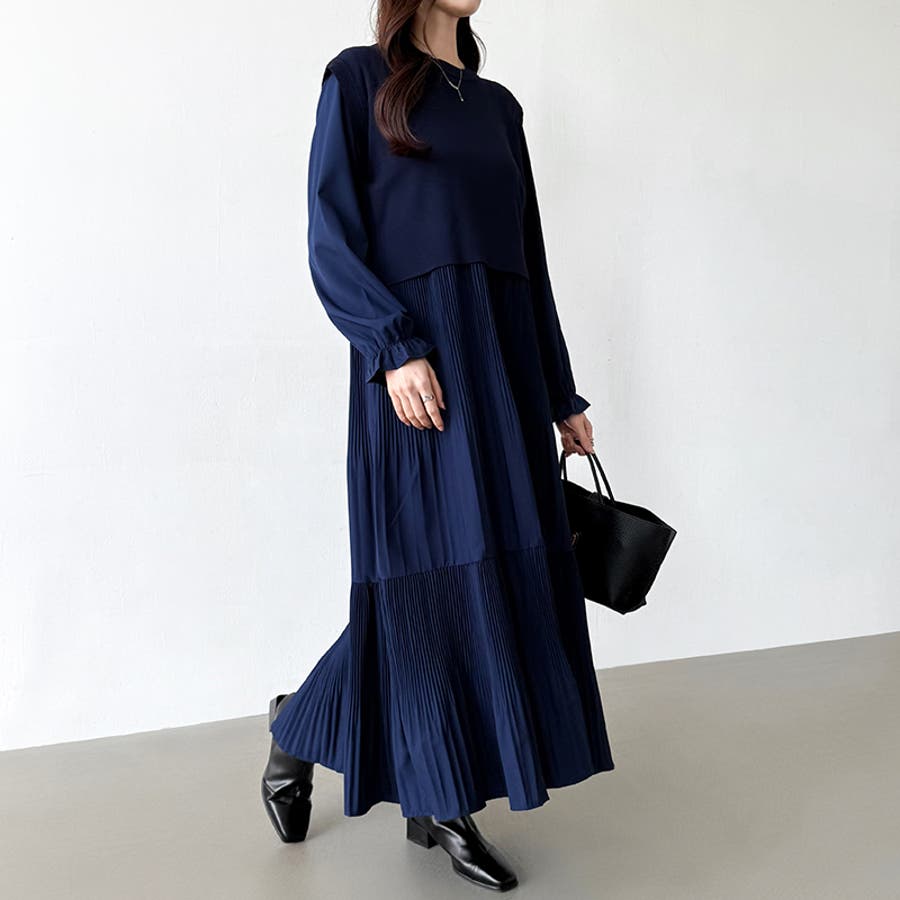 ベスト付きワンピース プリーツワンピース ロングワンピース