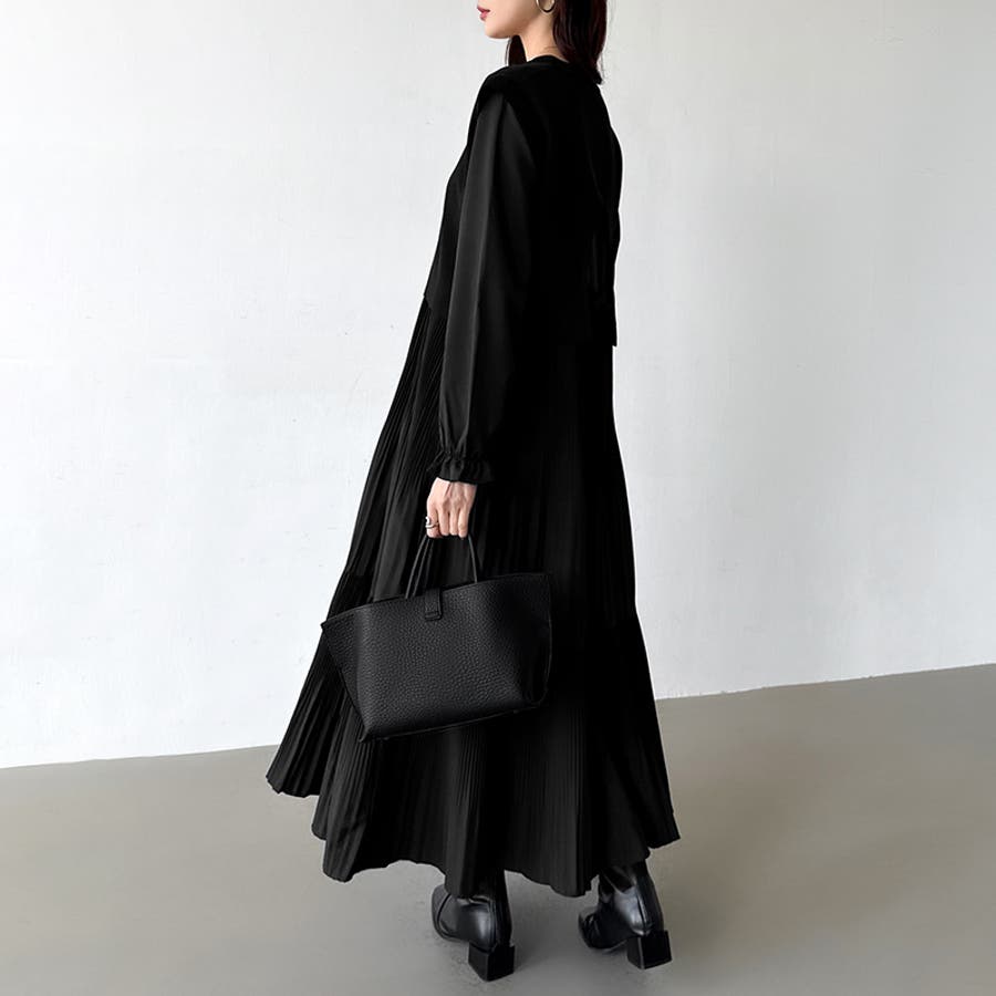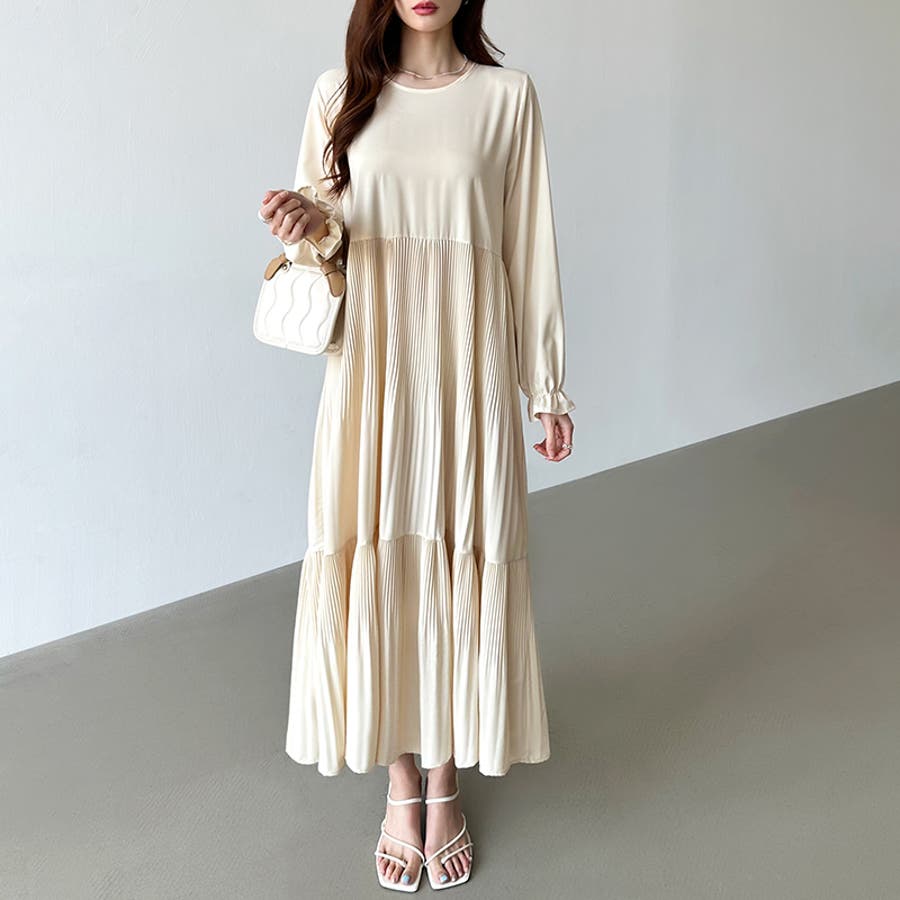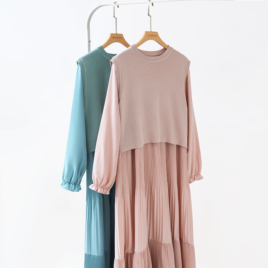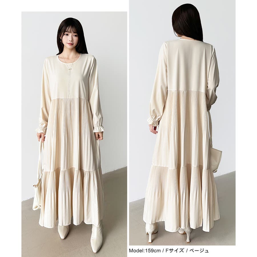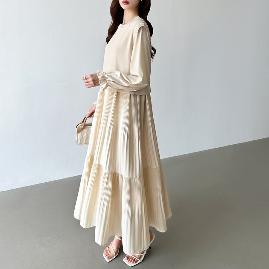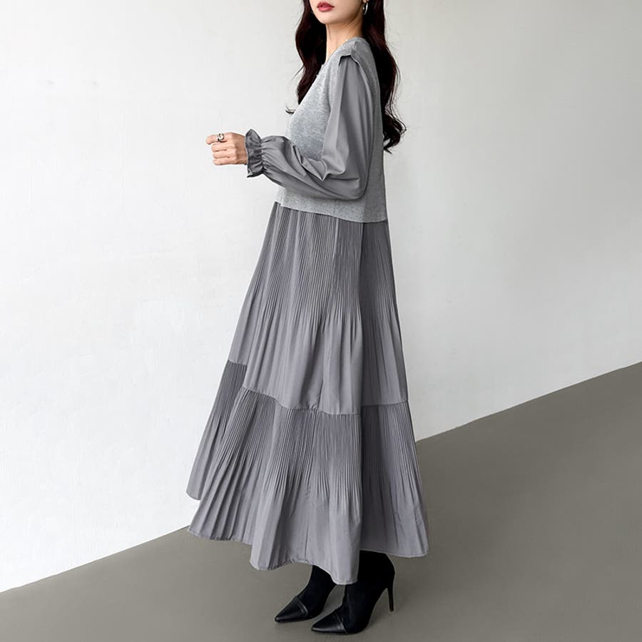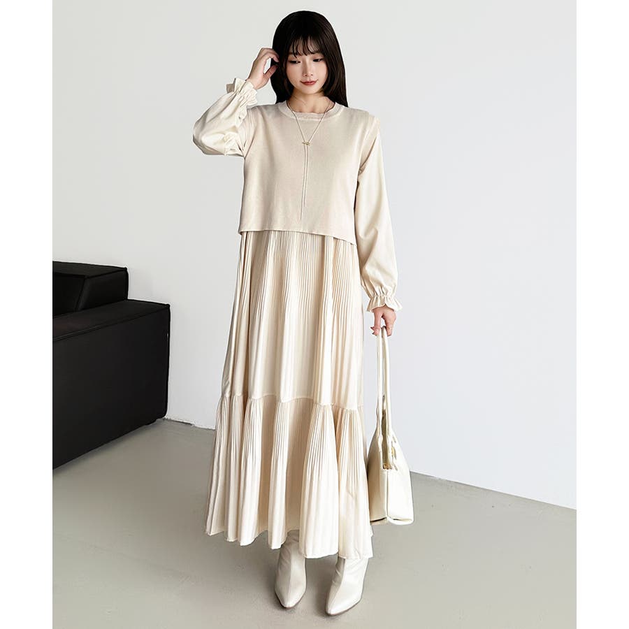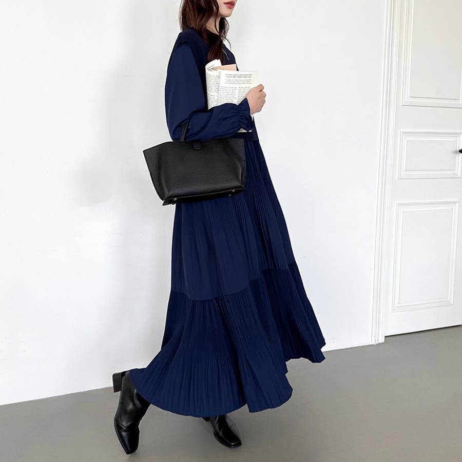 ベスト付きワンピース プリーツワンピース ロングワンピース