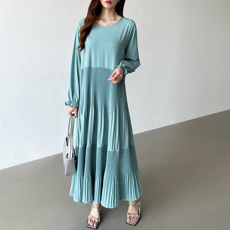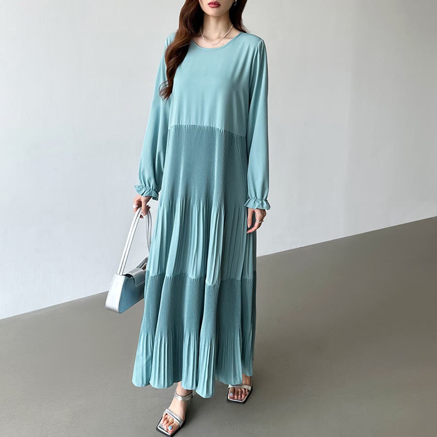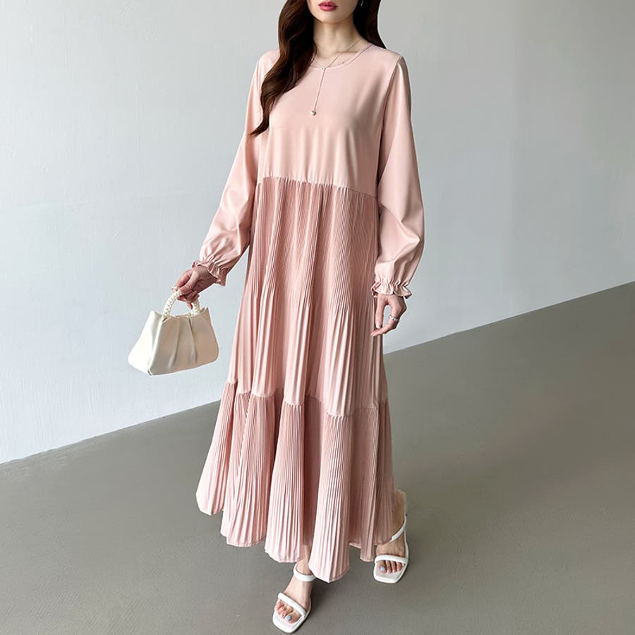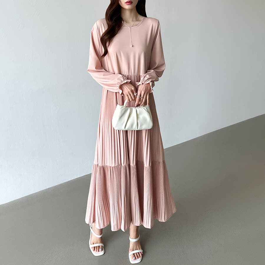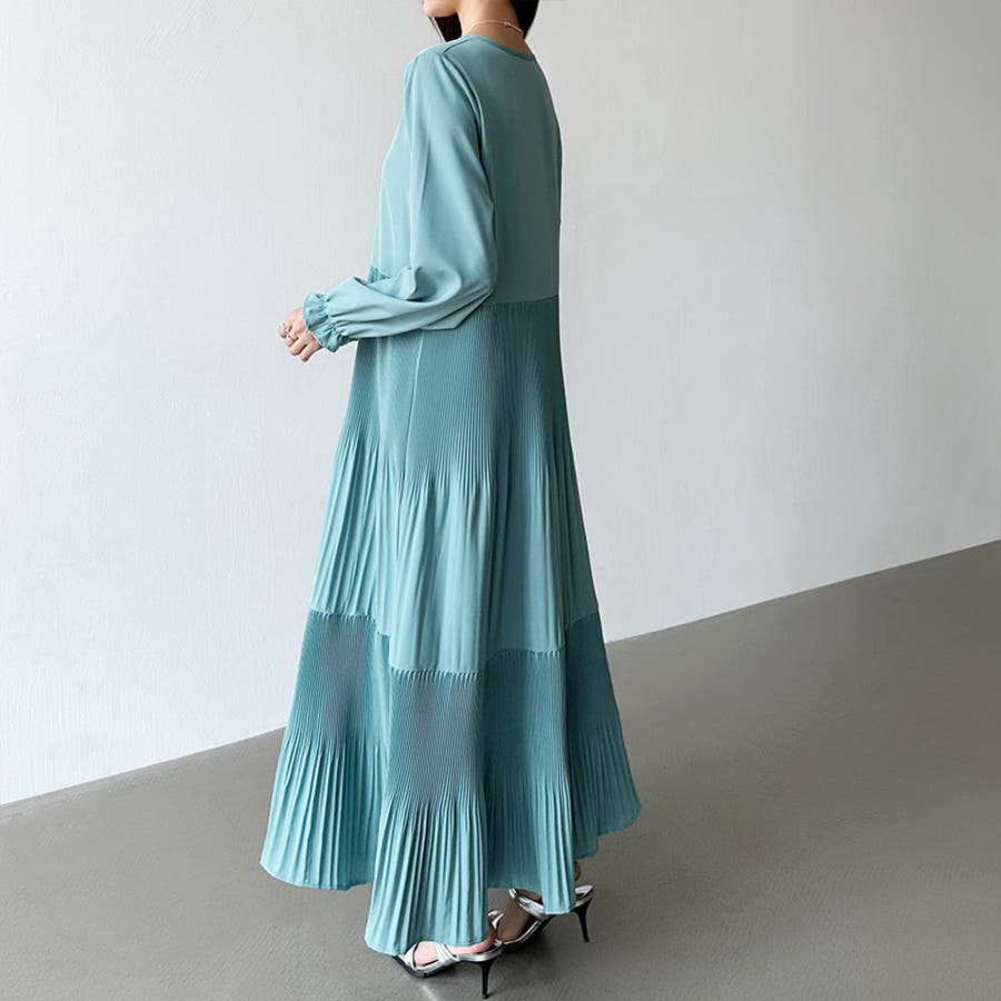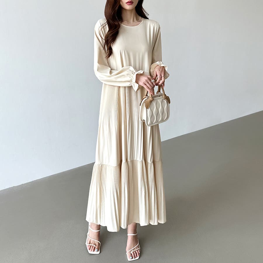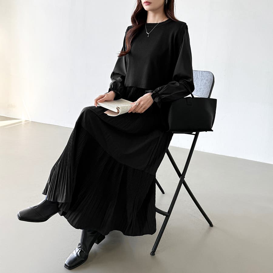 ベスト付きワンピース プリーツワンピース ロングワンピース