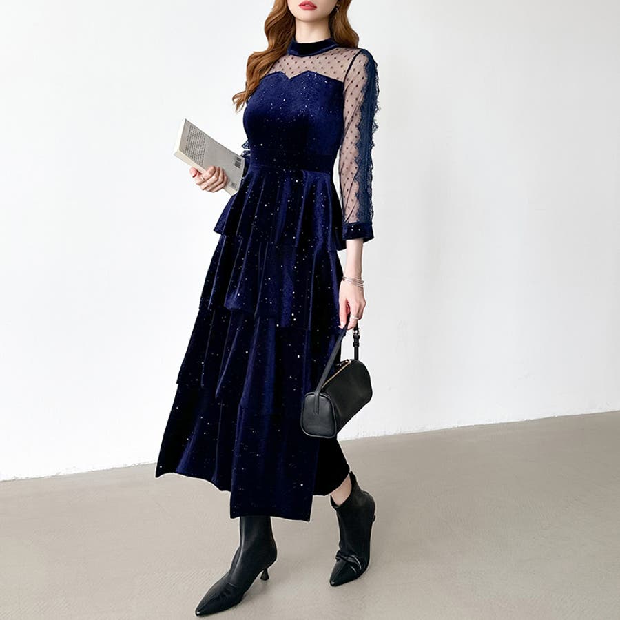 パーティードレス 結婚式 ワンピース ベロア ラメ レース ドレス お呼ばれ フォーマル パーティー ベロアワンピース 長袖 袖あり パーティドレス シースルー ティアード フリル きれいめ キラキラ スパンコール オケージョン レディース ティアードワンピース ベロアドレス フリルワンピース 異素材 異素材切り替え ベルベット 同窓会 シアー ドット ドット柄 柄 刺繍 刺繍レース 上品 ミモレ丈 袖付き ビスチェ ビスチェ風 成人式 結婚式ワンピース ロングワンピース 大人 シアーワンピース 袖 シースルー袖 袖シースルー 袖シアー 透け感 レースワンピース ハイウエスト おしゃれ きらきら キラキラワンピース ワンピ パーティーワンピース セレモニー オケージョンドレス オケージョンワンピース 低身長 低身長さん 高身長 高身長さん 小柄 ミモレ ミディアム ミディアム丈 膝下 およばれ ハートネック 背中 シンプル 透明 トップス 着痩せ 細見え ウエスト切り替え 切替 切り替え ワンピ 二の腕カバー 体型カバー 体型 カバー 隠し ふんわり 1枚で決まる ウエディング ウェディング 披露宴 ステージ衣装 衣装 卒業式 卒業 成人 式 卒業パーティー 大学生 中世 プロム 舞台衣装 お呼ばれドレス 結婚式ドレス 二次会 2次会 フォーマルワンピース ドレス大人 司会 演奏会 衣装 発表会 発表 会 演奏 ピアノ ピアノ発表会 発表会ワンピース大人 ピアノ発表会ロング ゲスト スナック 夜 キャバ キャバドレス キャバ嬢 ギャル 豪華 バースデー スウィート ブライズメイド セクシー 食事会 誕生日 誕生日会 謝恩会 フォト マザーズ プチプラ 高見え 高級 高級感 華やか ゴージャス エレガント フェミニン セミフォーマル かっこいい 綺麗 きれい きれい め キレイめ かわいい 可愛い 大人可愛い 大人っぽい 大人可愛いワンピース きれいめワンピース オトナ女子 オシャレ 女性 女子 ママ ママドレス 母 トレンド 服装 Sサイズ Mサイズ Lサイズ S M L サイズ ブラック 黒 グレイブルー 青 ダークブラウン ブラウン 茶色 モカ カーキ 緑 ネイビー 紺 紺色 カラー 黒ドレス 黒ワンピース 新作 春夏 秋冬 春 夏 秋 冬 韓国 韓国ファッション 10代 20代 30代 40代 50代 cocomomo ココモモ