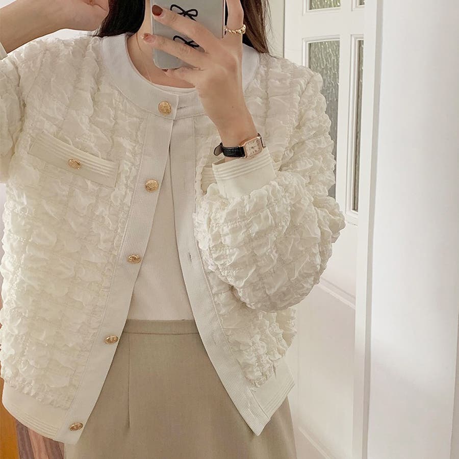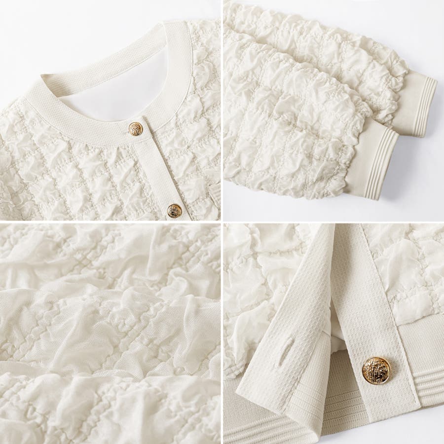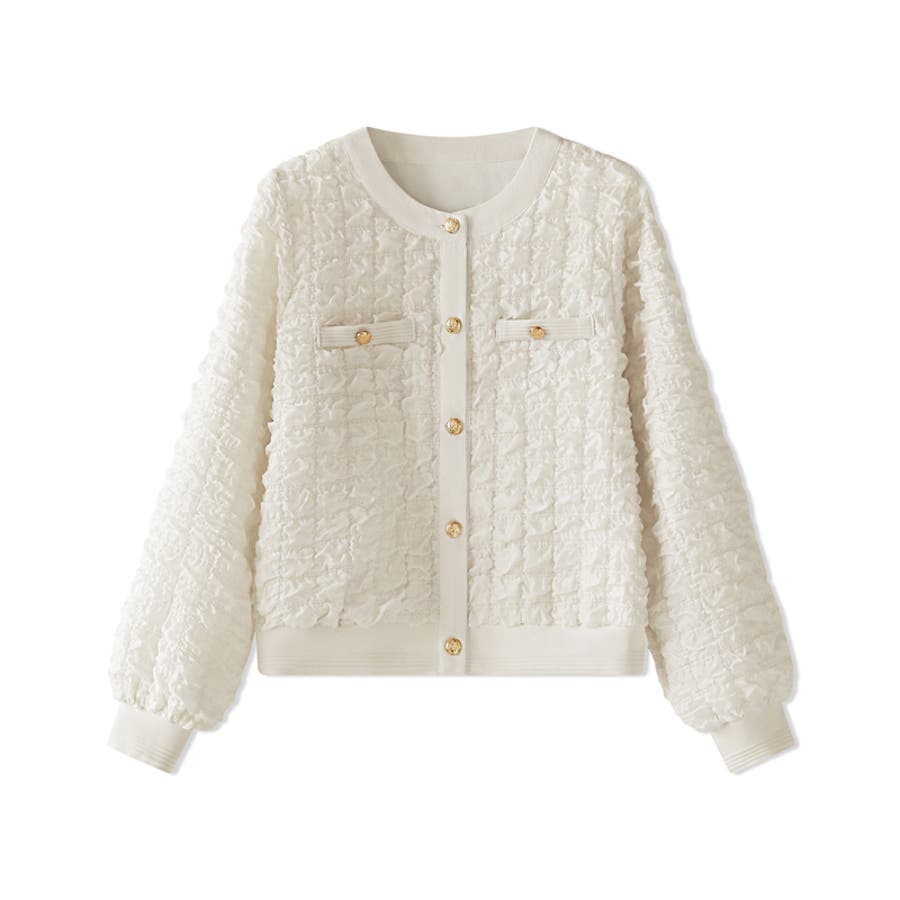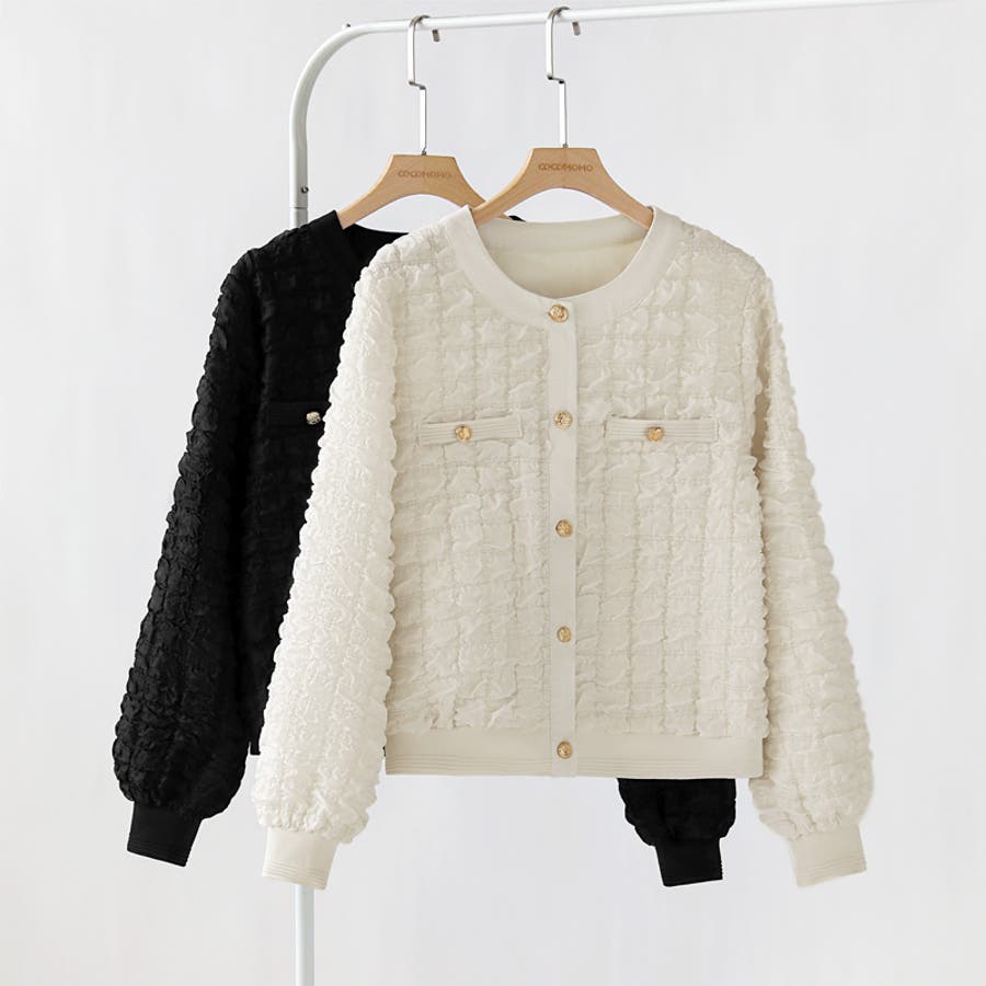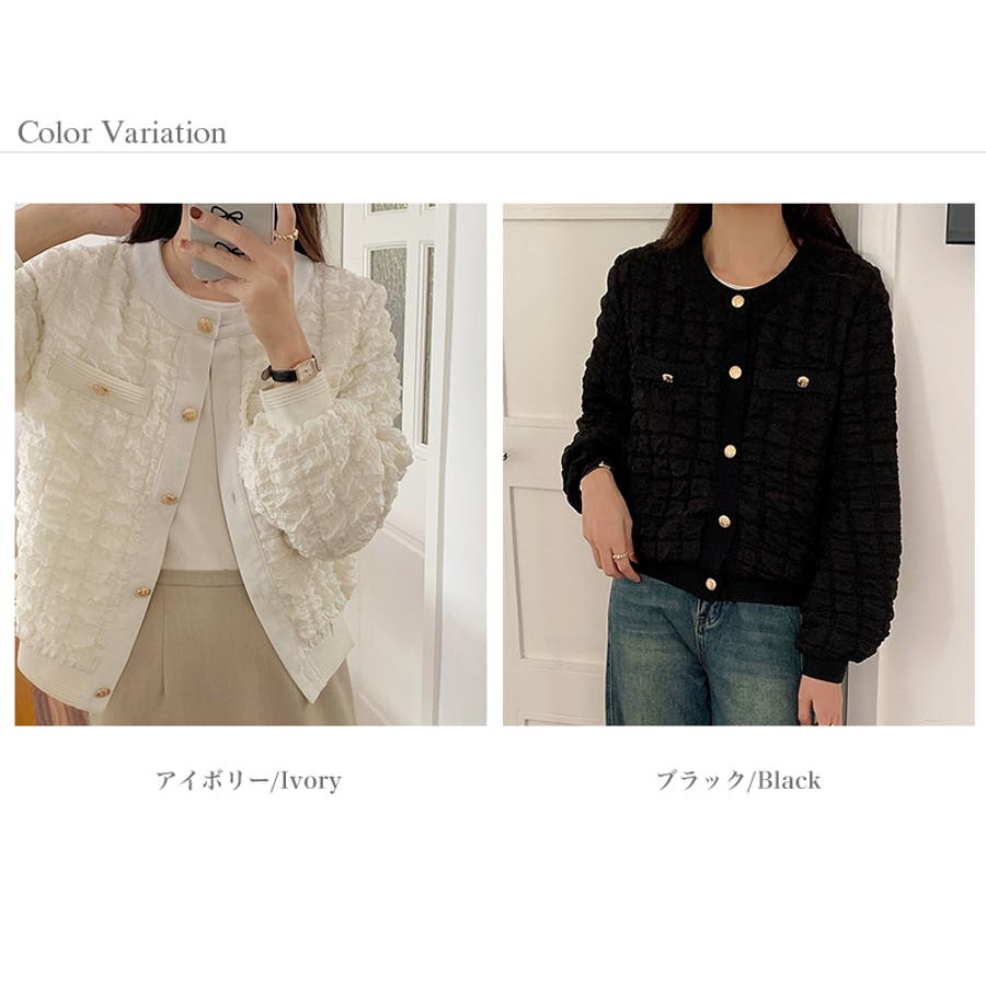 ノーカラージャケット 金ボタン ジャケット レディース ライトアウター ぽこぽこ 羽織り ノーカラー アウター 長袖 きれいめ ショート丈 フォーマル オケージョン カジュアル フクレ生地 ポップコーン 凹凸 ポコポコ ゴールドボタン ジャケット風 カーディガン ノーカラージャケットレディース ライトアウターレディース ショート ショートジャケット ショートジャケットレディース ノーカラーブルゾン ラウンドネック クルーネック 襟 襟なし 上着 羽織 羽織もの 前開き 前あき ボタン 裏地 裏地付き 1枚で決まる 温かい あたたかい あったか 暖か お出かけ おでかけ 旅行 きちんと感 きちんと セレモニー 入学式 入園式 卒業式 卒園式 入学 入園 卒業 卒園 卒 入 式 代 入学式ママ 入学式ママフォーマル 入学式ママ韓国風 卒業式ママ 謝恩会 お宮参り 同窓会 ビジネス 顔合わせ お呼ばれ 結婚式 二次会 発表会 演奏会 発表 会 演奏 仕事 司会 冠婚葬祭 学校行事 行事 参観日 謝恩会 誕生日 誕生日会 バースデー パーティー 服装 食事会 女子会 事務服 通勤 通学 オフィス オフィスカジュアル オフィスカジュアル秋冬 オフィカジ レトロ 上品 エレガント キレカジ 華やか 清楚 ゴージャス 大人 かわいい 可愛い 大人可愛い オトナ女子 大人女子 女子 おしゃれ オシャレ 母 ママ ママコーデ プチプラ 高見え 高級感 トレンド ヒット 商品 おすすめ 服 ファッション コーデ コーディネート 人気 女性 フリーサイズ フリー サイズ アイボリー 白 ブラック 黒 カラー 春アウター 春アウターレディース 秋アウター 秋アウターレディース 冬アウターレディース 秋冬ジャケット アウターレディース 大人カジュアル 新作 春物 秋物 冬物 秋用 春用 冬用 秋冬 春 秋 冬 春服 秋服 冬服 韓国 韓国ファッション 10代 20代 30代 40代 50代 60代 cocomomo ココモモ