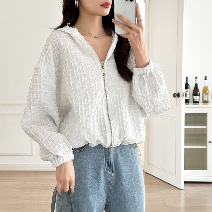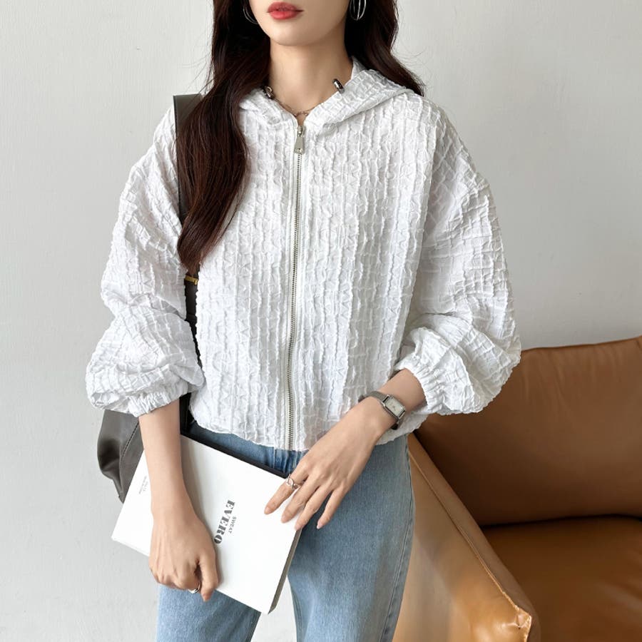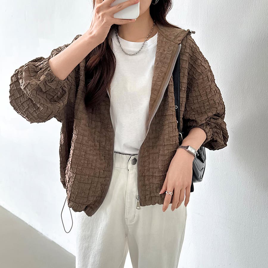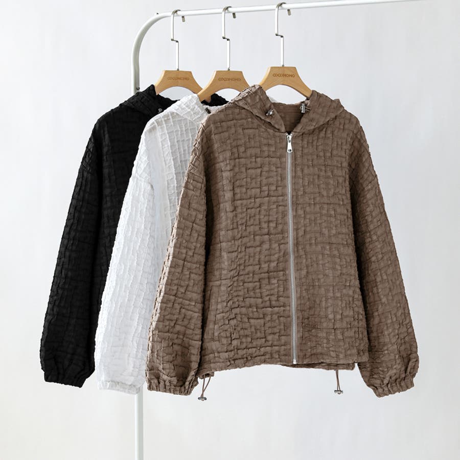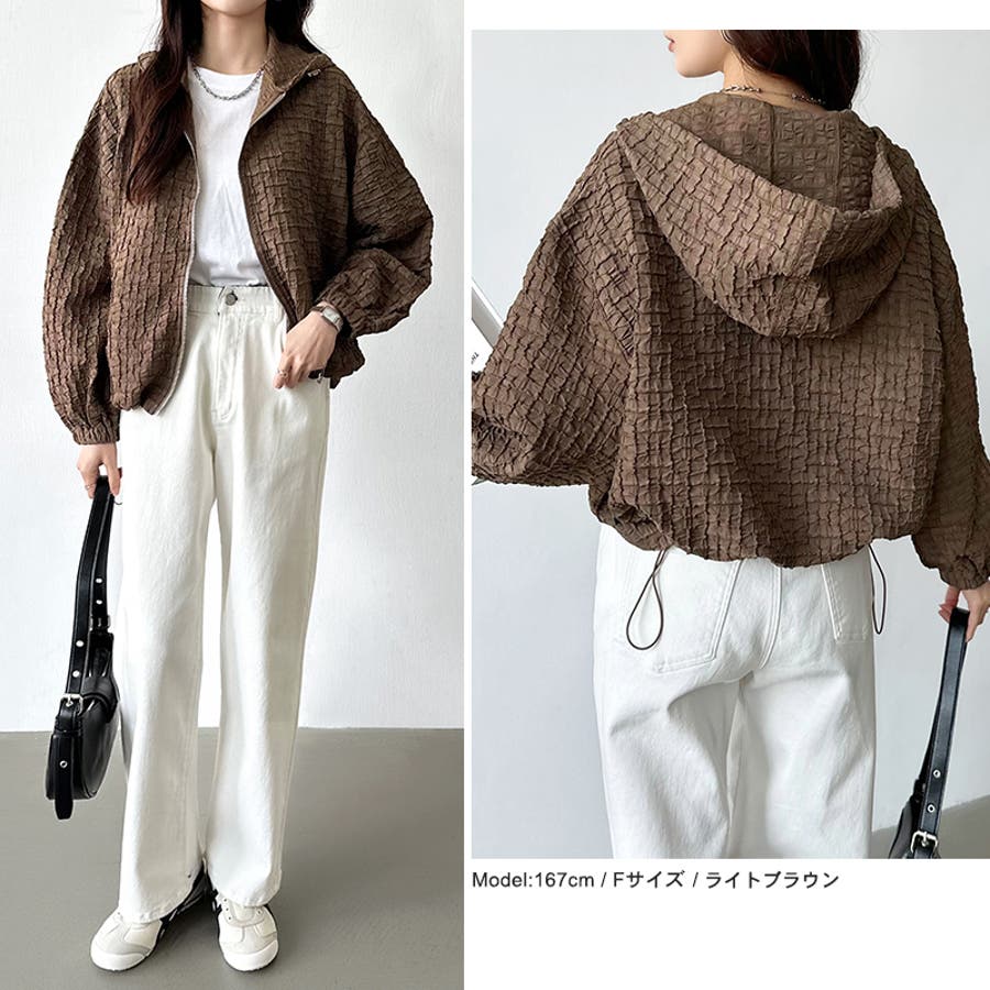 ブルゾン ふくれジャガード ライトアウター レディース マウンテンパーカー アウター ジャケット 羽織り 長袖 ぽこぽこ パーカー おしゃれ ショート丈 ジップパーカー ドローコード ボリューム袖 フクレジャガード ジャガード ドロスト ドローストリング 紐 ボリュームスリーブ ぽわん ぽわん袖 袖 フード フーディ フード付き マウンテンパーカーレディース 薄手 軽量 クロップド クロップド丈 ジャンパー ライトアウターレディース きれいめ ショート カジュアル フクレ生地 凹凸 ポコポコ リップル ライトアウターレディース ショートジャケット ショートジャケットレディース ジップ アップ ジップアップ ジップアップパーカー ファスナー 襟 襟なし 上着 羽織 羽織もの 防風 前開き 前あき お出かけ おでかけ 旅行 通勤 通学 大人 かわいい 可愛い 大人可愛い オトナ女子 大人女子 女子 オシャレ 母 ママ ママコーデ プチプラ 高見え 高級感 トレンド ヒット 商品 おすすめ 服 ファッション コーデ コーディネート 人気 女性 フリーサイズ フリー サイズ ホワイト 白 ライトブラウン ブラウン 茶色 ブラック 黒 カラー 春アウター 春アウターレディース 秋アウター 秋アウターレディース 冬アウターレディース 秋冬ジャケット アウターレディース 大人カジュアル 新作 春物 夏物 秋物 春用 夏用 秋用 春秋 春 夏 秋 春服 夏服 秋服 韓国 韓国ファッション 10代 20代 30代 40代 50代 60代 cocomomo ココモモ