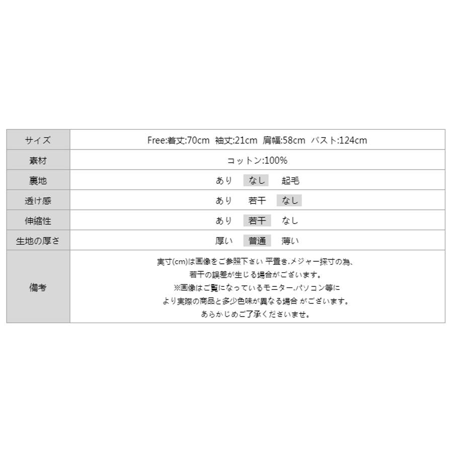 | サイズ | Free: 着丈 70cm 袖丈 21cm 肩幅 58cm バスト 124cm |