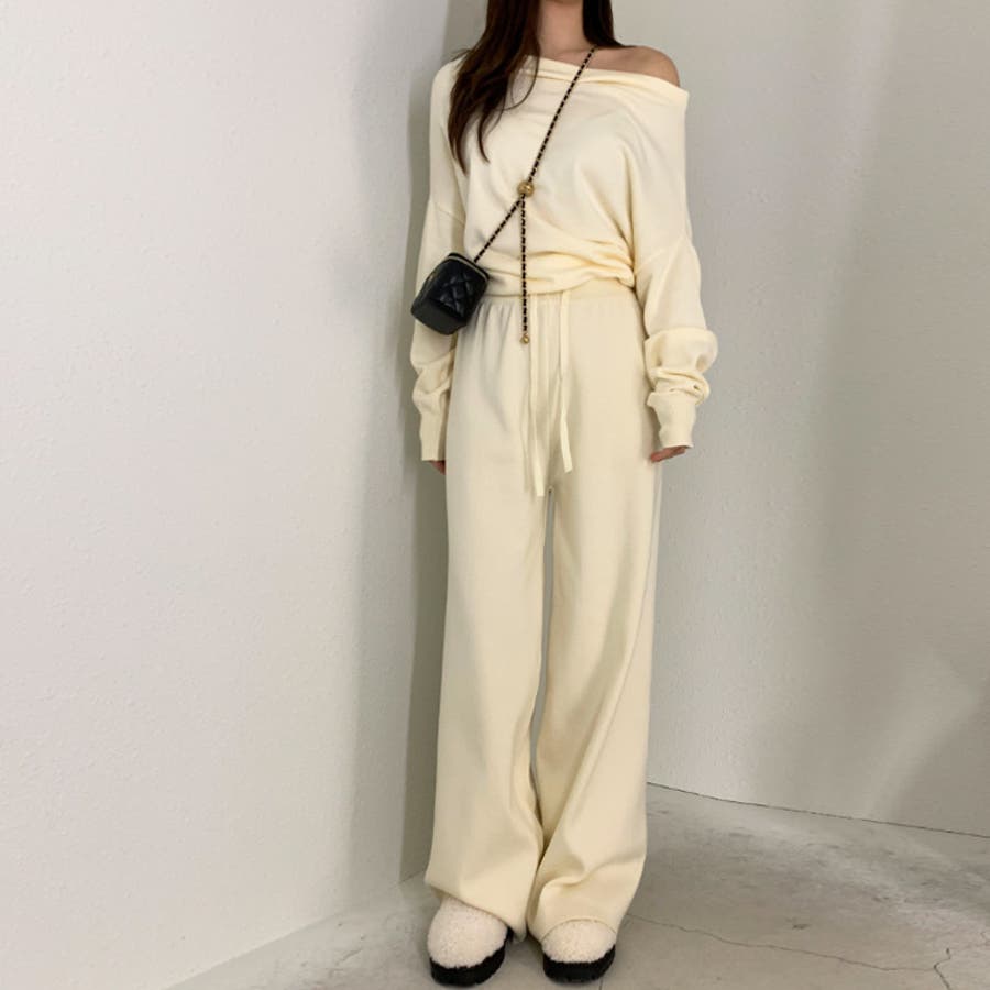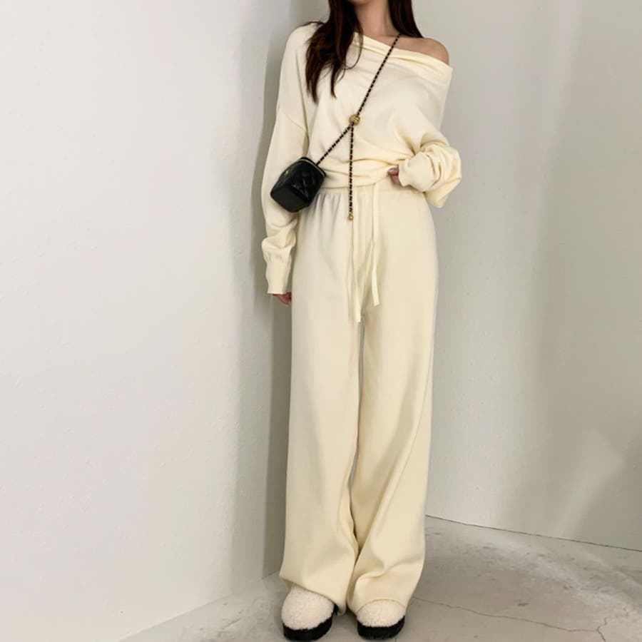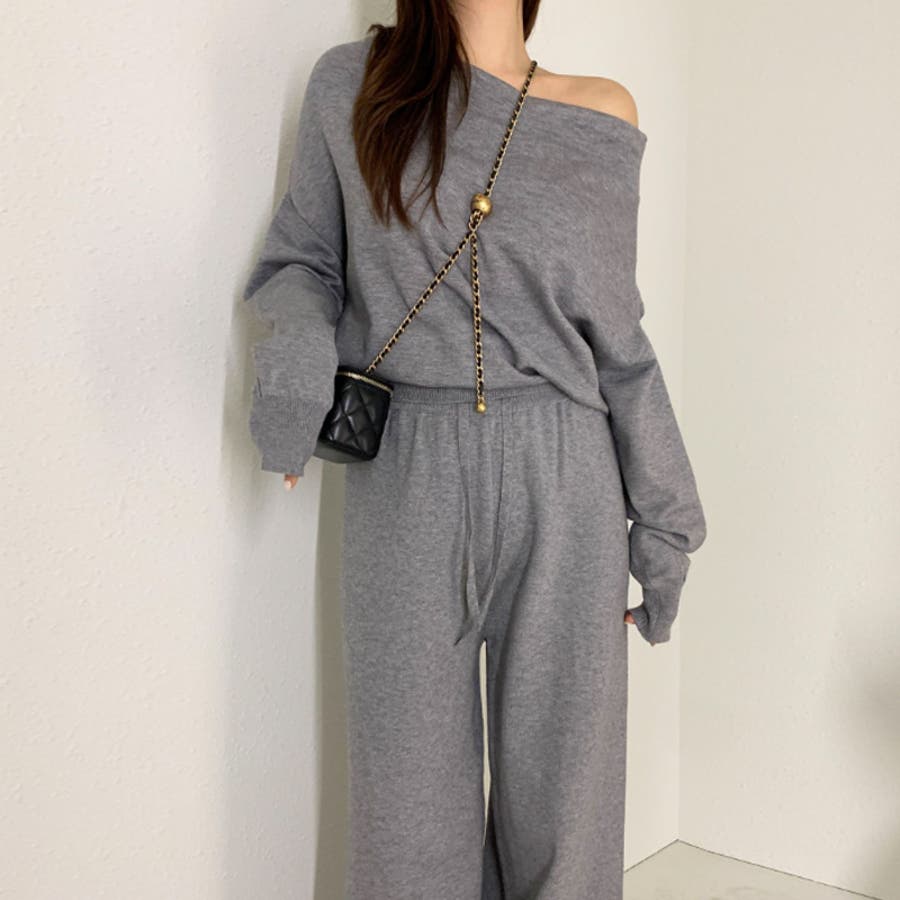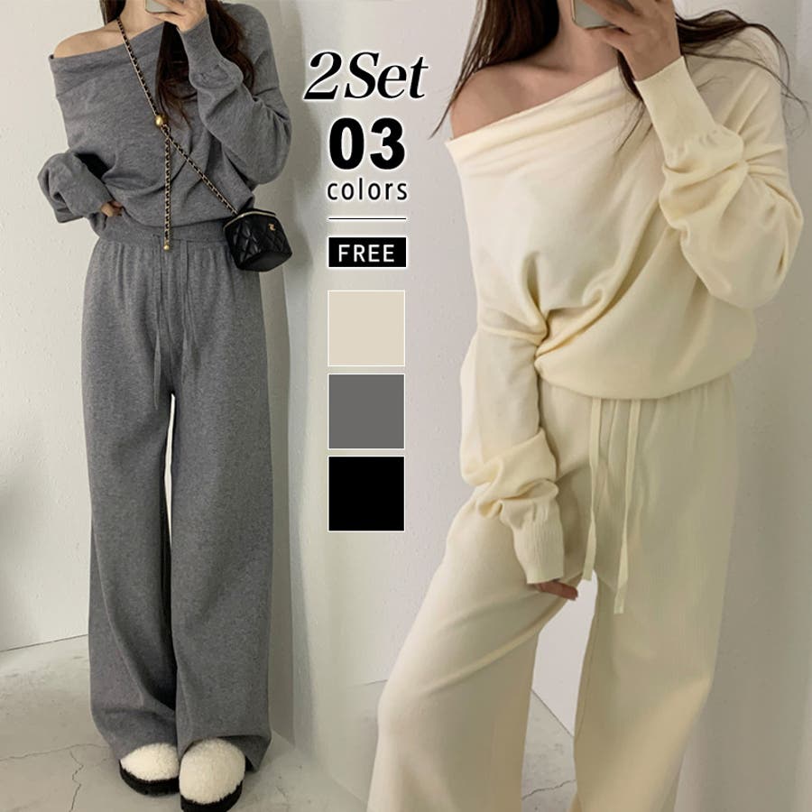 セットアップ ニット オフショルダー パンツ レディース カジュアル ニットセット ワンショルダー ニットセットアップ ワイドパンツ ニットパンツ ワイド ボトムス ゆったり オフショル トップス 上下セット 2点セット 上下 セット 2点 ウエストゴム ルームウェア 部屋着 ニットレディース ドルマン ドルマンスリーブ ゆる ゆるニット 肩見せ 肩見せデザイン ゆるシルエット 大人カジュアル リラックスコーデ オフショルダーセットアップ 抜け感 ニットアップ ラクして可愛い ニットセットアップパンツ 体型カバー 体型 カバー 大きめ 大きい 楽チン 楽ちん 紐 ツーピース ボトム シンプル 無地 大人カジュアル tops 着回し 着まわし やわらかい やわらか ヤク風 ヤク風ニット アクリル あたたかい 暖か あったかい あったか リラックス リラックスウェア ルーム ワンマイル ワンマイルウェア セクシー 大人 オトナ かわいい 可愛い 大人可愛い きれいめ きれい め キレイめ 綺麗め おしゃれ オシャレ 女性 母 ママ ママコーデ プチプラ 高見え トレンド コーデ コーディネート ヒット 商品 おすすめ 服 ファッション フリーサイズ フリー サイズ ベージュ グレー 灰色 ブラック 黒 カラー 新作 春秋冬 春秋 秋冬 春 秋 冬 春服 秋服 冬服 春物 秋物 冬物 春用 秋用 冬用 韓国 韓国ファッション 10代 20代 30代 40代 50代 60代 cocomomo ココモモ