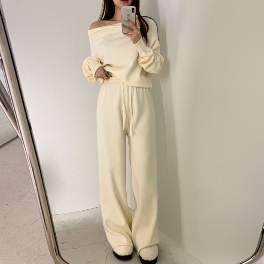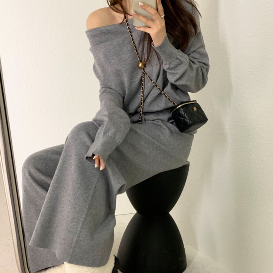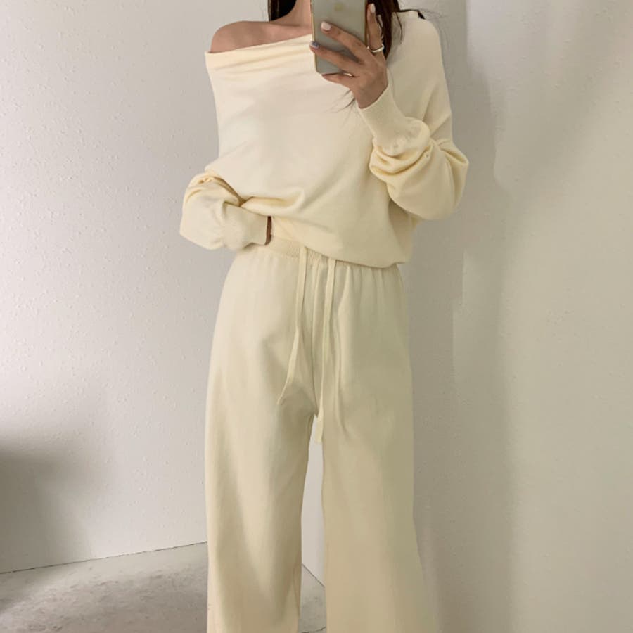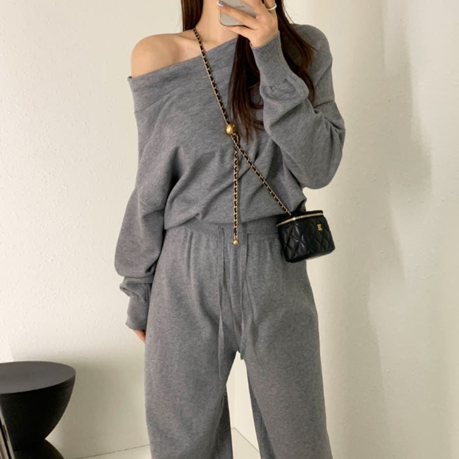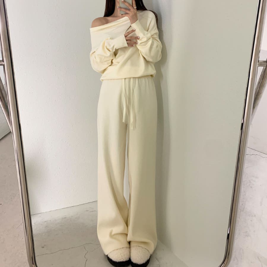 セットアップ ニット オフショルダー パンツ レディース カジュアル ニットセット ワンショルダー ニットセットアップ ワイドパンツ ニットパンツ ワイド ボトムス ゆったり オフショル トップス 上下セット 2点セット 上下 セット 2点 ウエストゴム ルームウェア 部屋着 ニットレディース ドルマン ドルマンスリーブ ゆる ゆるニット 肩見せ 肩見せデザイン ゆるシルエット 大人カジュアル リラックスコーデ オフショルダーセットアップ 抜け感 ニットアップ ラクして可愛い ニットセットアップパンツ 体型カバー 体型 カバー 大きめ 大きい 楽チン 楽ちん 紐 ツーピース ボトム シンプル 無地 大人カジュアル tops 着回し 着まわし やわらかい やわらか ヤク風 ヤク風ニット アクリル あたたかい 暖か あったかい あったか リラックス リラックスウェア ルーム ワンマイル ワンマイルウェア セクシー 大人 オトナ かわいい 可愛い 大人可愛い きれいめ きれい め キレイめ 綺麗め おしゃれ オシャレ 女性 母 ママ ママコーデ プチプラ 高見え トレンド コーデ コーディネート ヒット 商品 おすすめ 服 ファッション フリーサイズ フリー サイズ ベージュ グレー 灰色 ブラック 黒 カラー 新作 春秋冬 春秋 秋冬 春 秋 冬 春服 秋服 冬服 春物 秋物 冬物 春用 秋用 冬用 韓国 韓国ファッション 10代 20代 30代 40代 50代 60代 cocomomo ココモモ